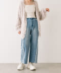 ・デニムパンツやカーゴパンツなどカジュアルなスタイリングも女性らしく着ていただけます。