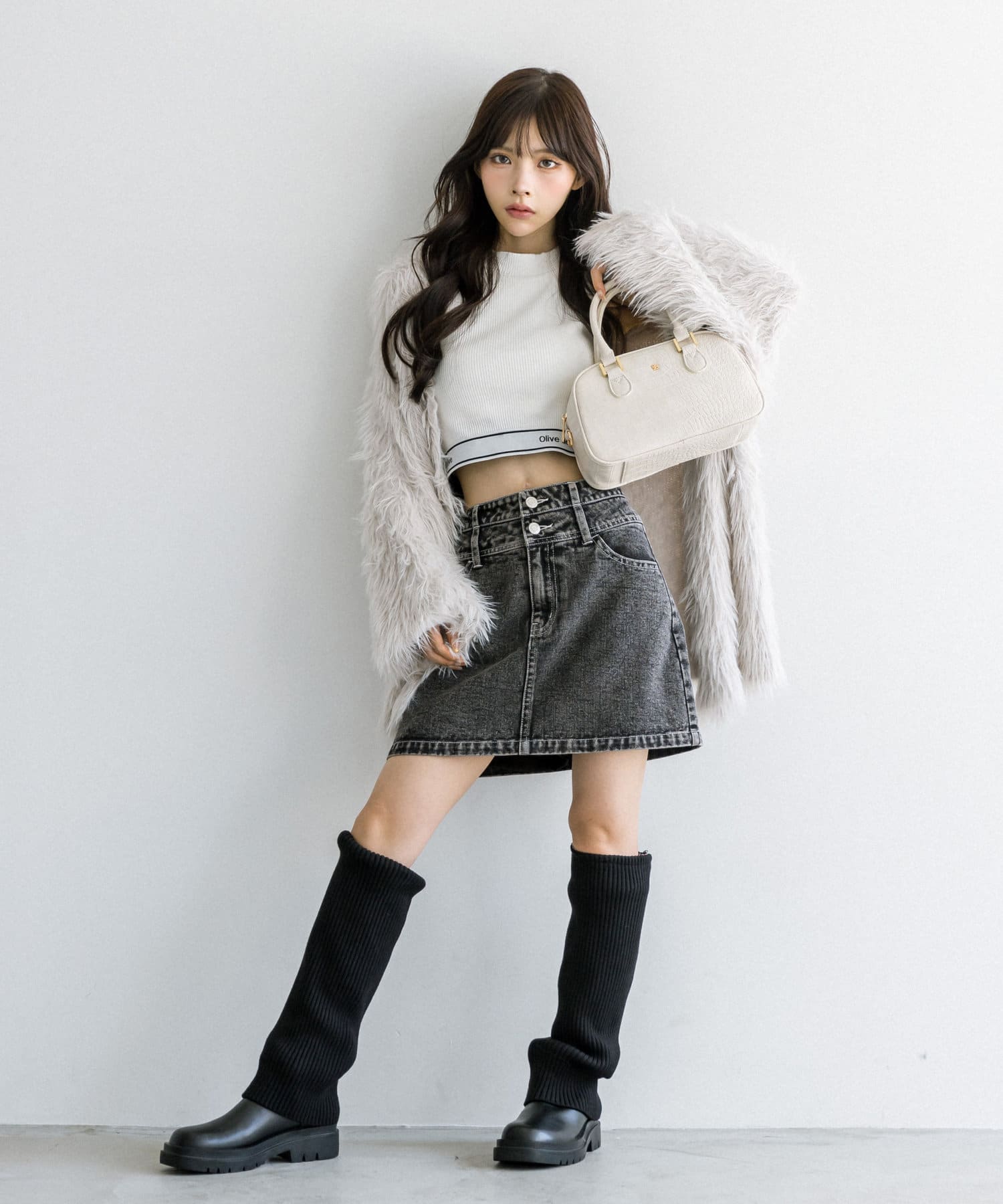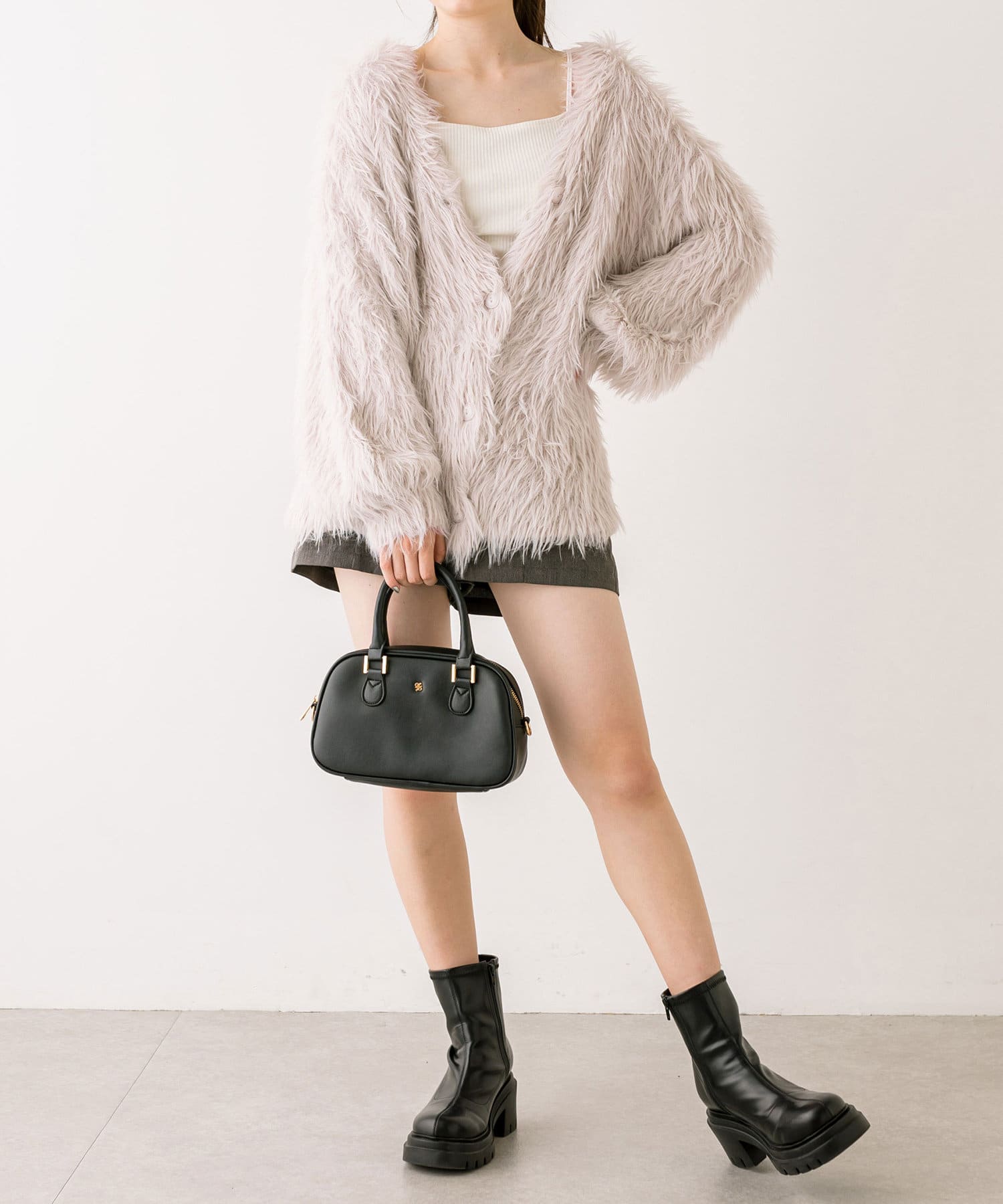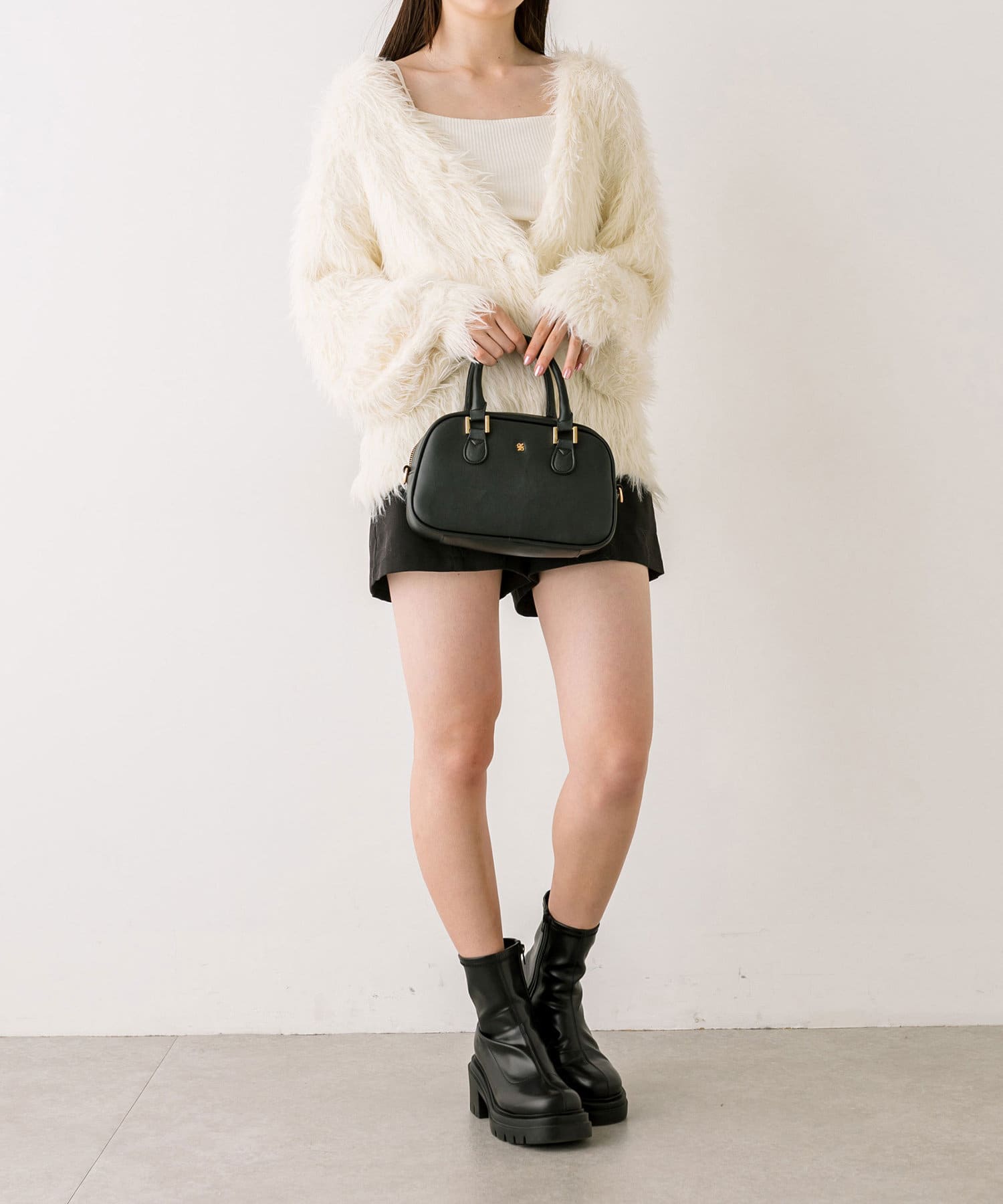・ミニボトムにブーツを合わせたスタイリングがおすすめ。