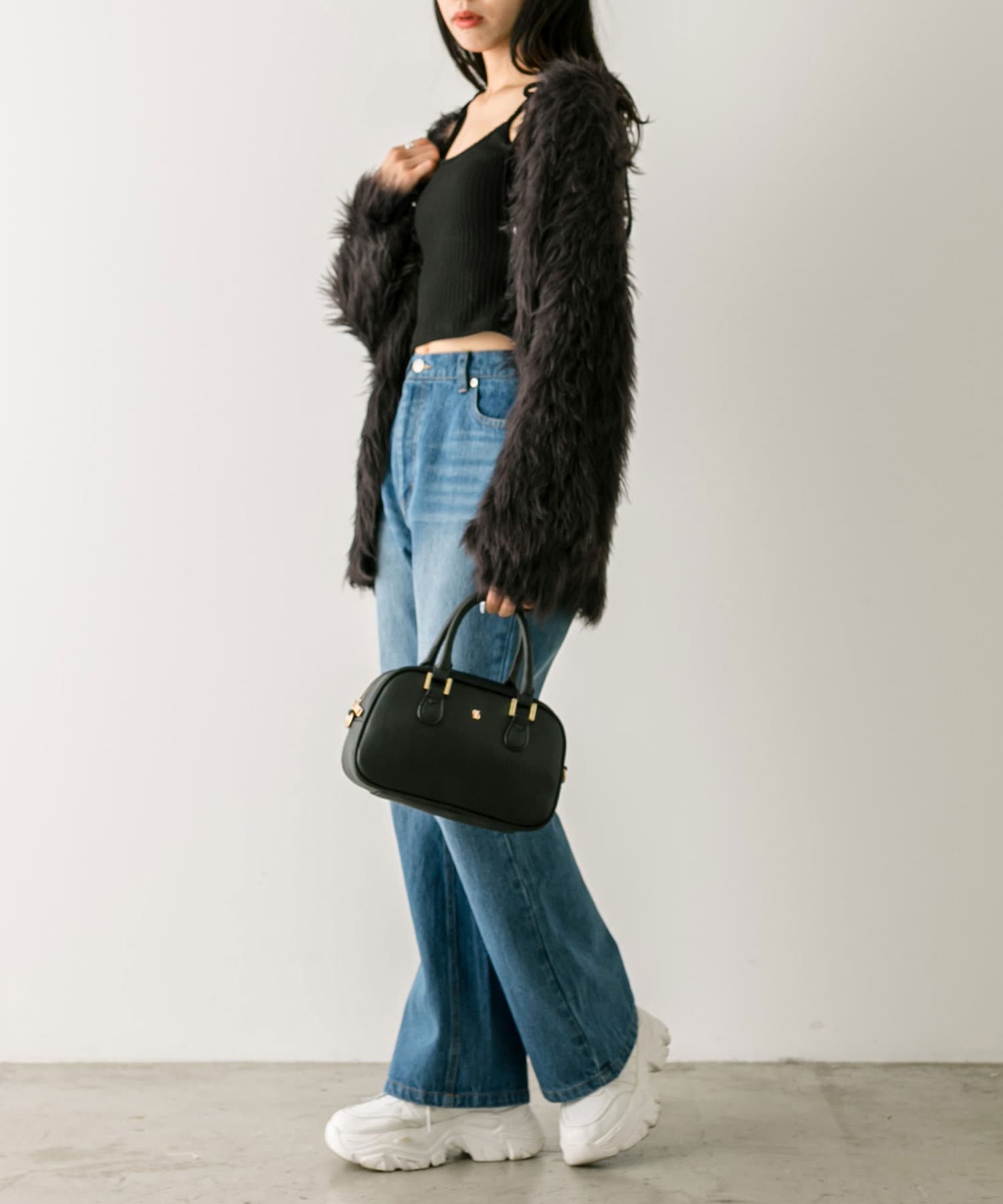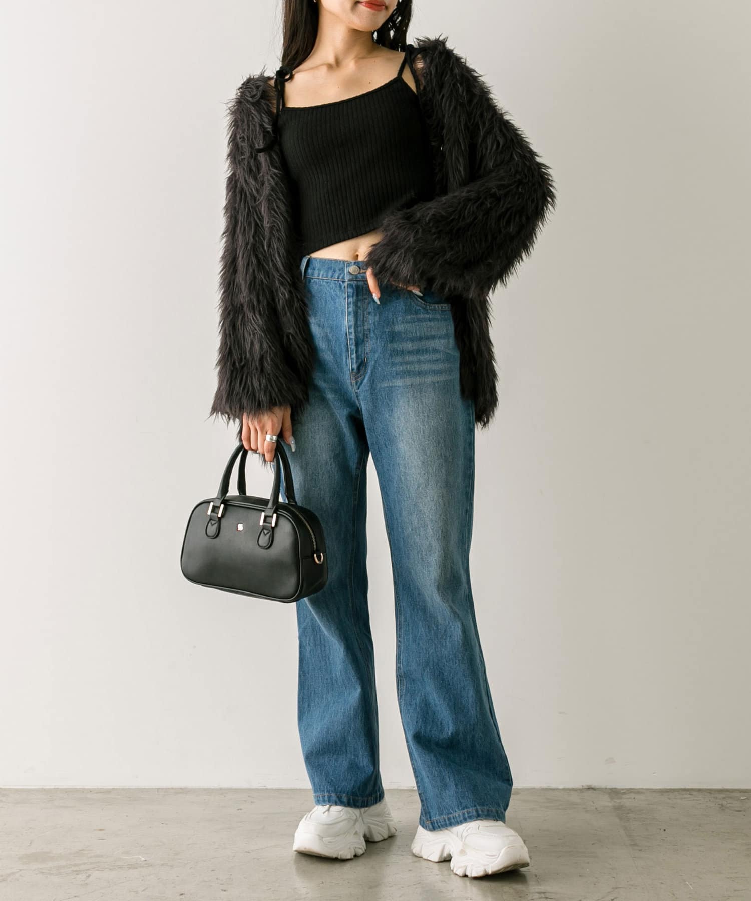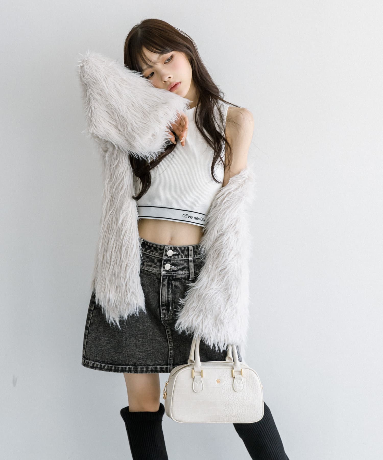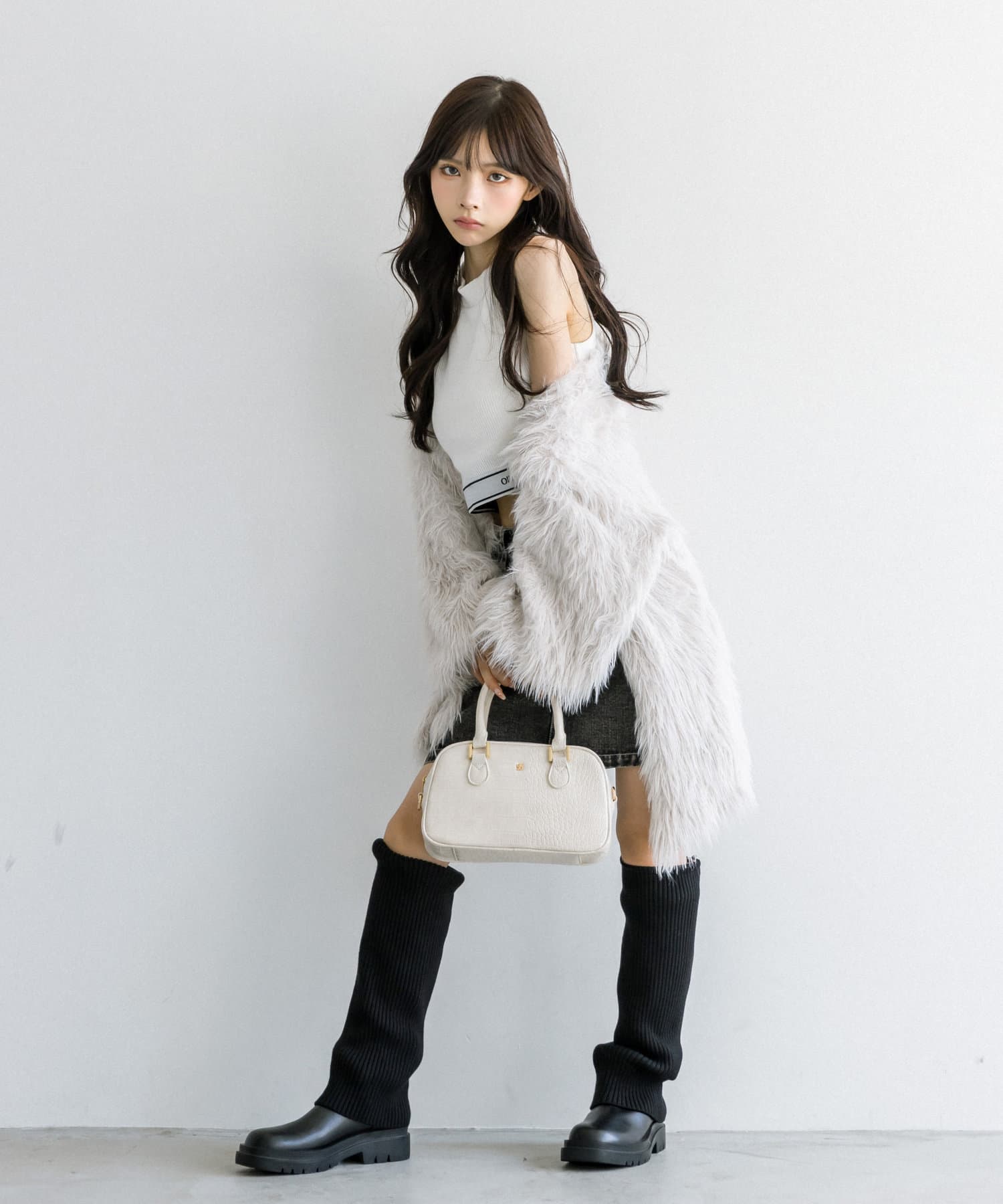 ・ミニボトムにブーツを合わせたスタイリングがおすすめ。