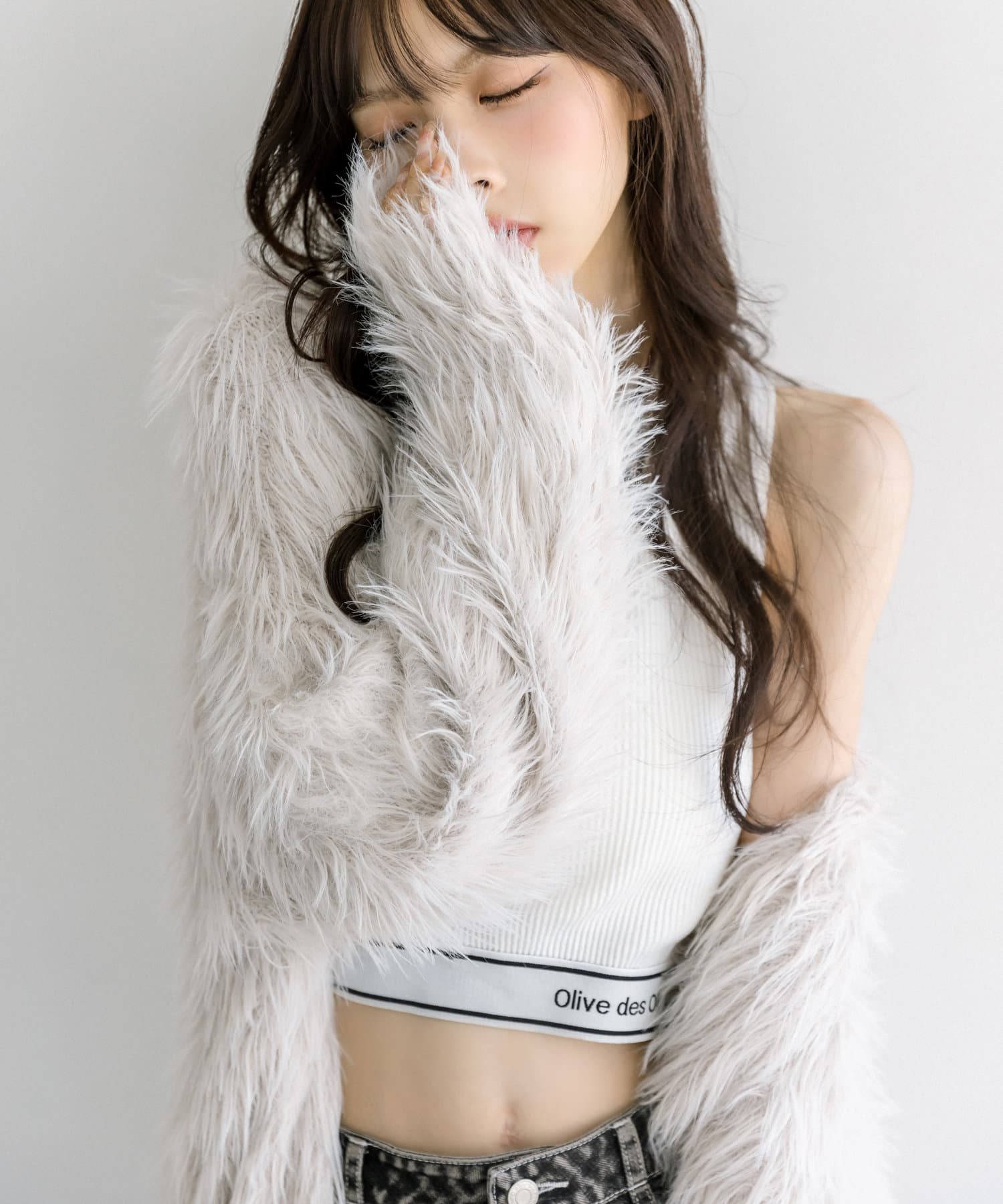 • OLIVE des OLIVE(オリーブ デ オリーブ) ファーライクフェザーカーディガン