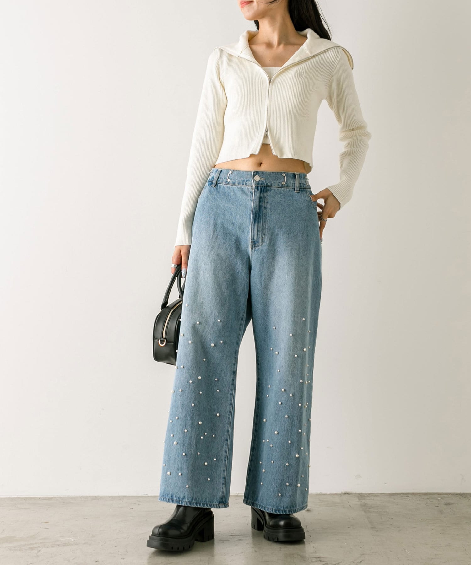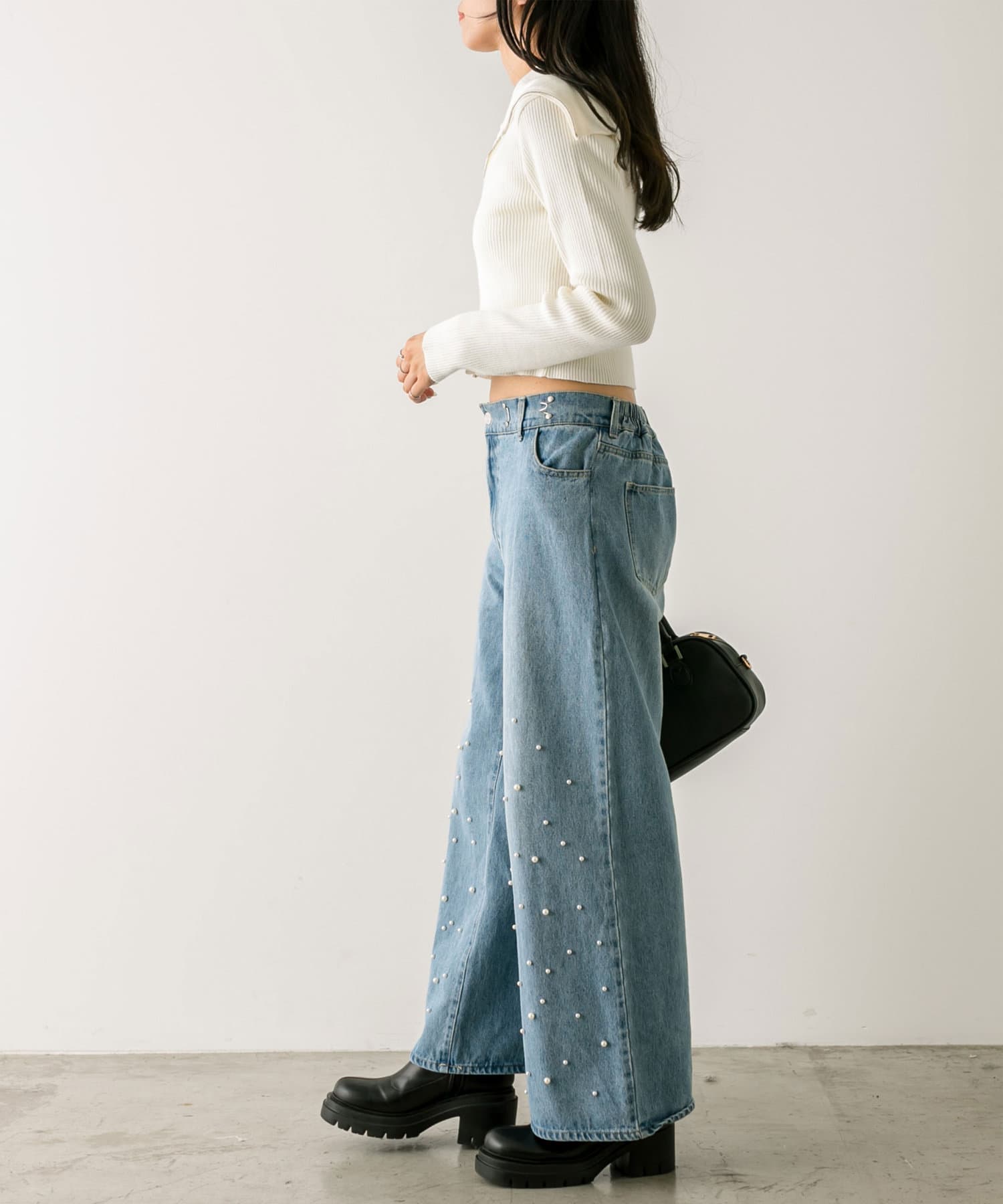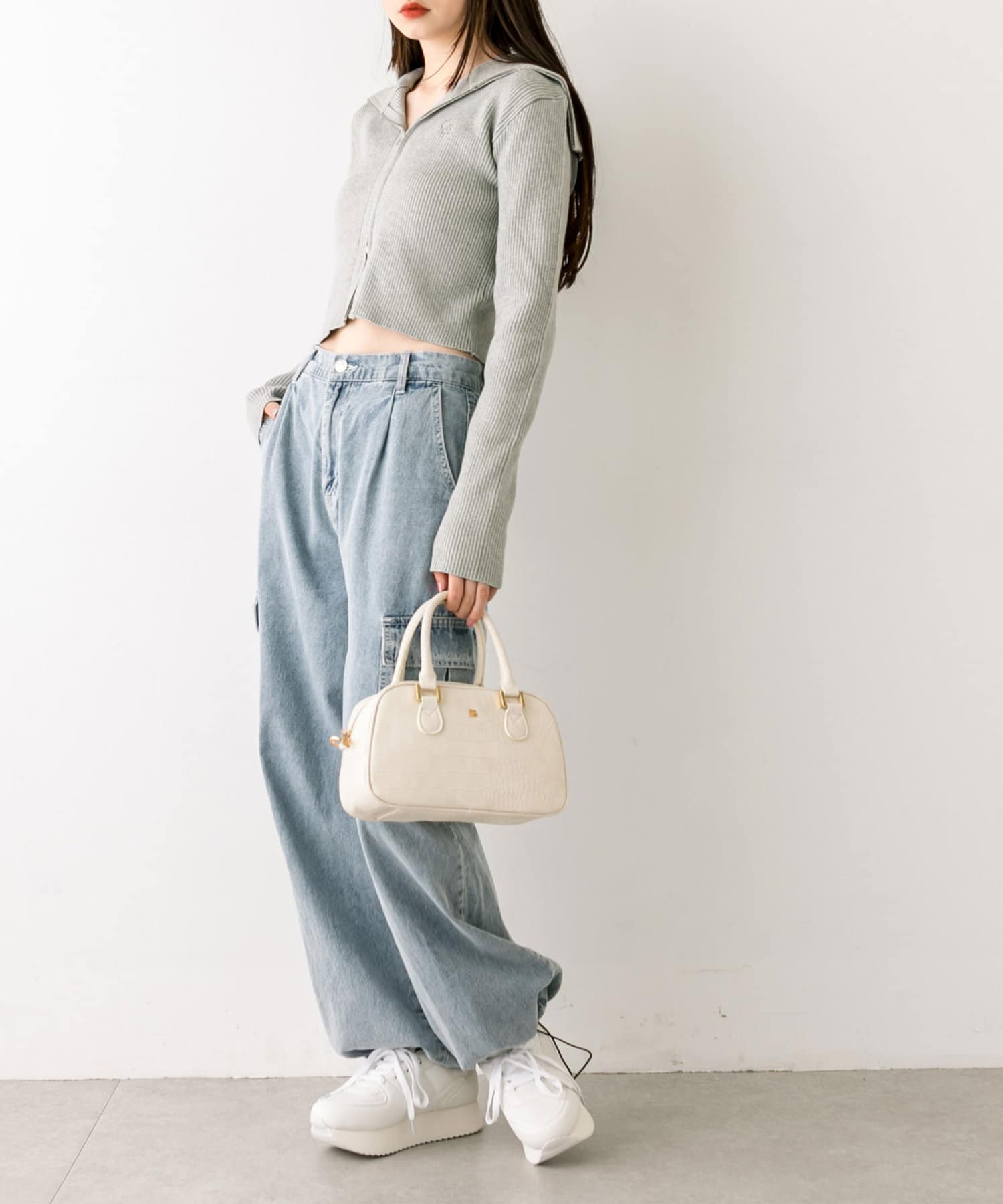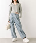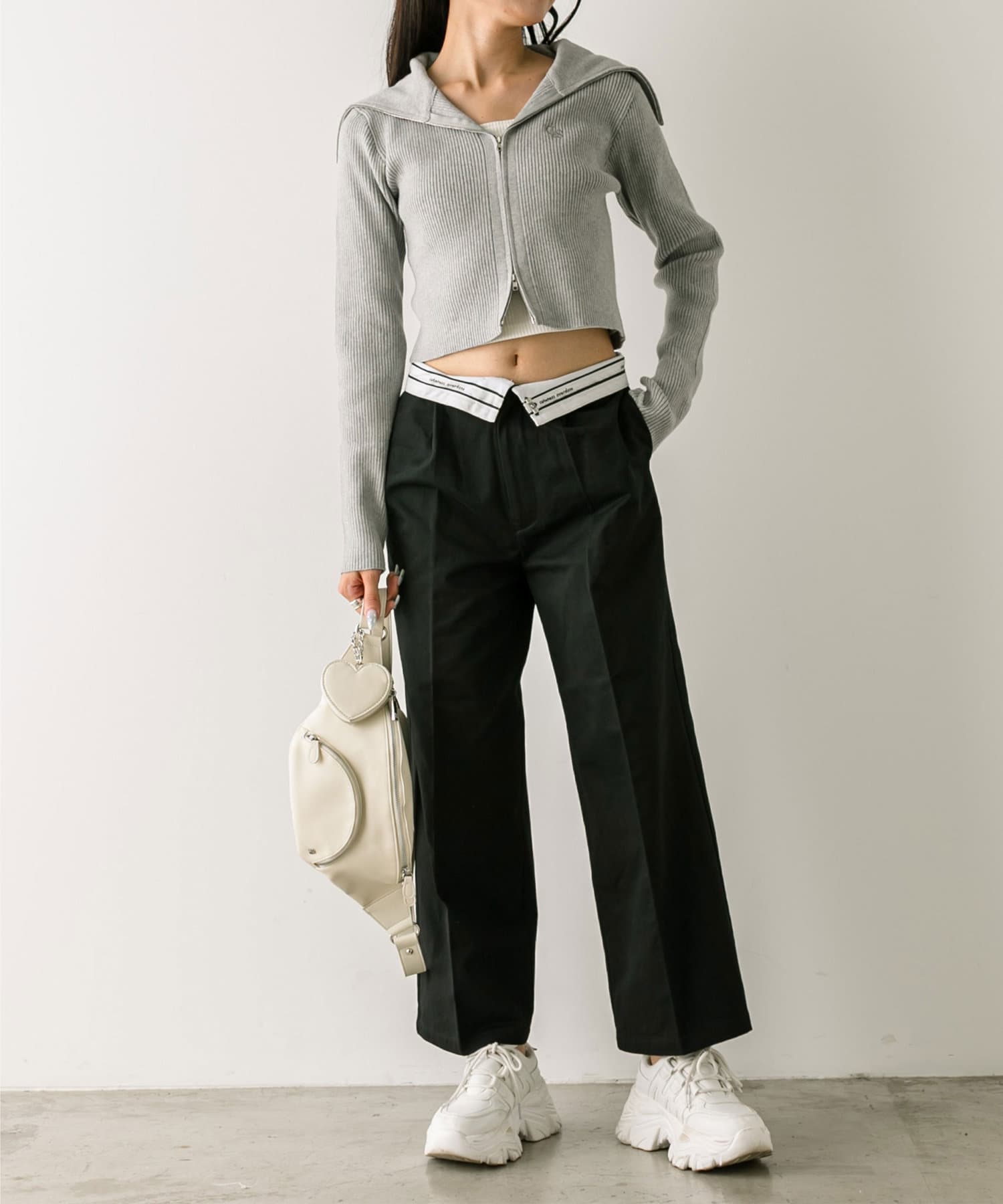 裾を上げてウエストを肌見せさせて着るのがおすすめです。