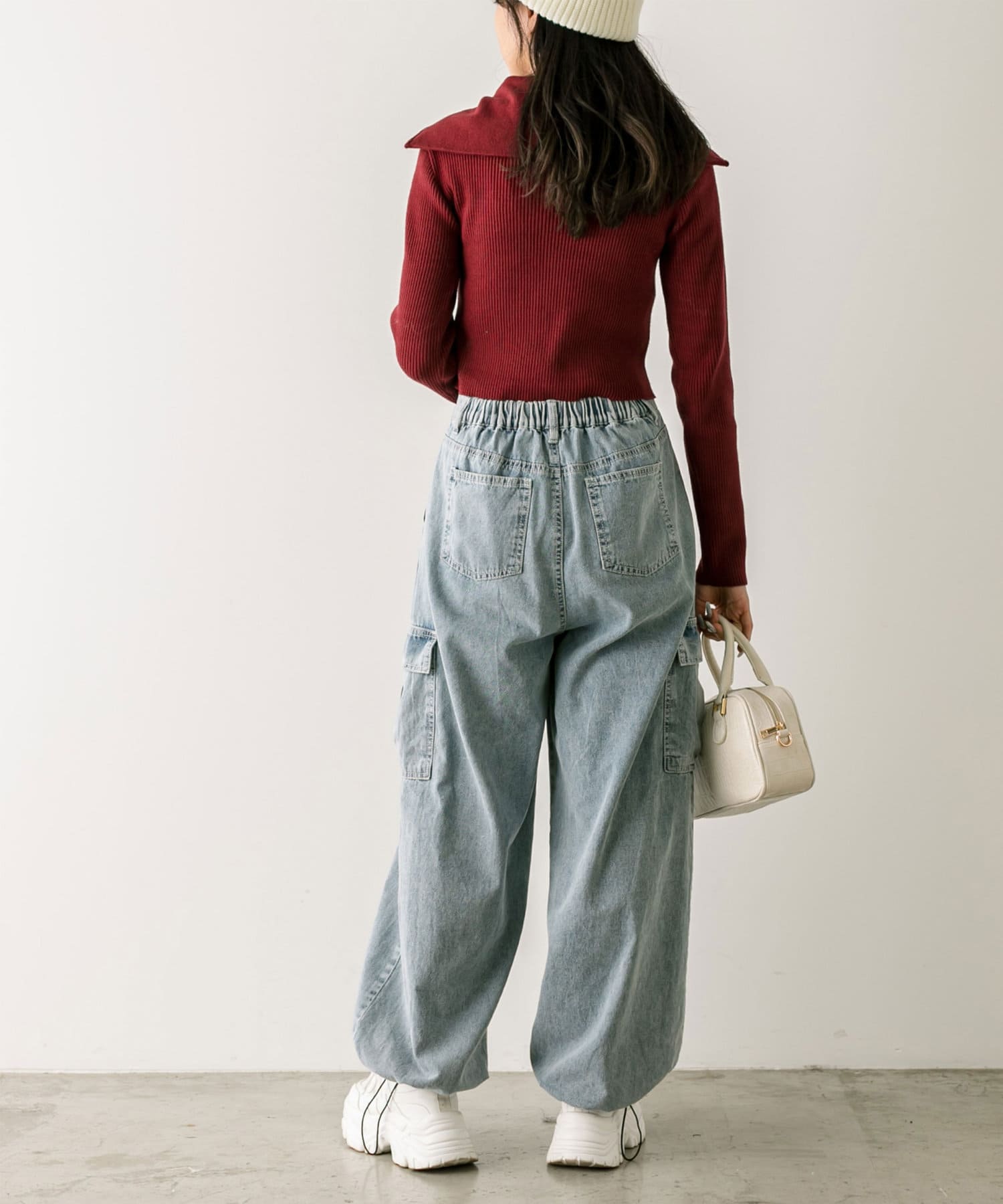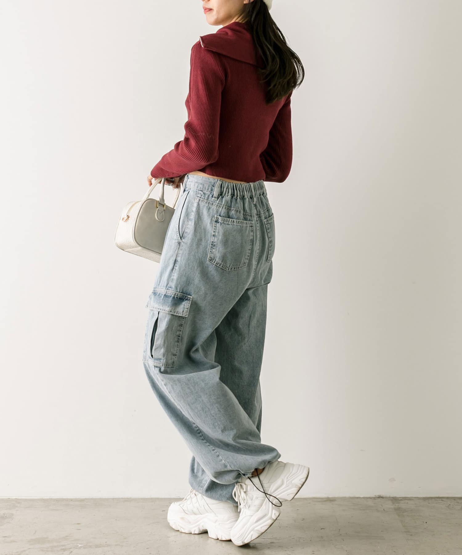 ・今年はワイドデニムやカーゴパンツなど、ボリュームのあるパンツで合わせると今年らしいカジュアルスタイルに。