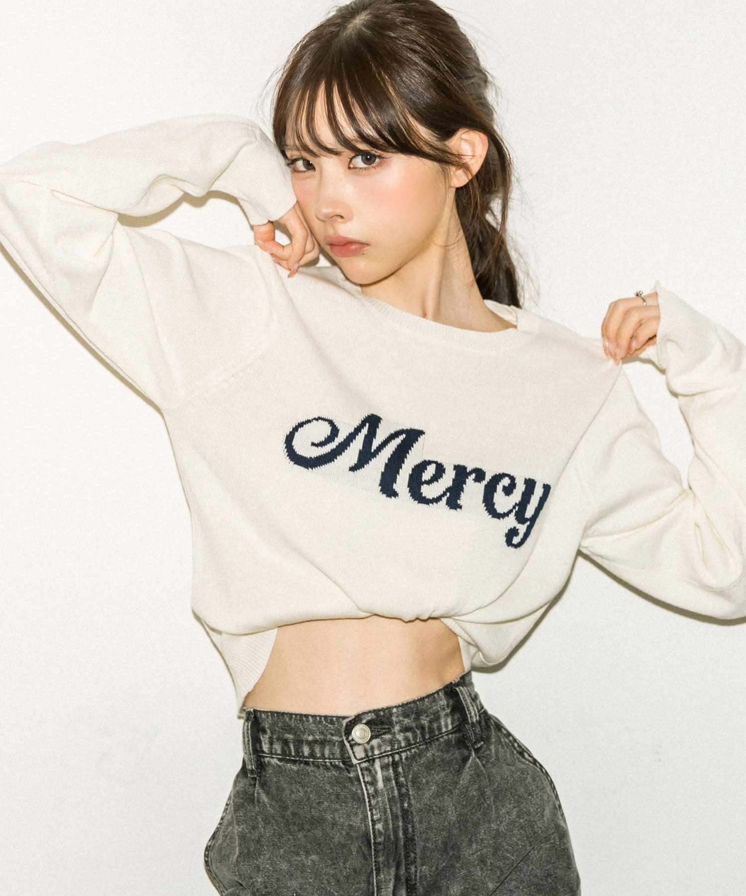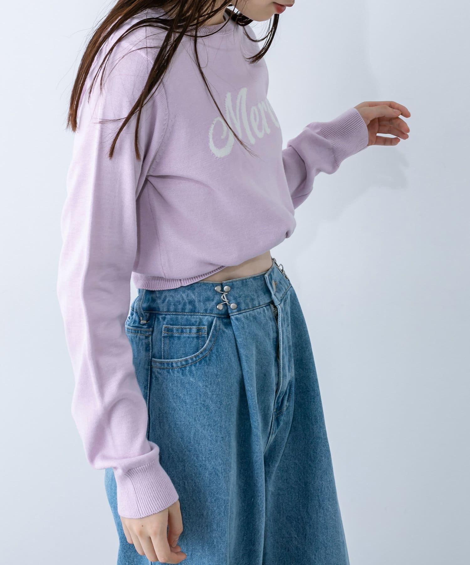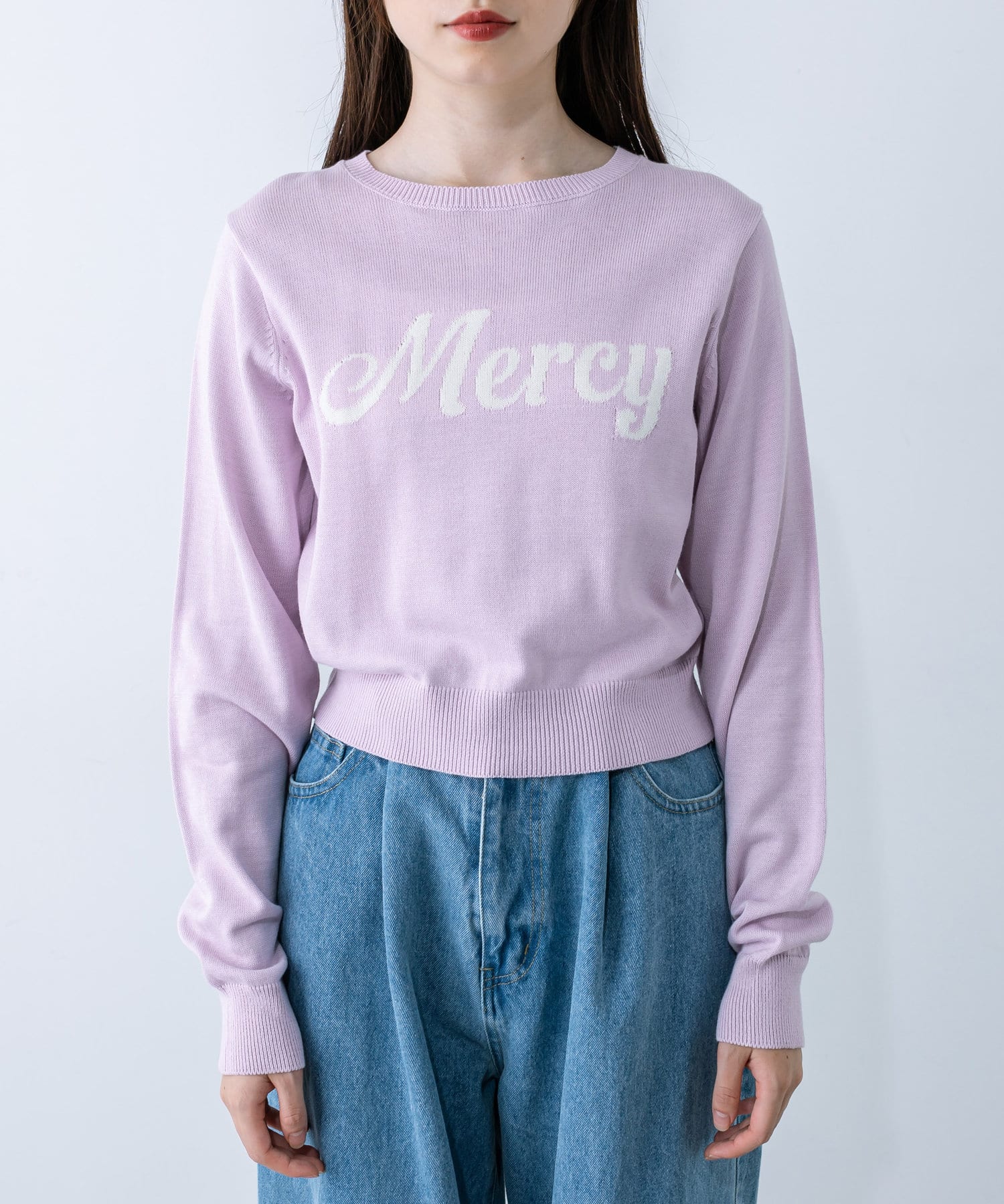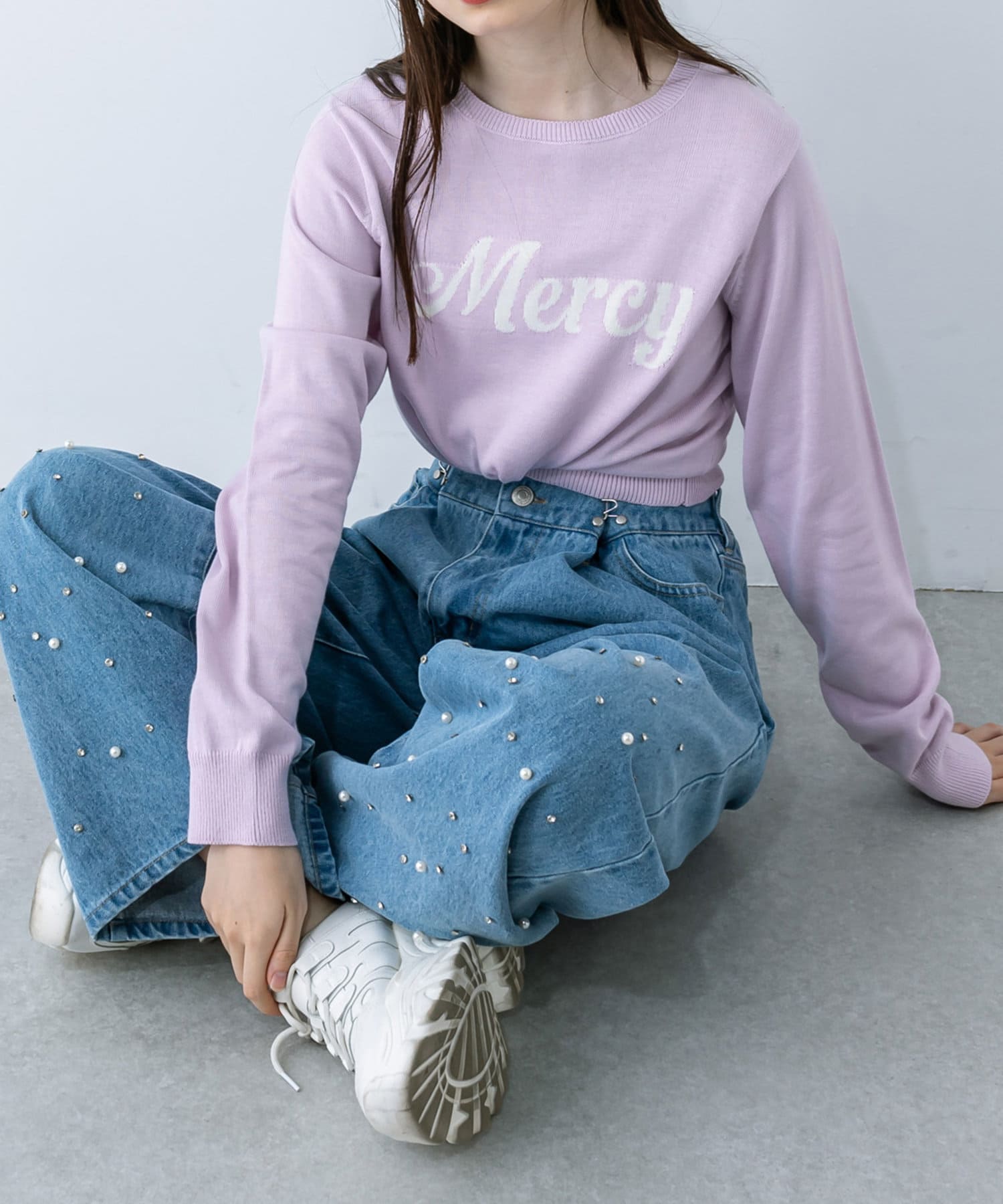 長袖ロゴジャガードニット