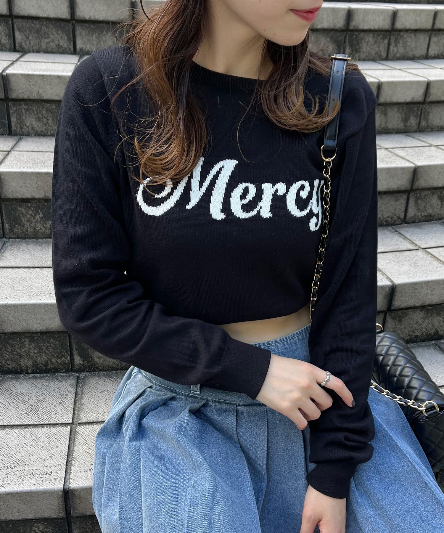フロントロゴが目を惹くジャガードニット