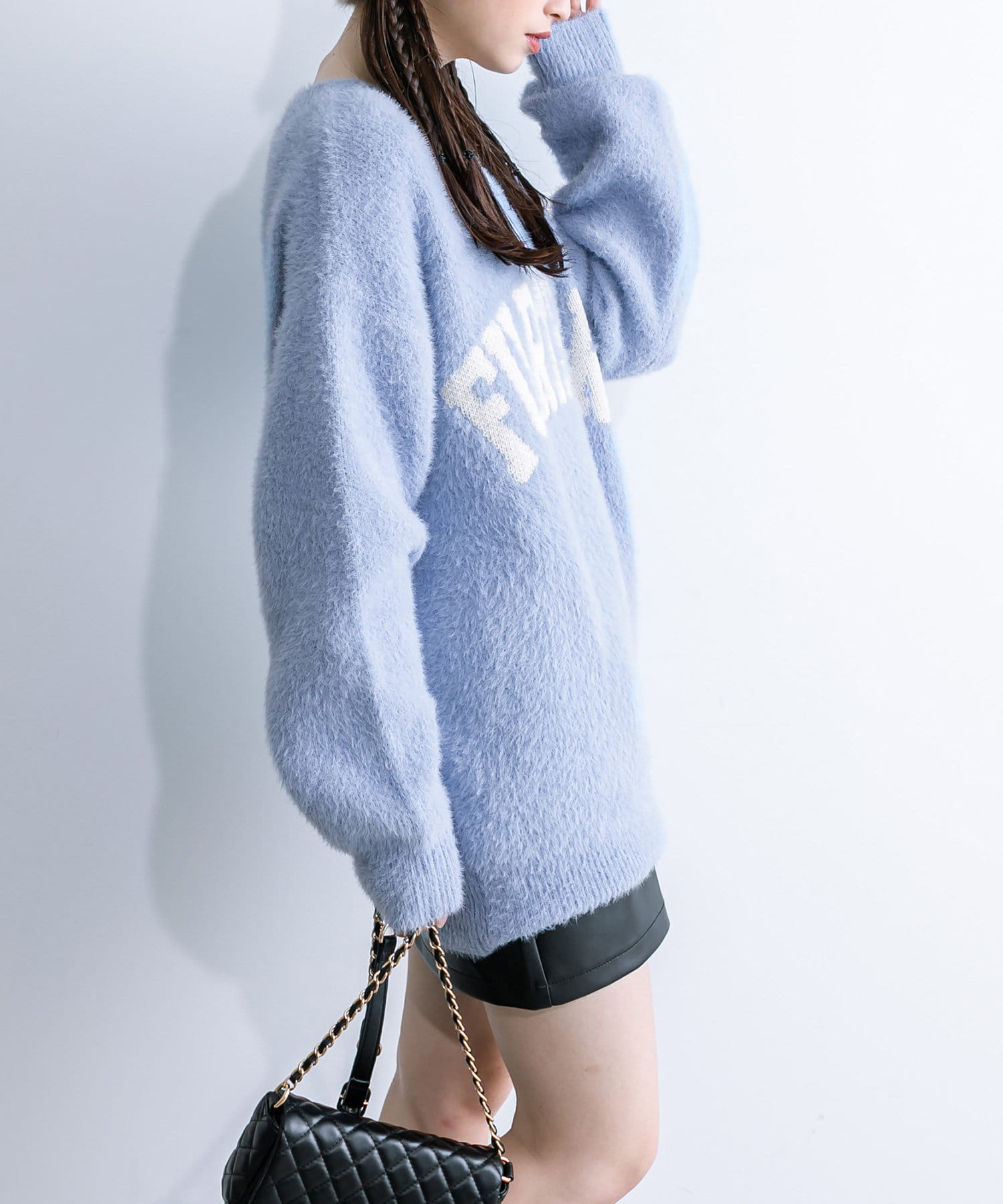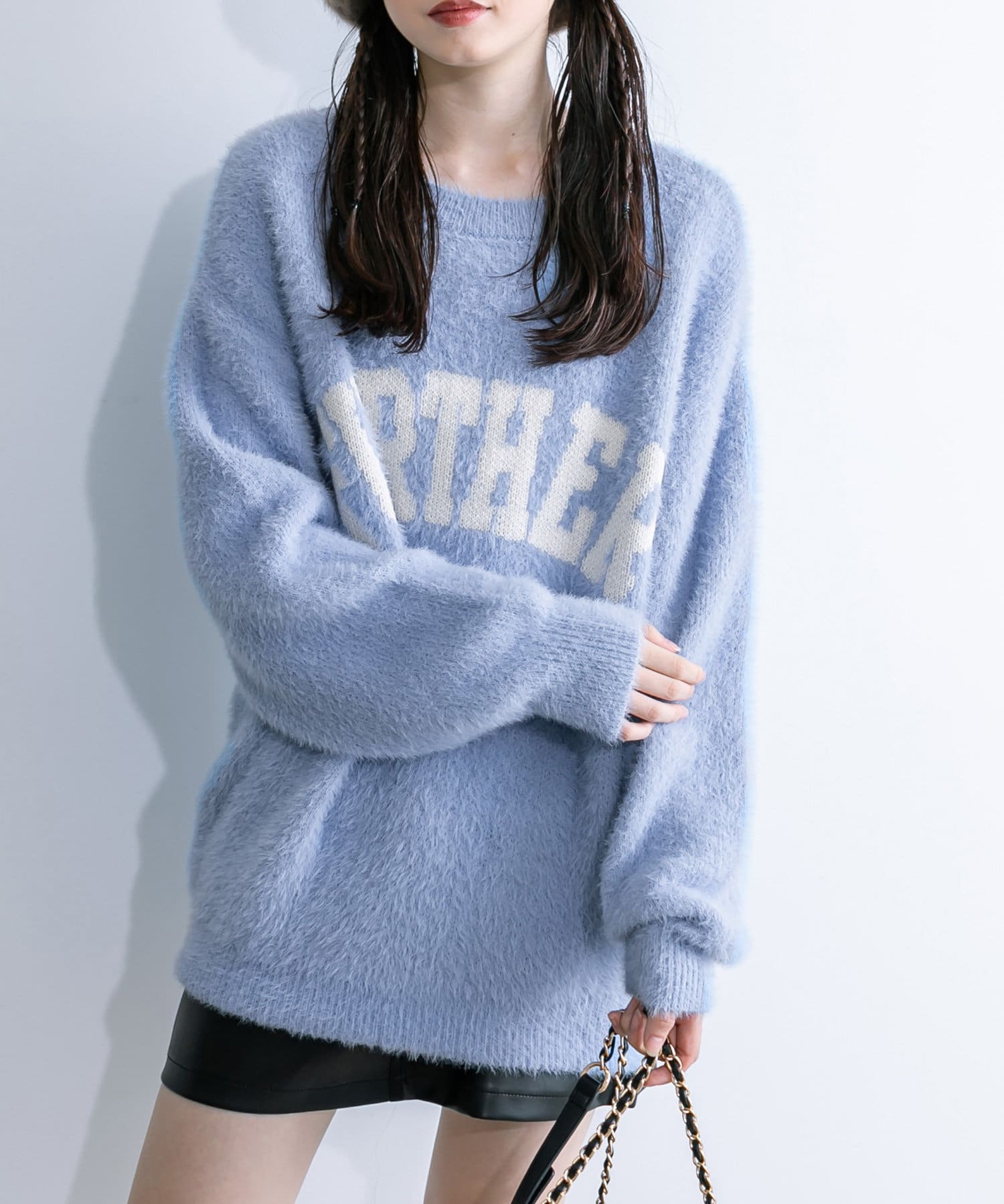・今年人気のジャガードニットをフェザーで仕上げたニット。
