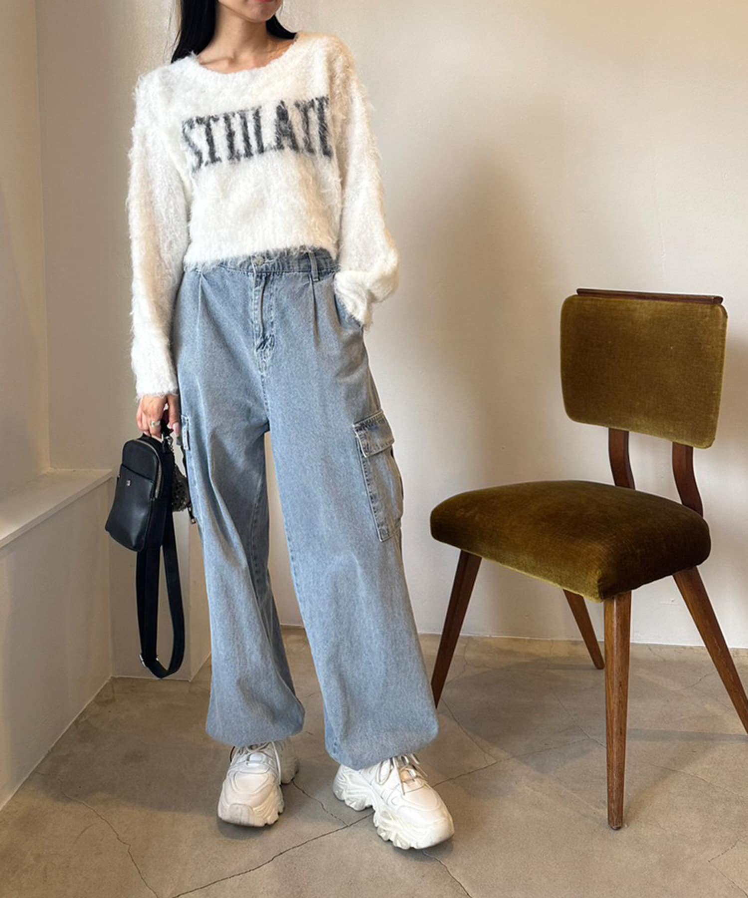 ・フェイクレザーのボトムや、デニムで異素材MIXを楽しむのも今年らしくておすすめです。