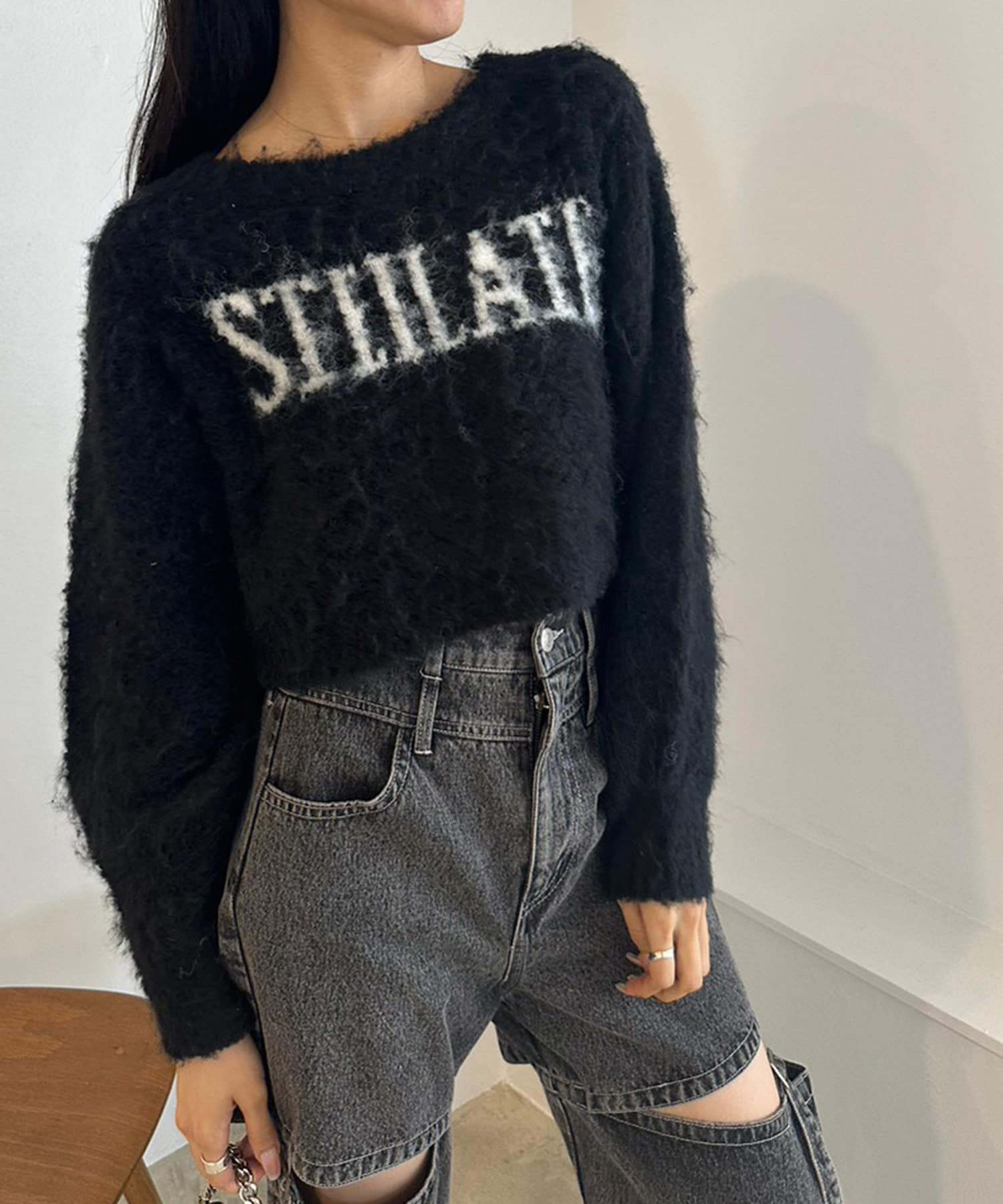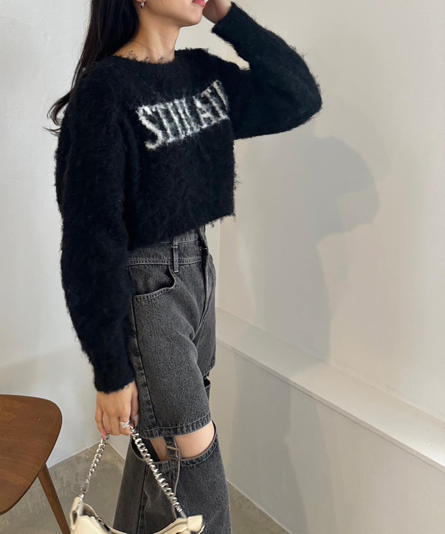 OLIVE des OLIVE(オリーブ デ オリーブ) LOGOジャガード起毛ニット
