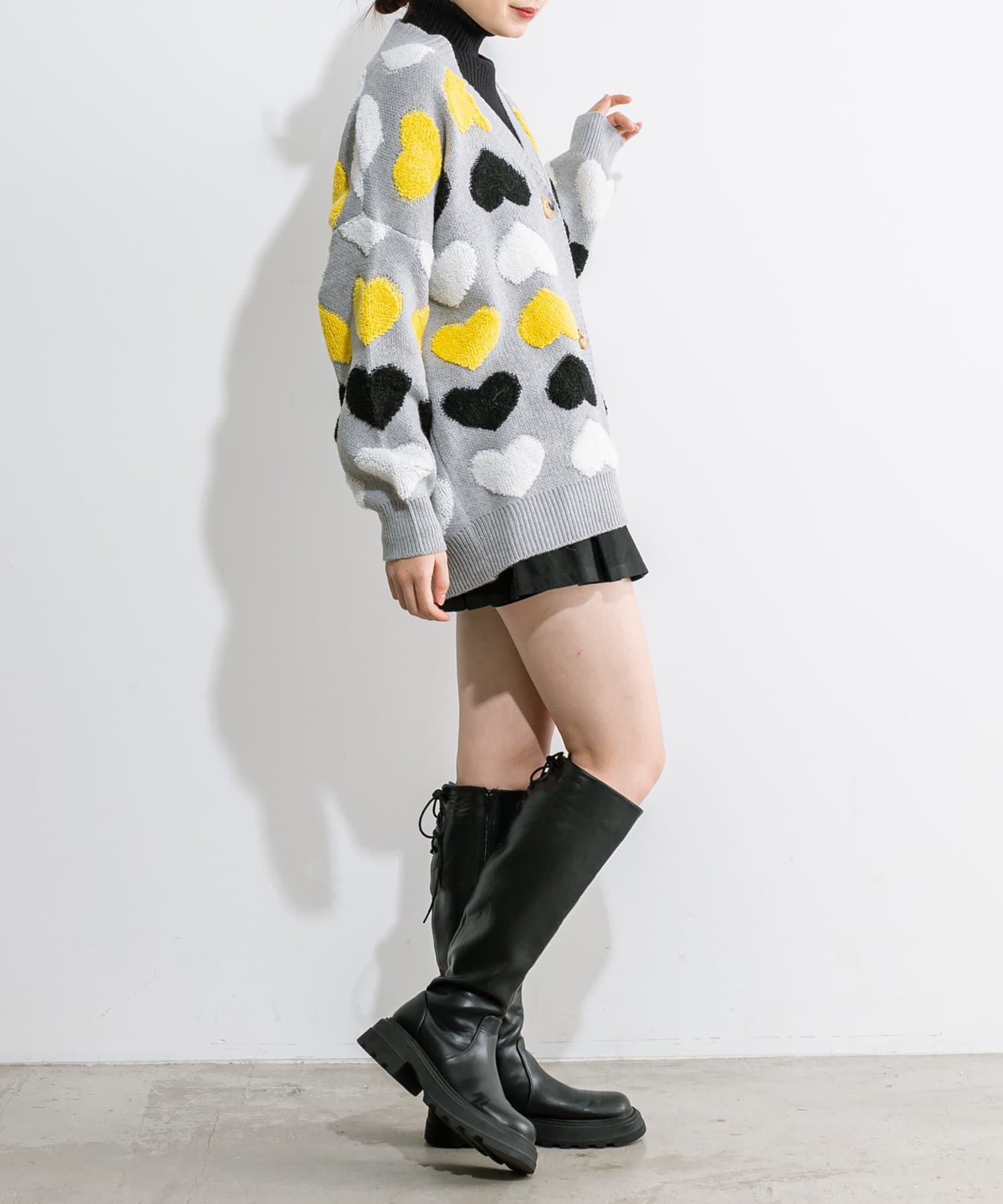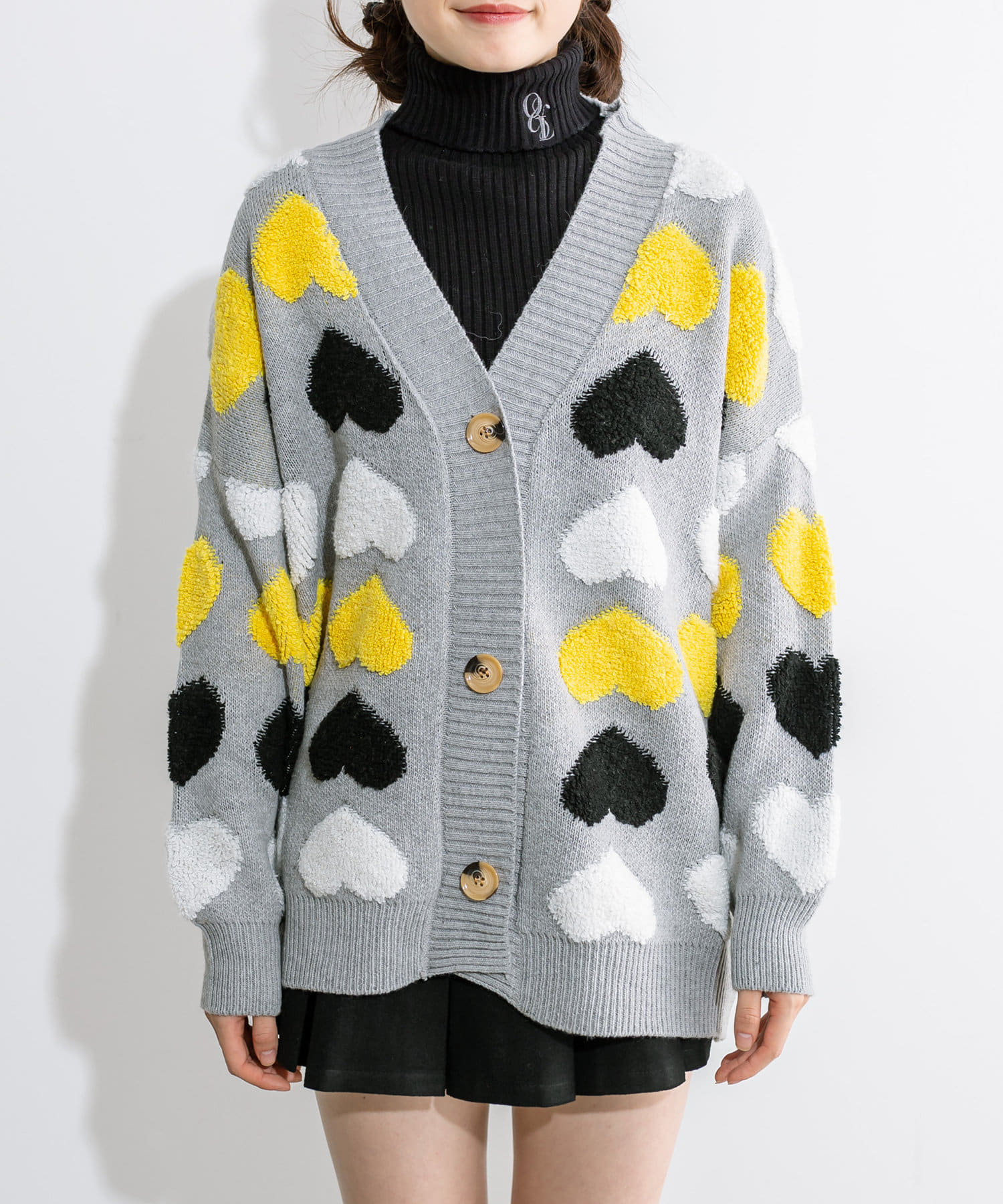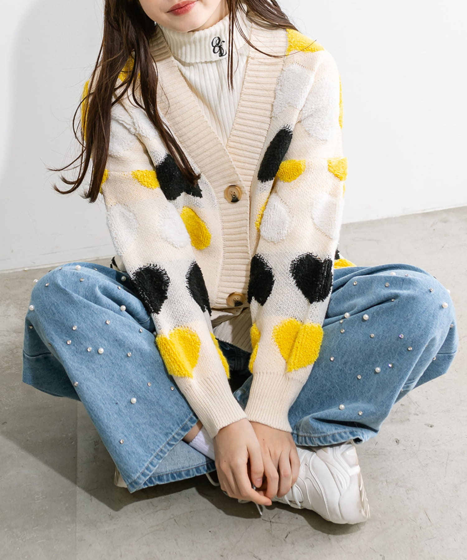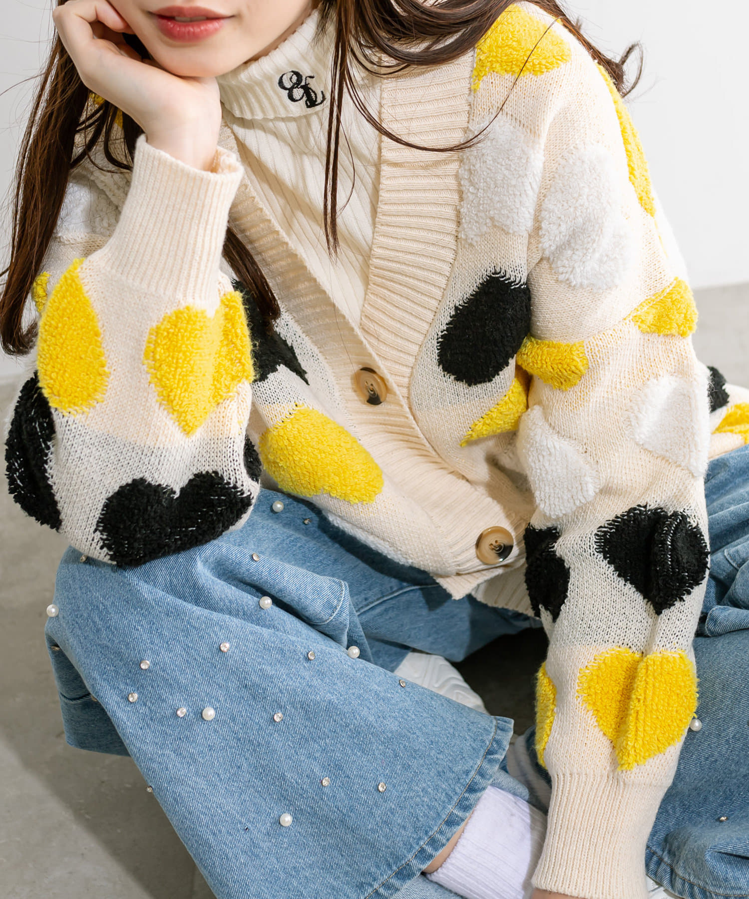 トレンドのハート柄が可愛いカーデ