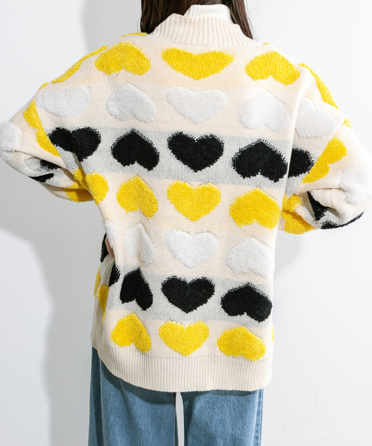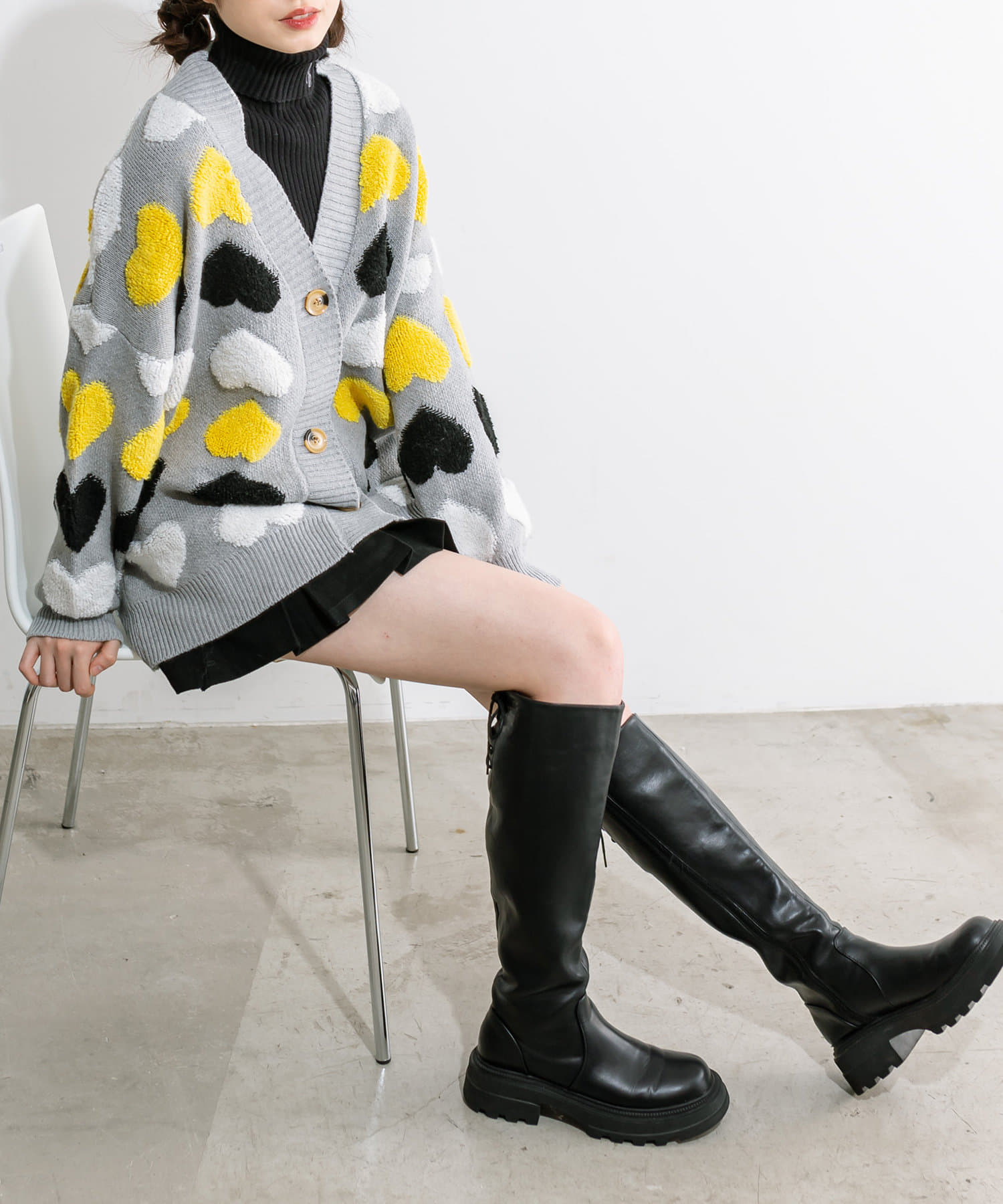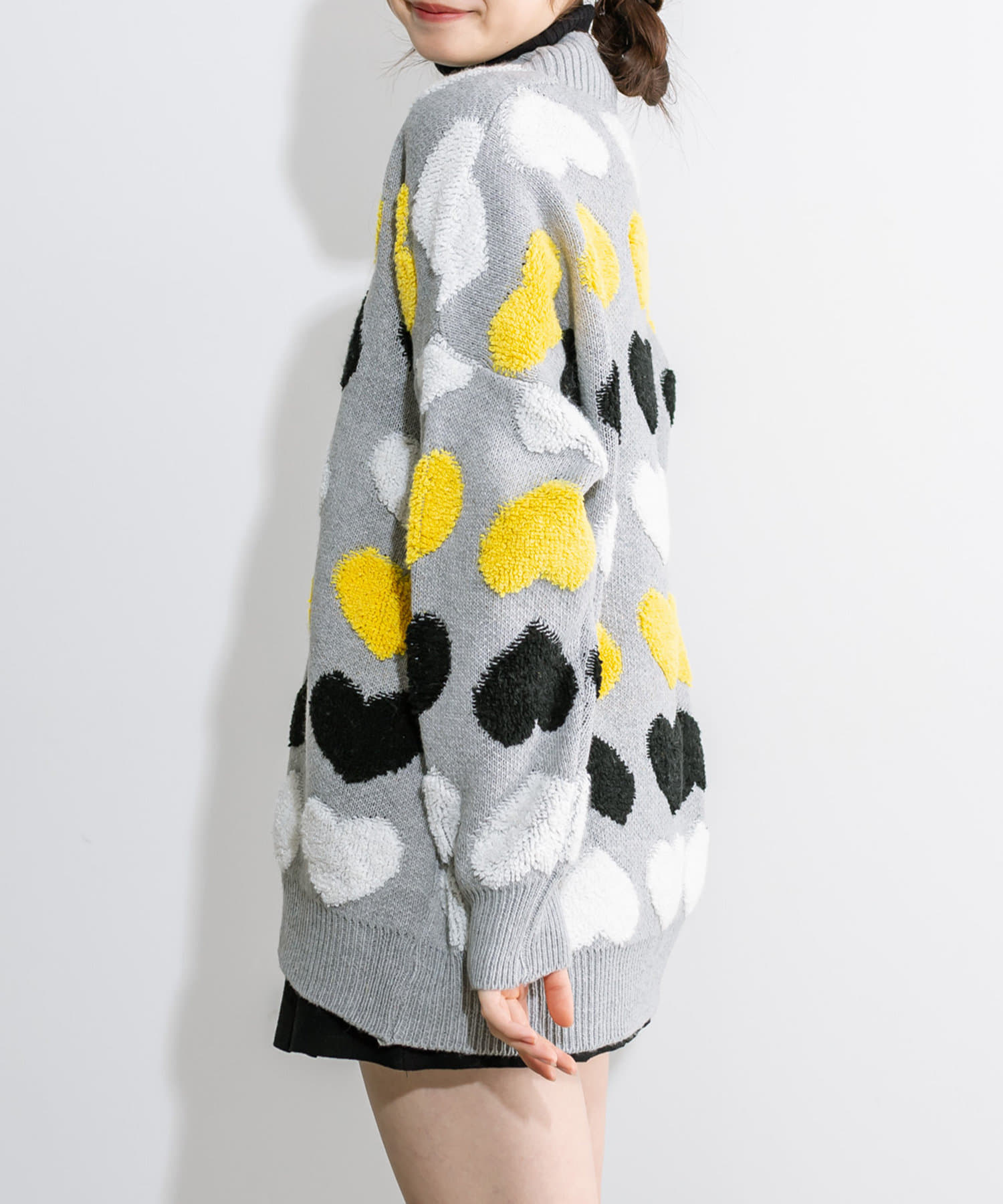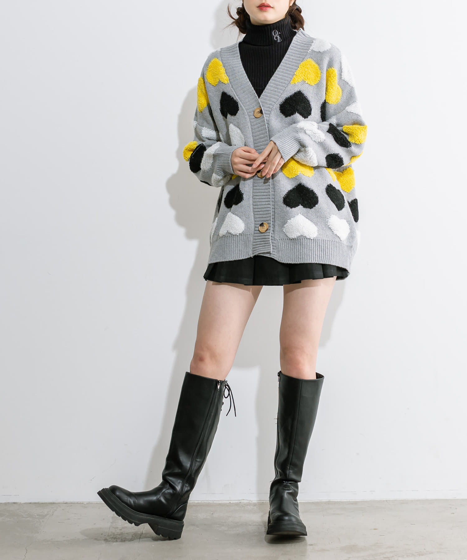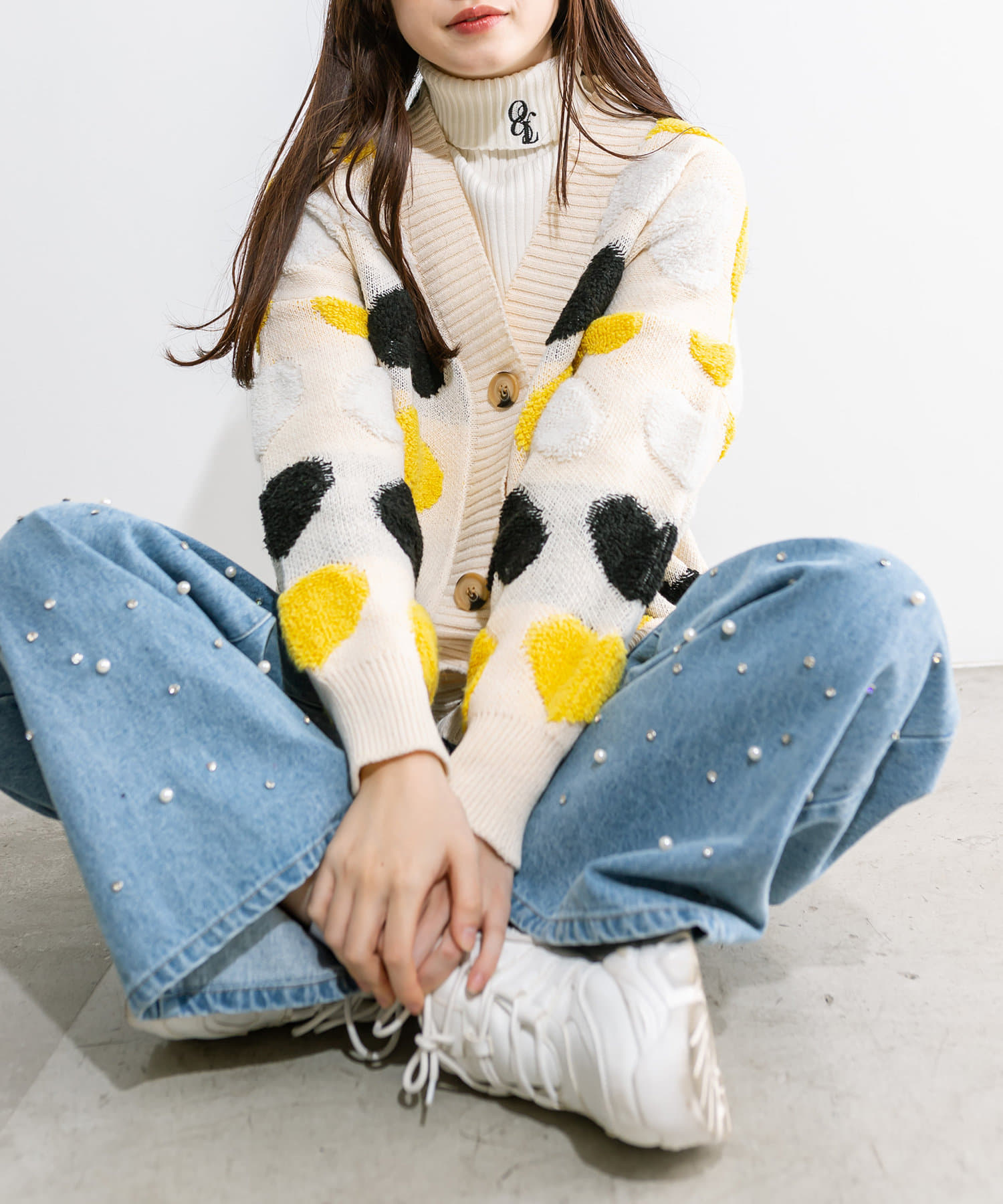 トレンドのハート柄が可愛いカーデ