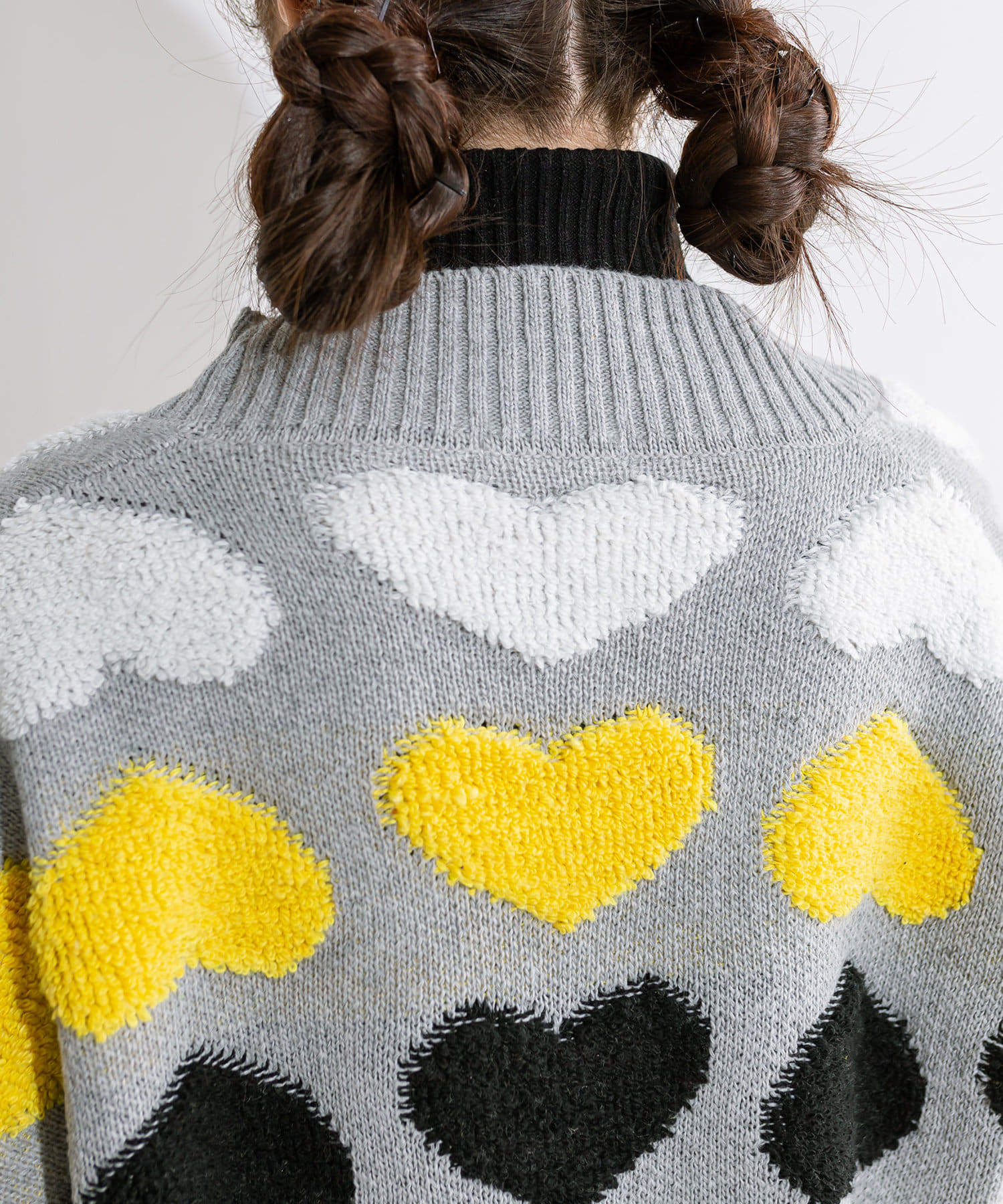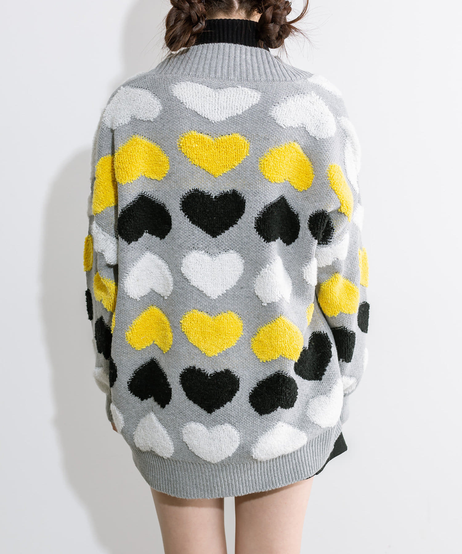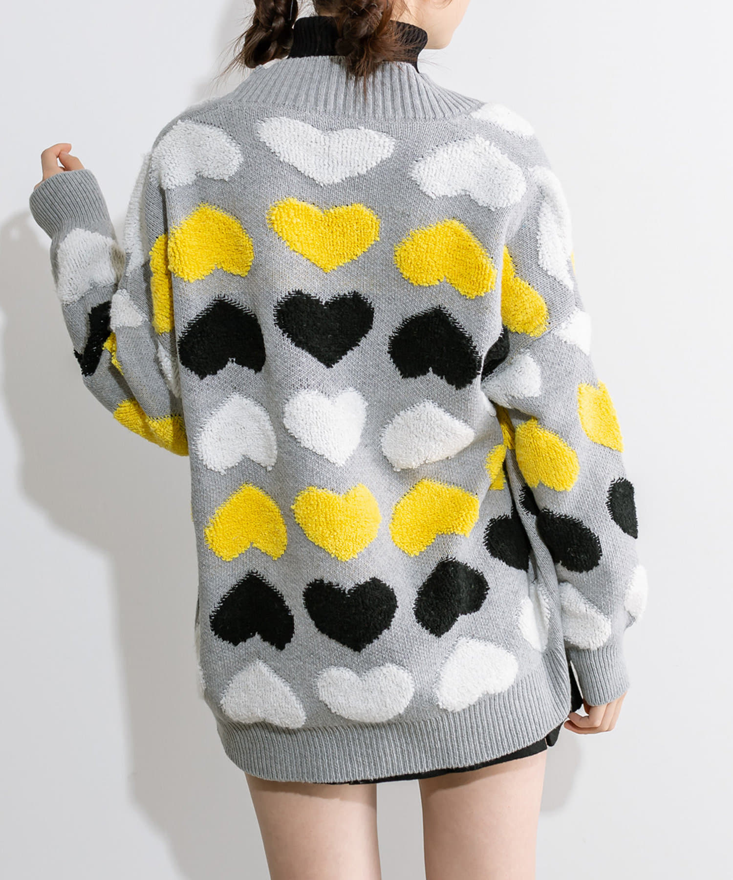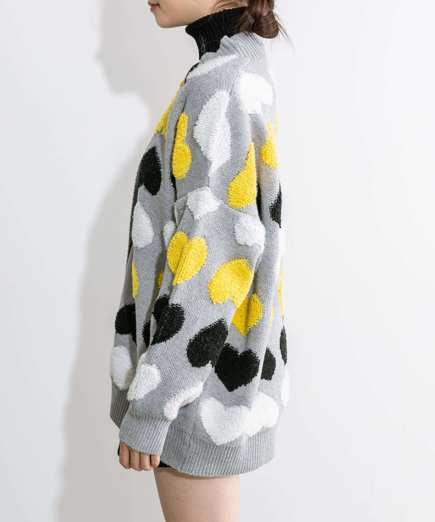 ・目を惹く大きなハート柄がコーデの主役に。