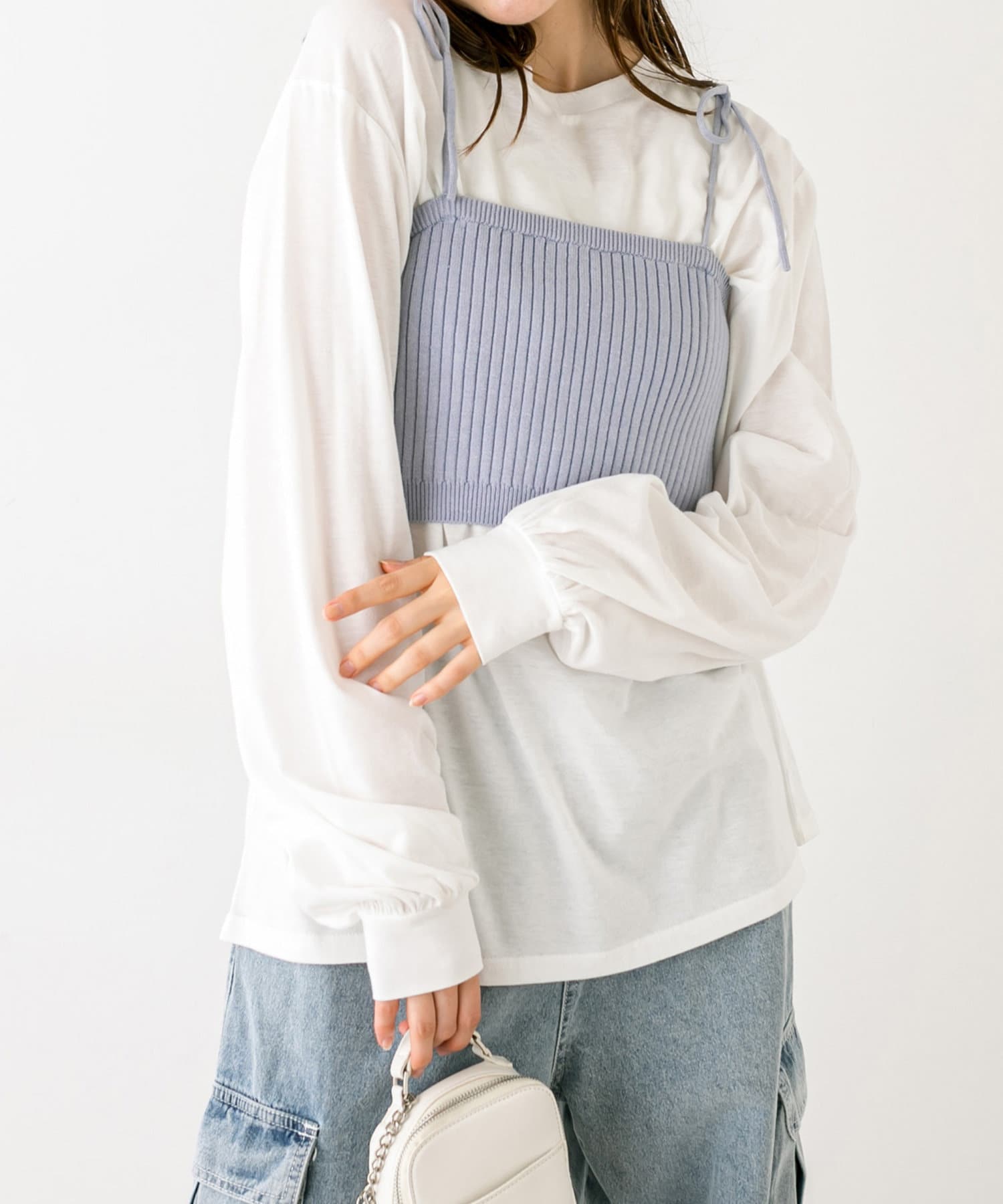 ・いつものコーディネートにプラスするだけで今っぽくなるビスチェと、Tシャツのセット。