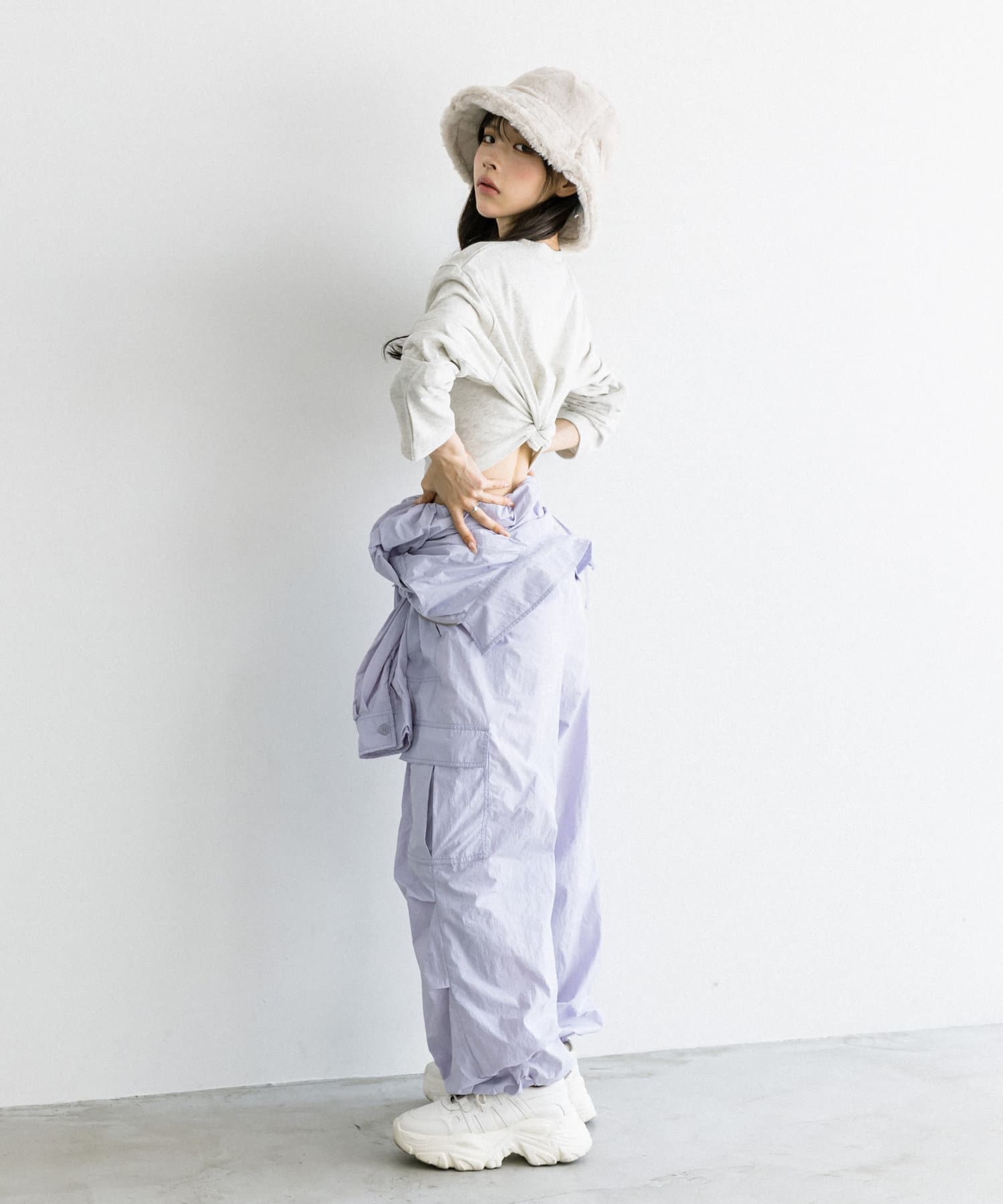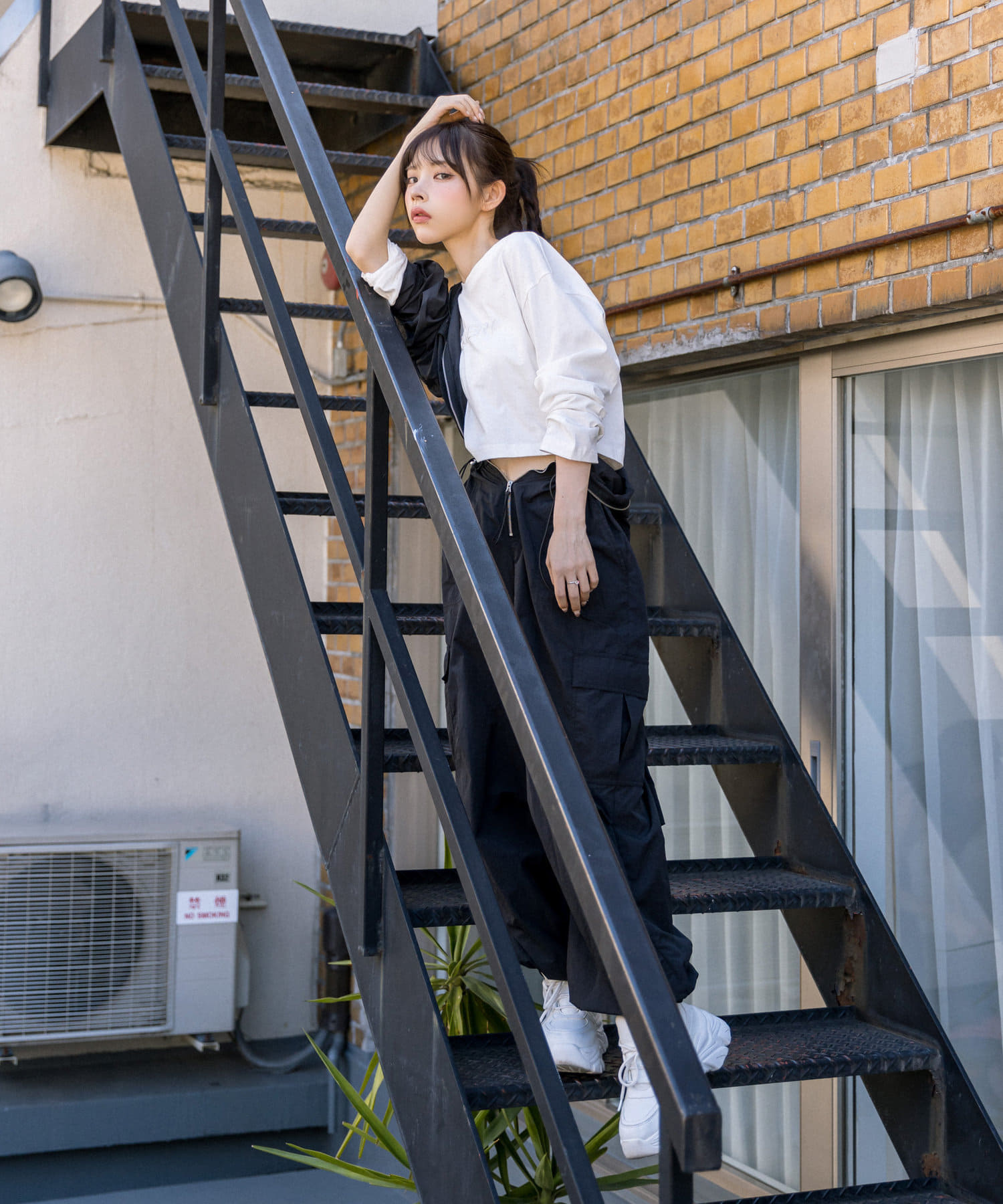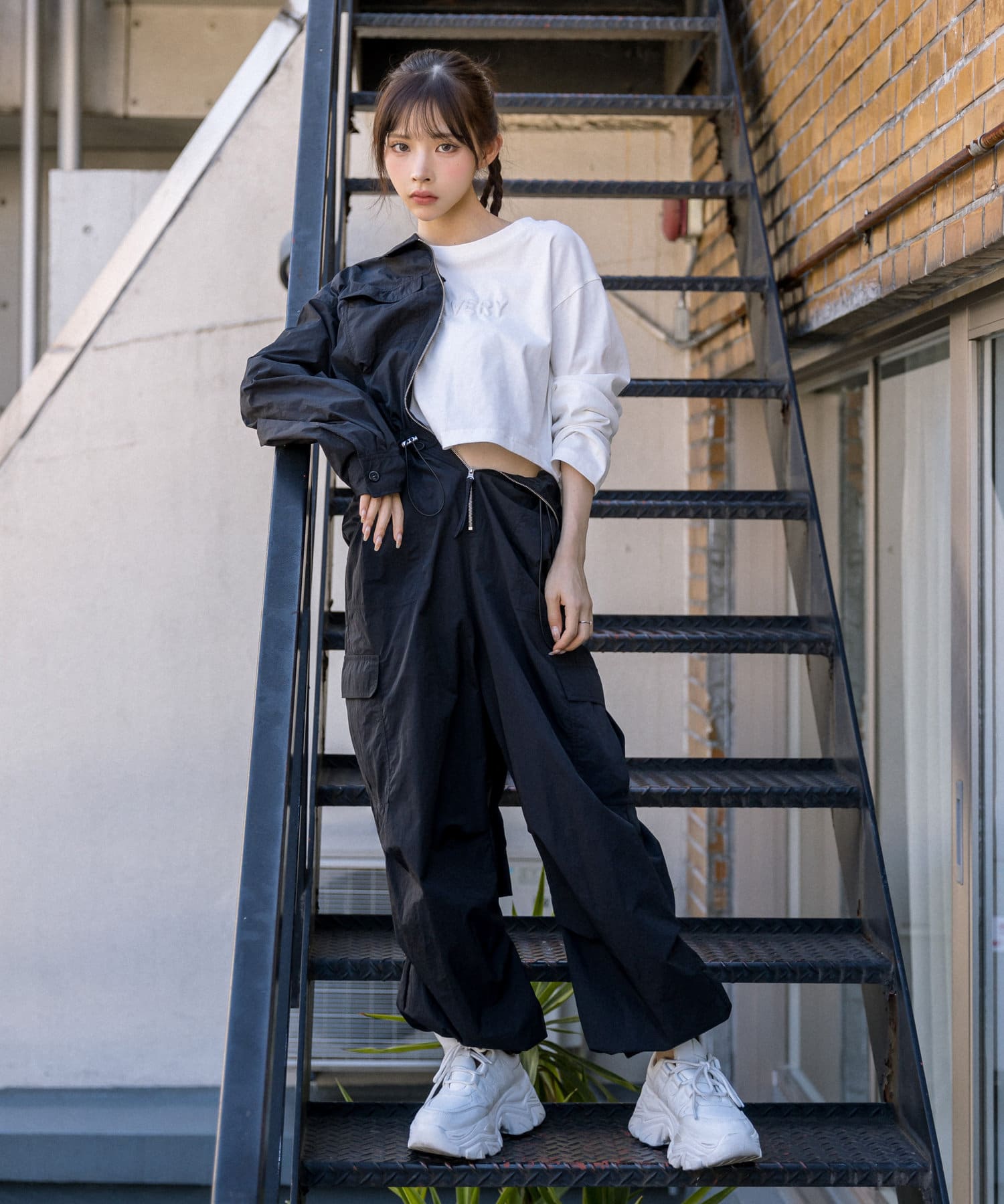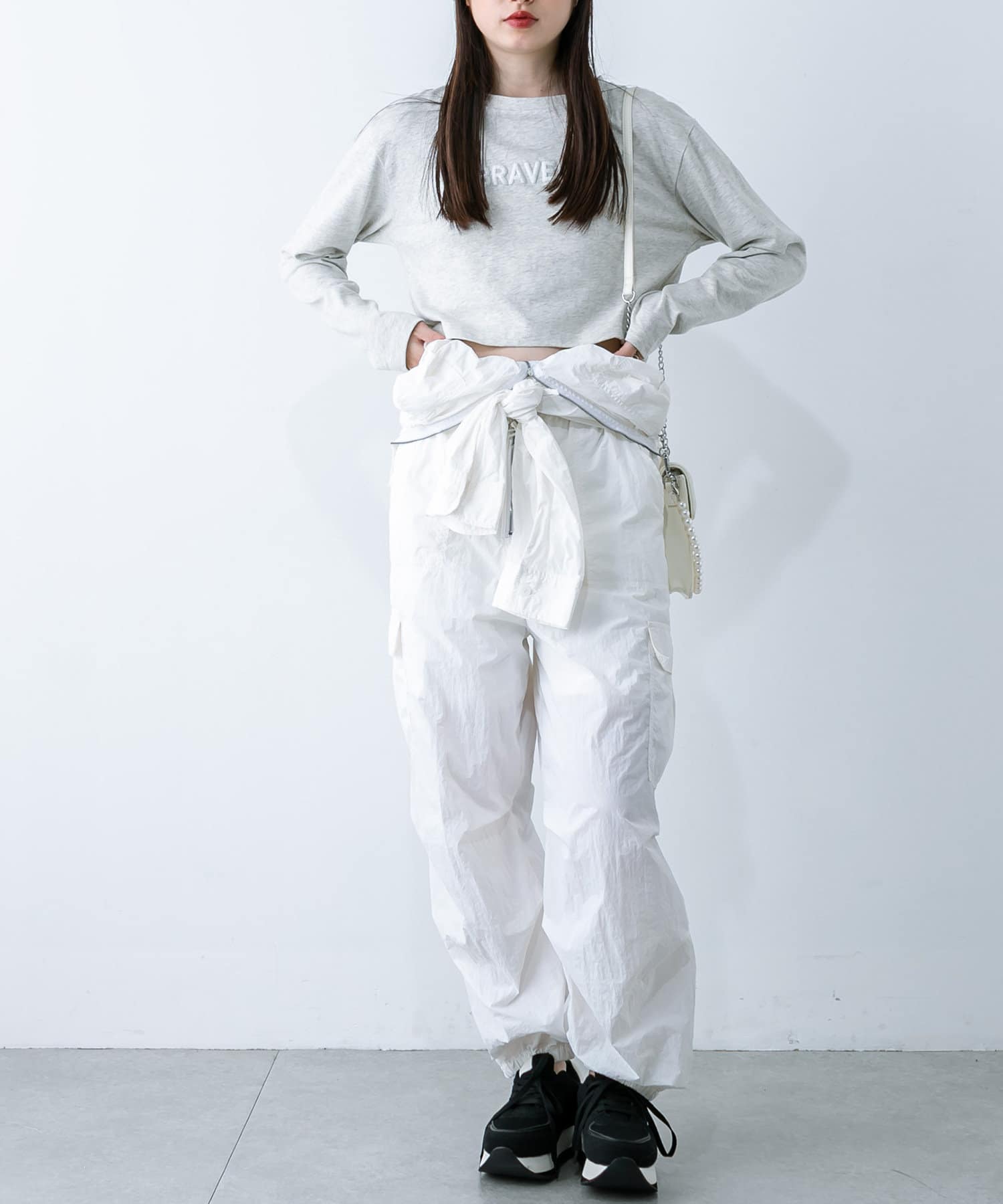 ・カーゴパンツで合わせればトレンドのスポーティースタイルが完成。