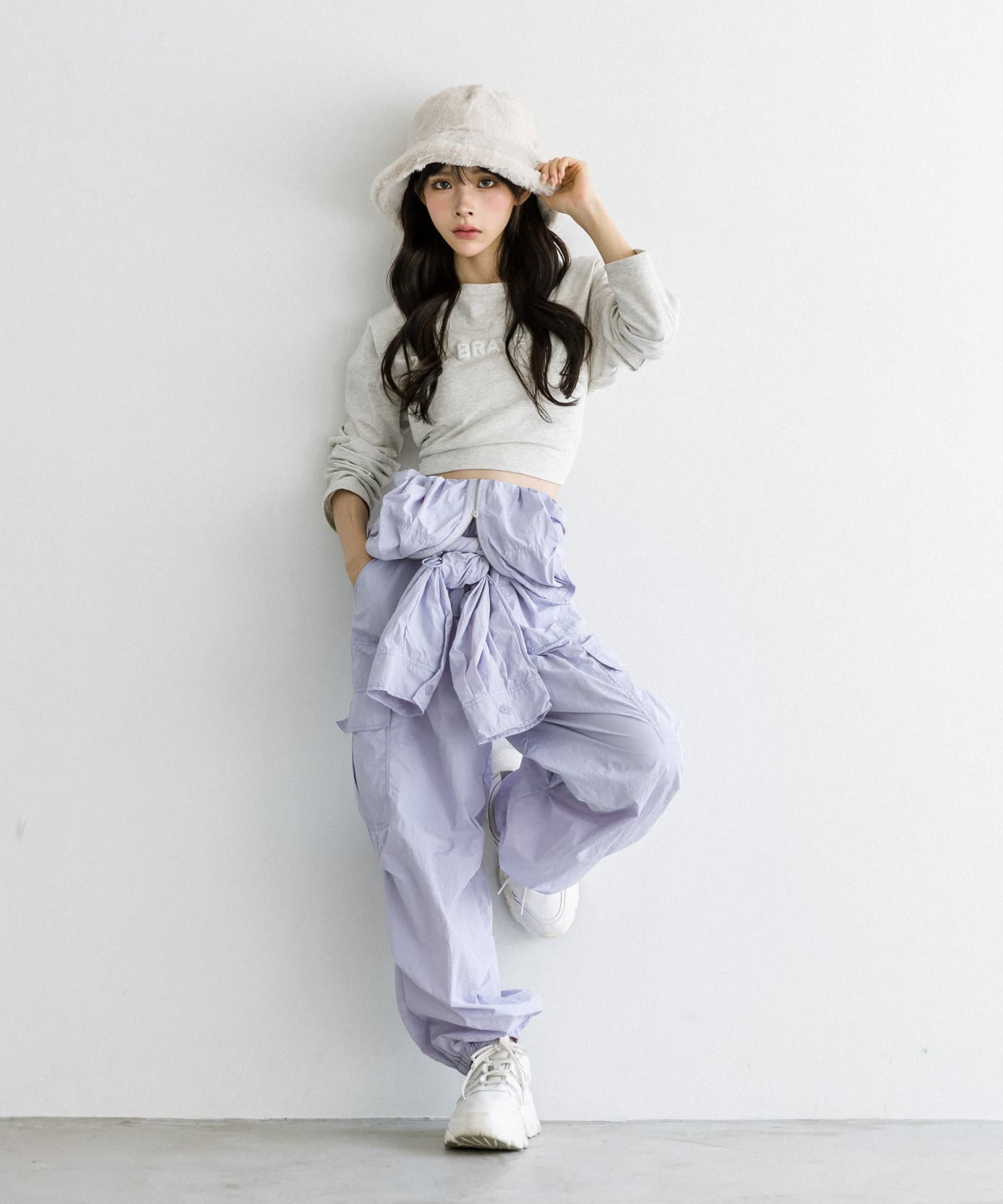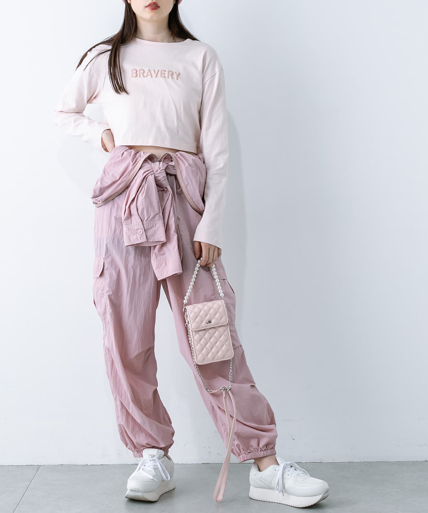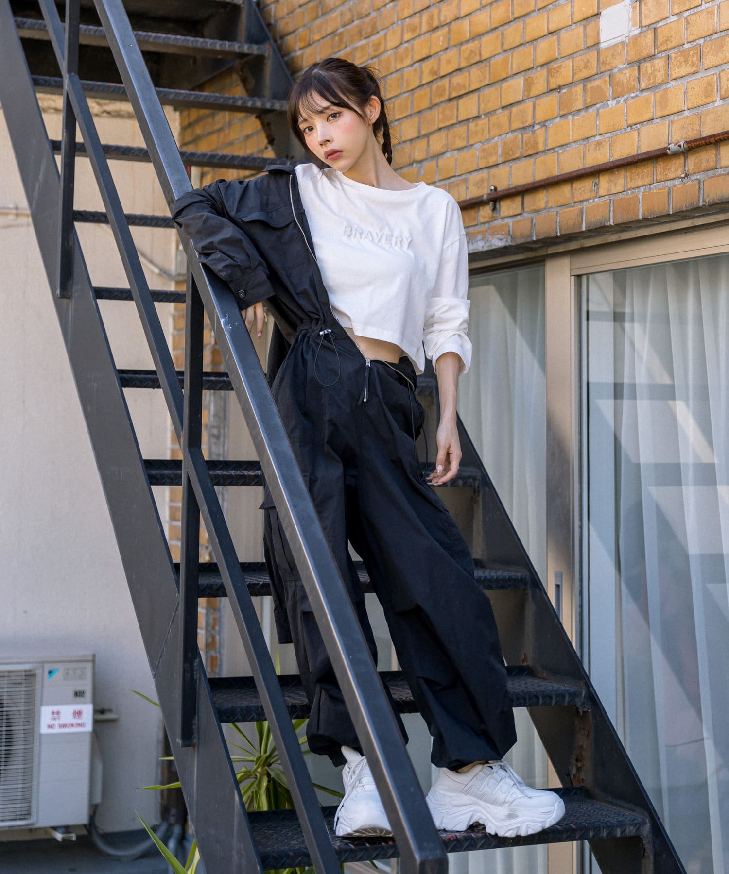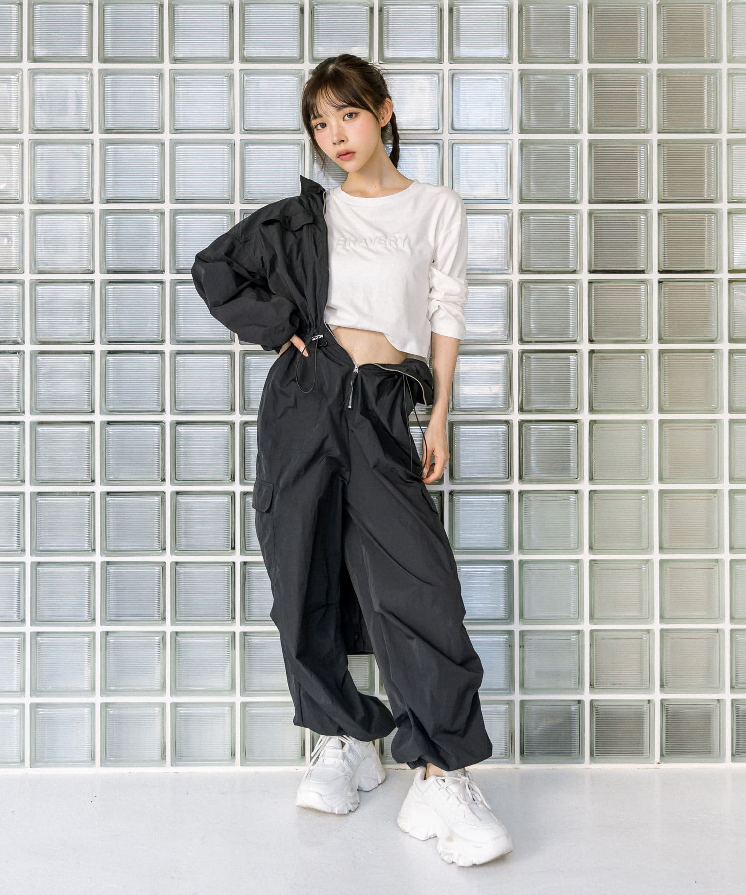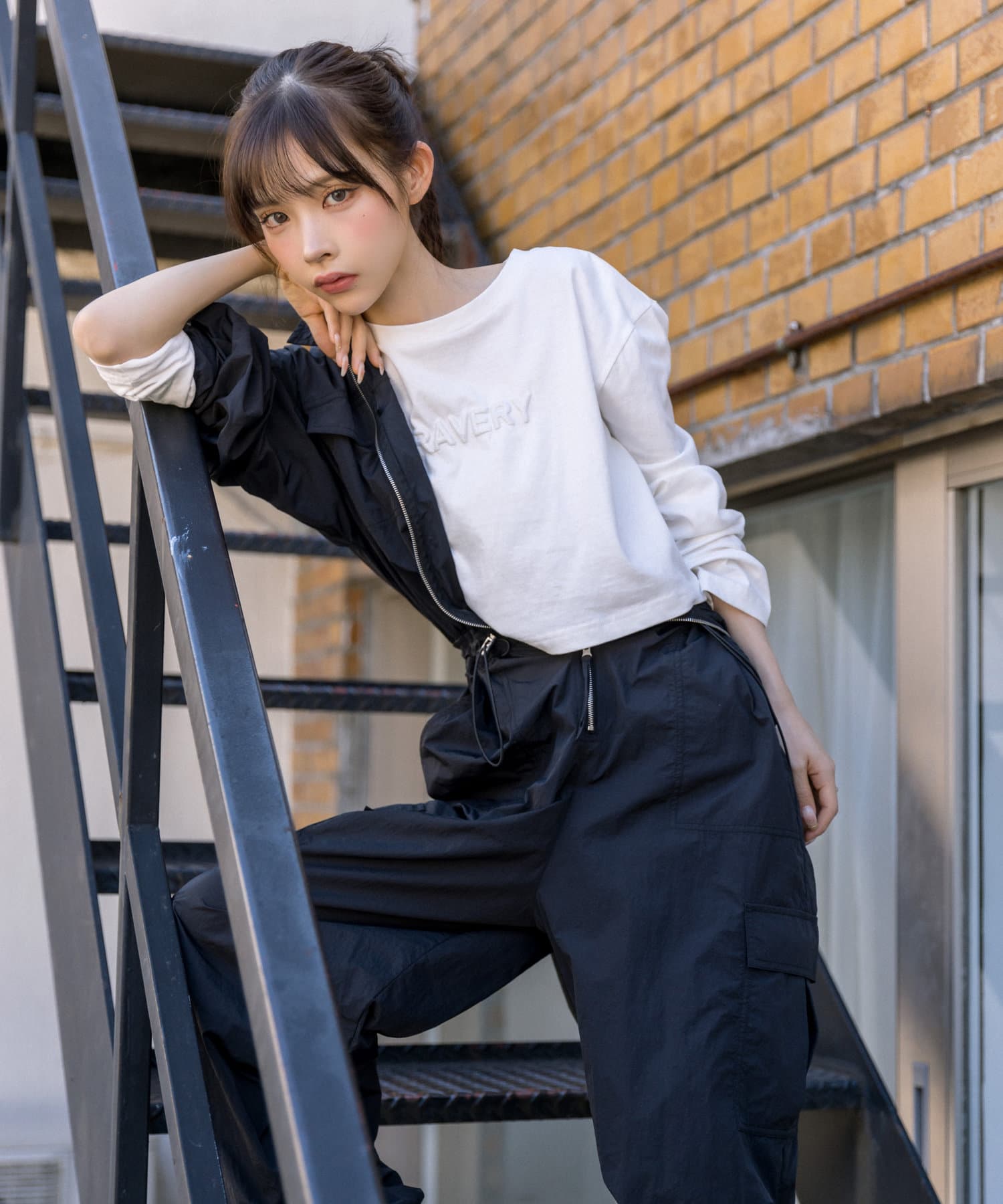 ・カーゴパンツで合わせればトレンドのスポーティースタイルが完成。