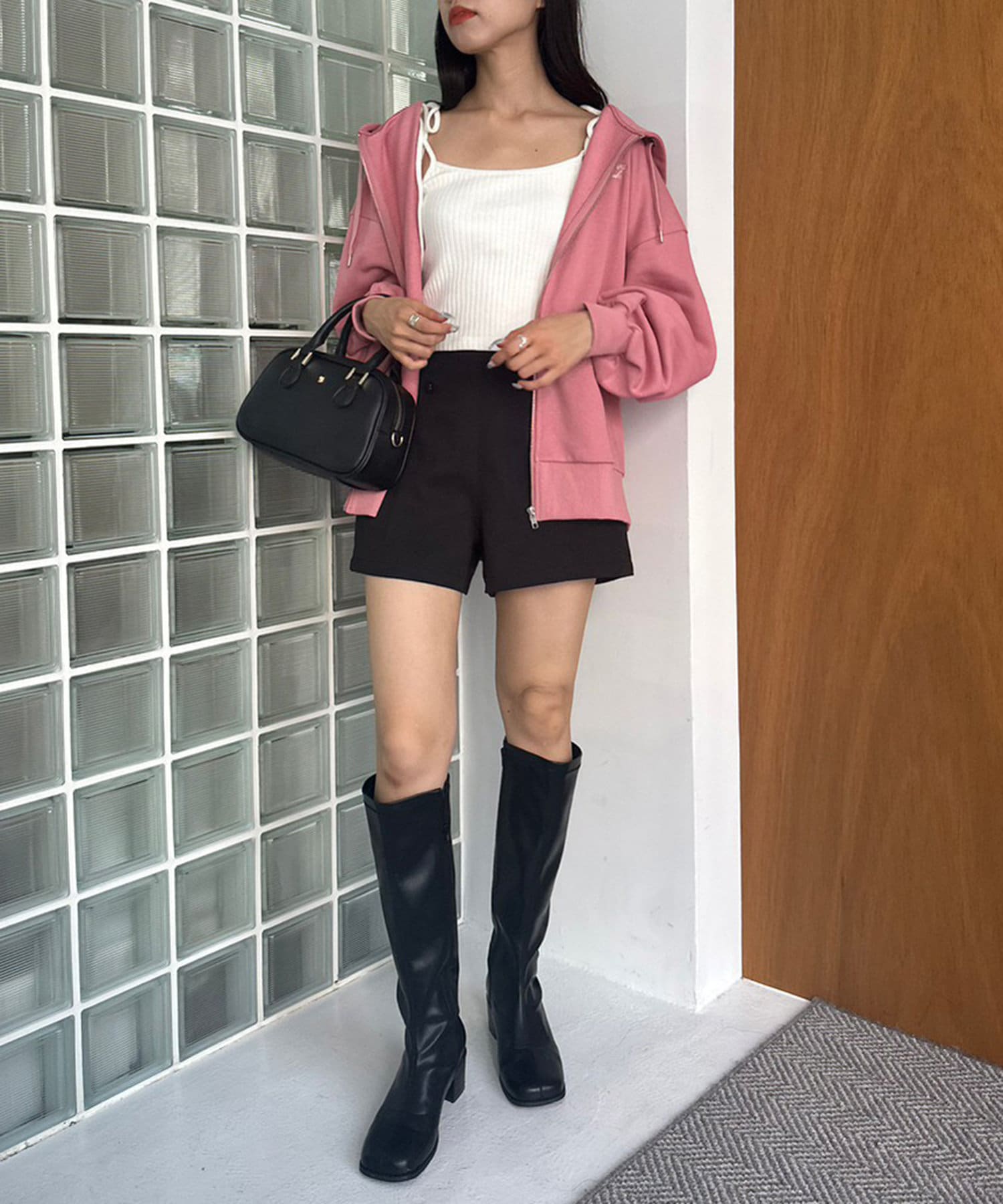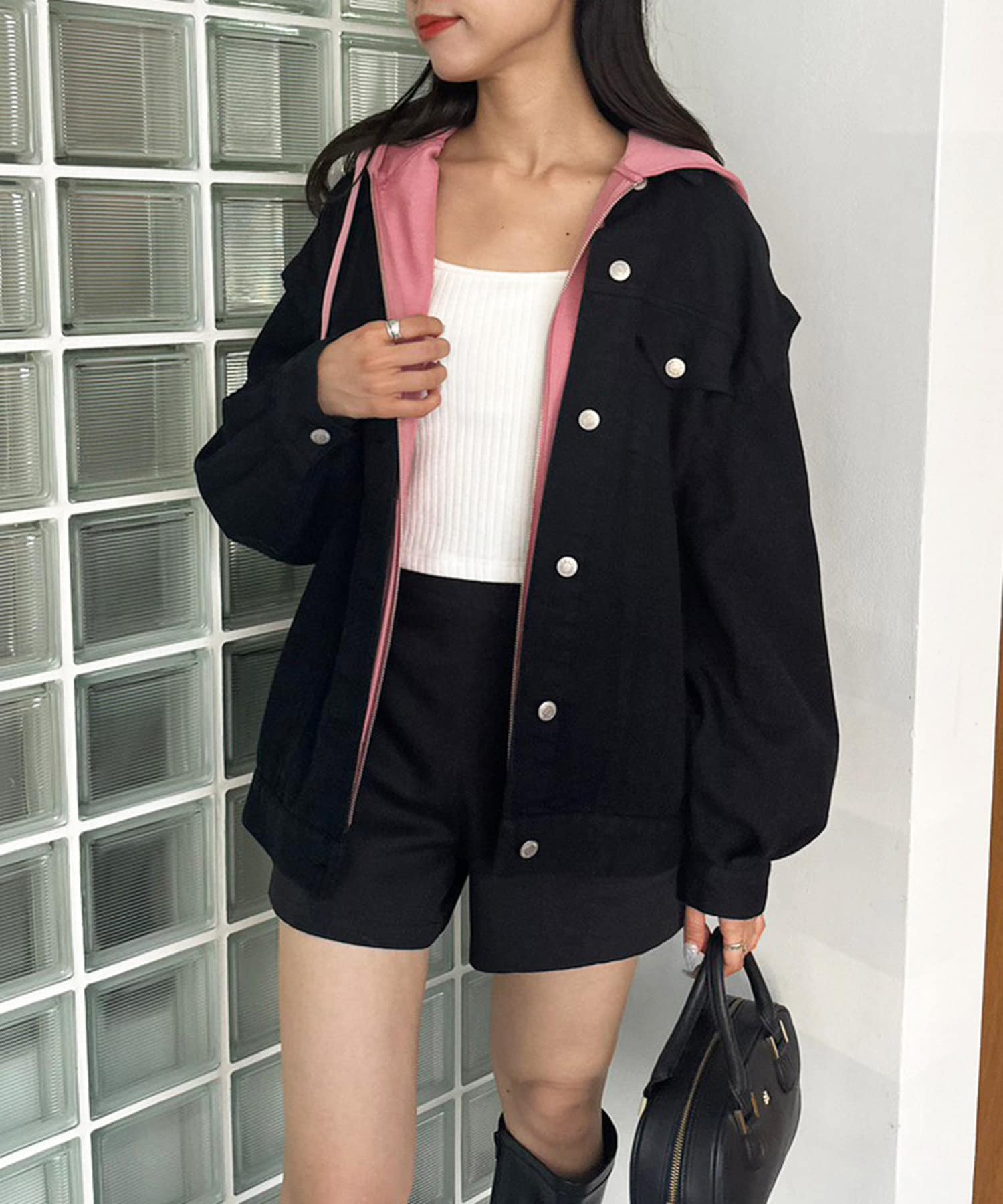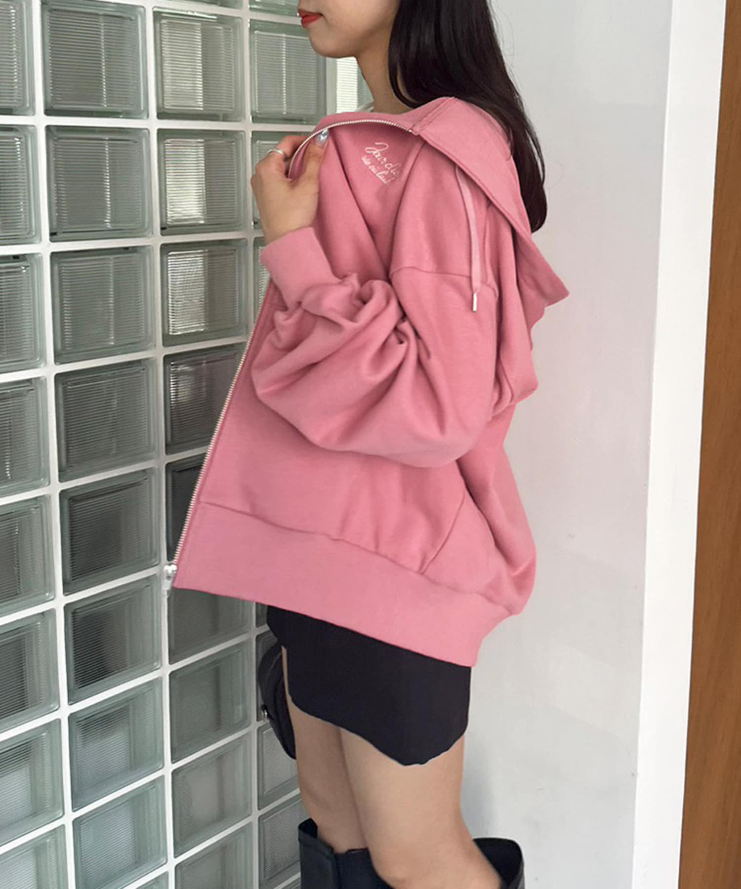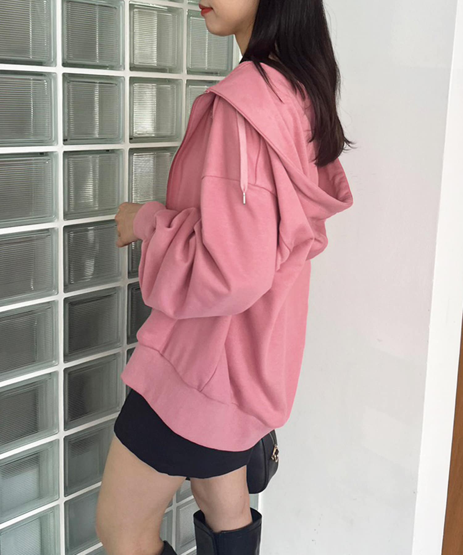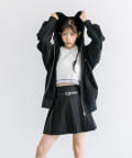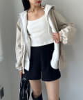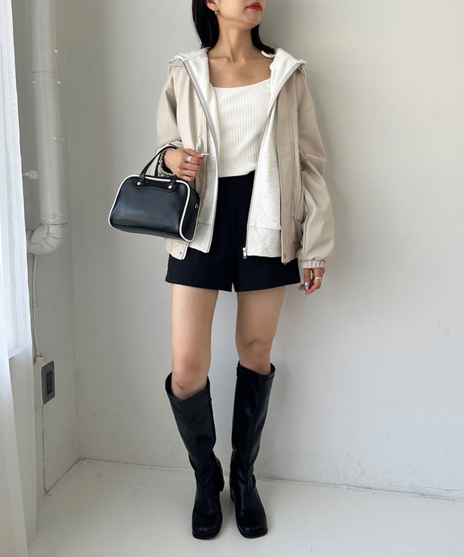 ・テーラードジャケットの中に着て、フードを出して着るのがおすすめ。