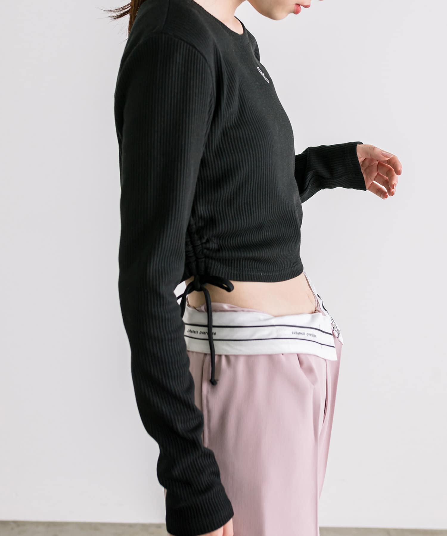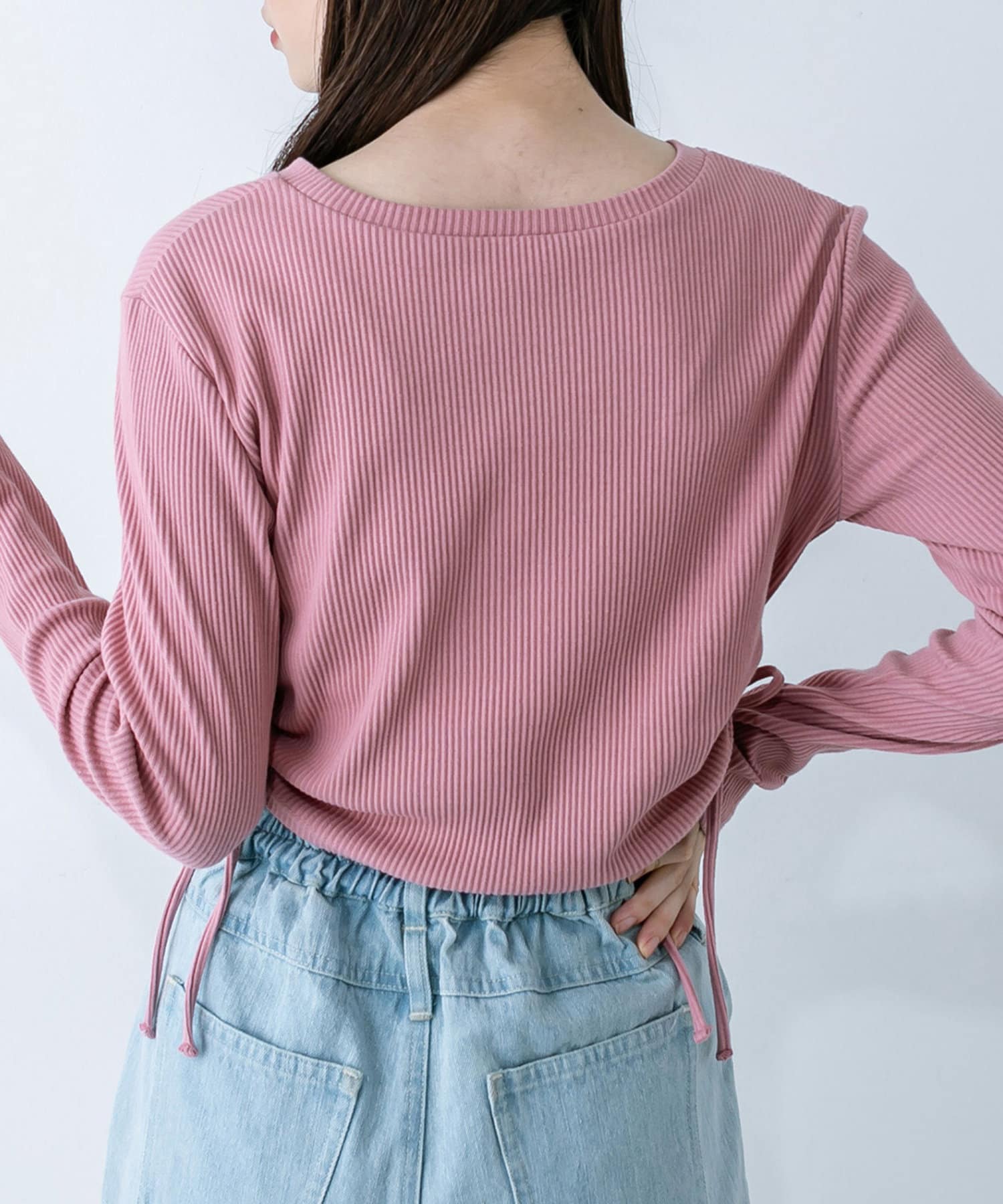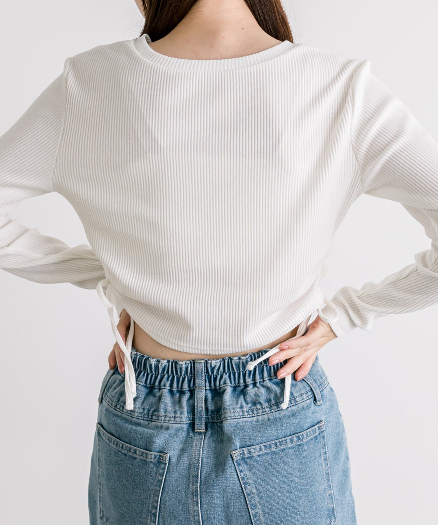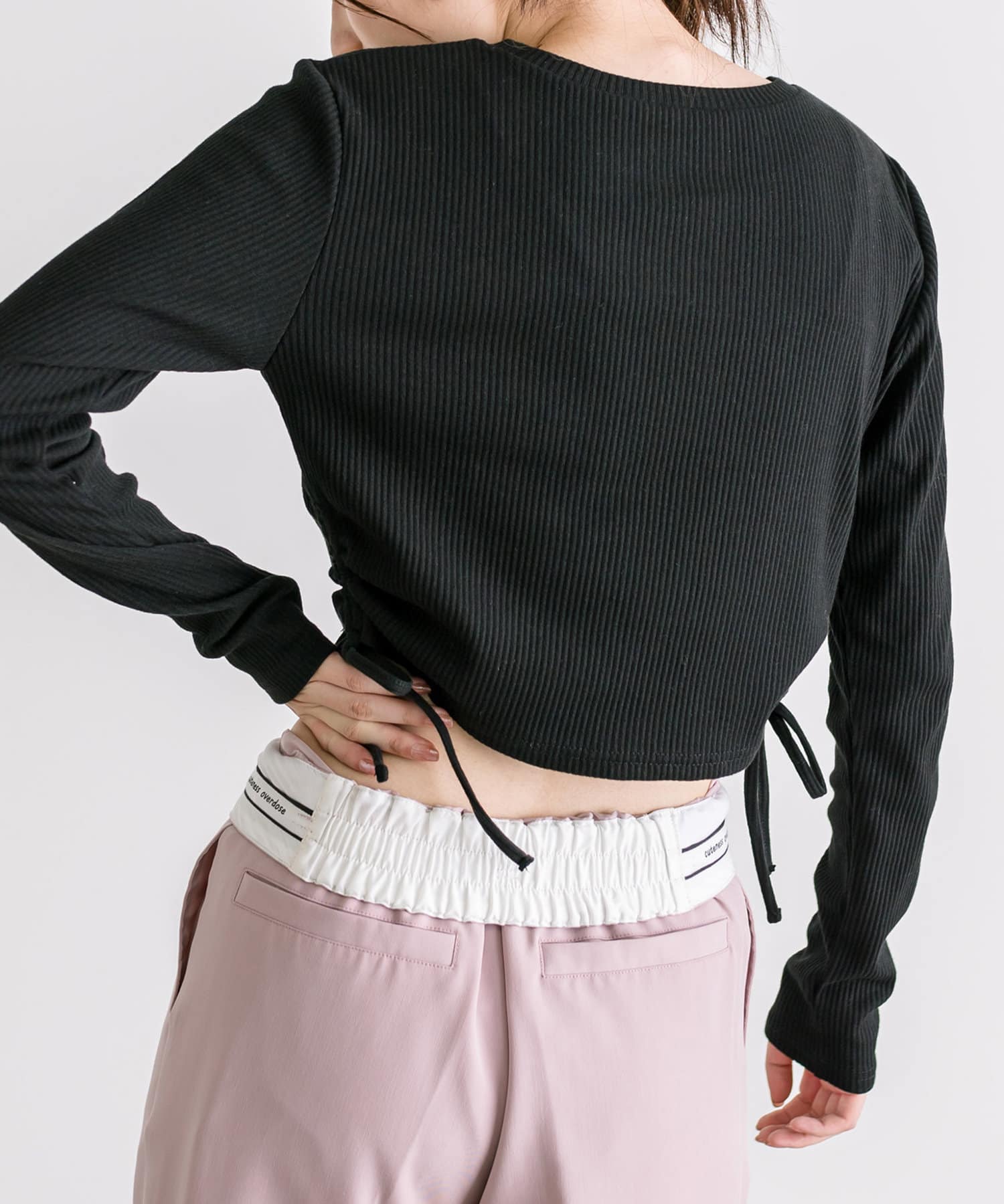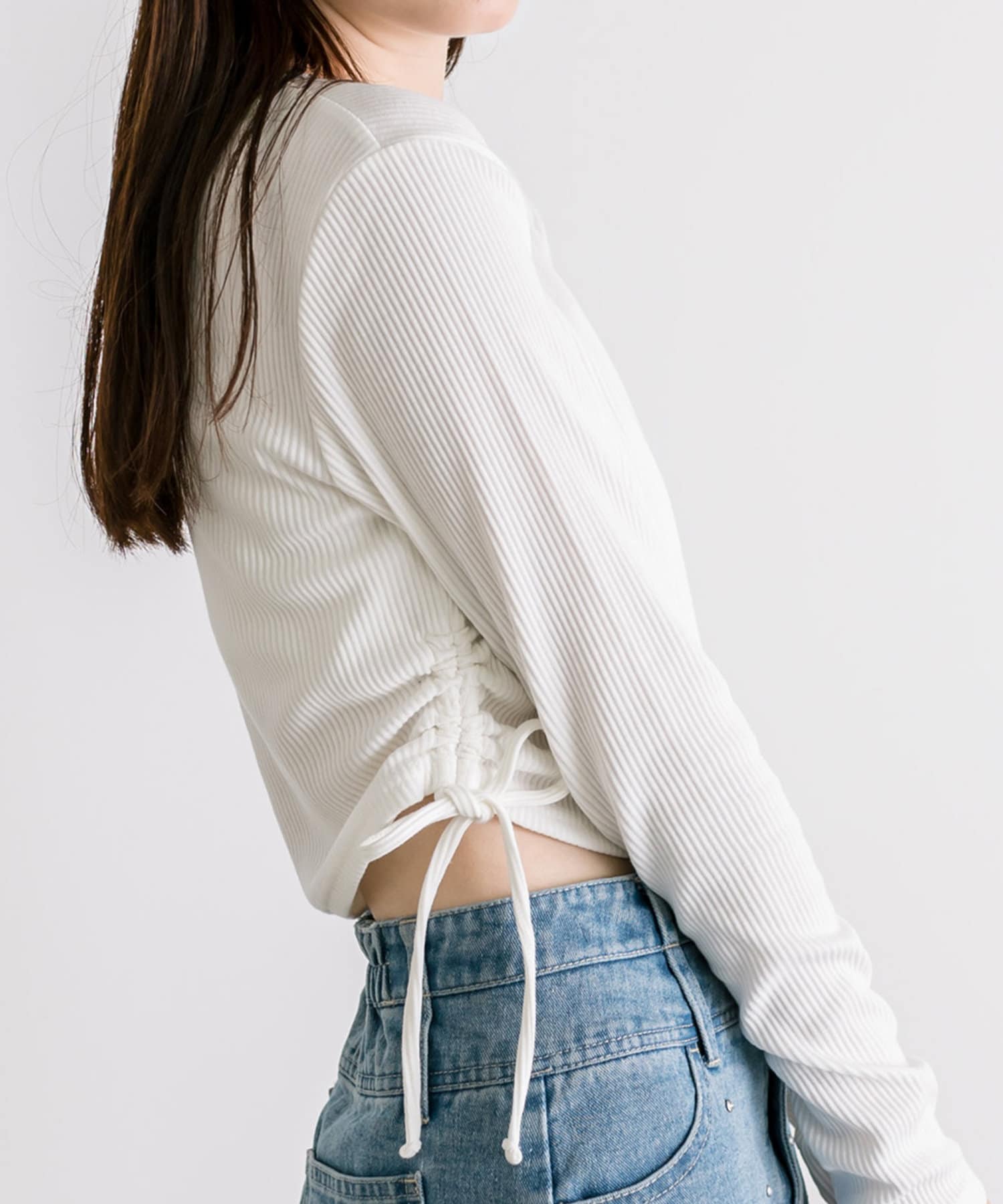 ・ドロストは調節可能。肌見せしたい方は強めに絞ったり、肌見せを押さえたい方は下げて着ていただけます。