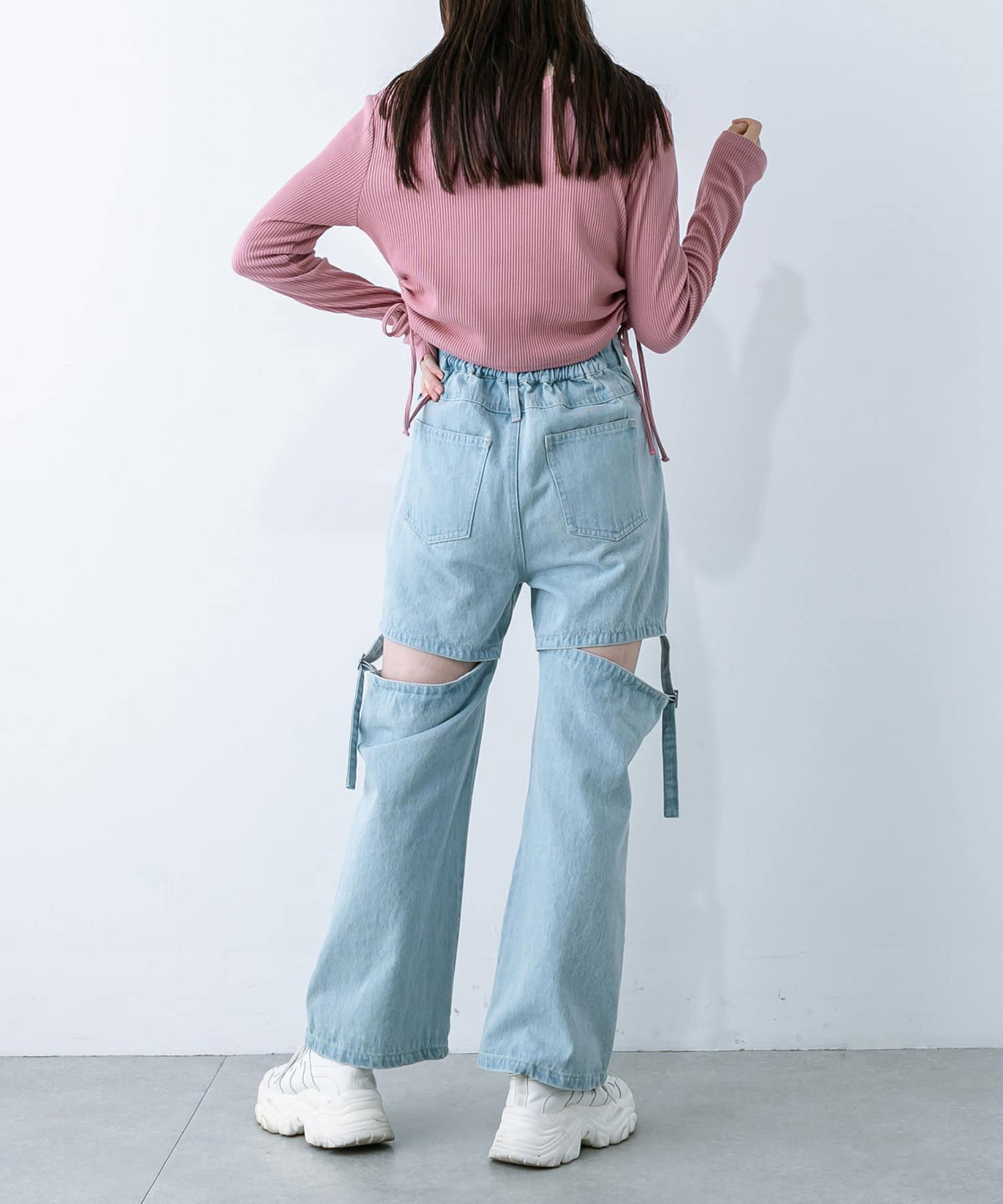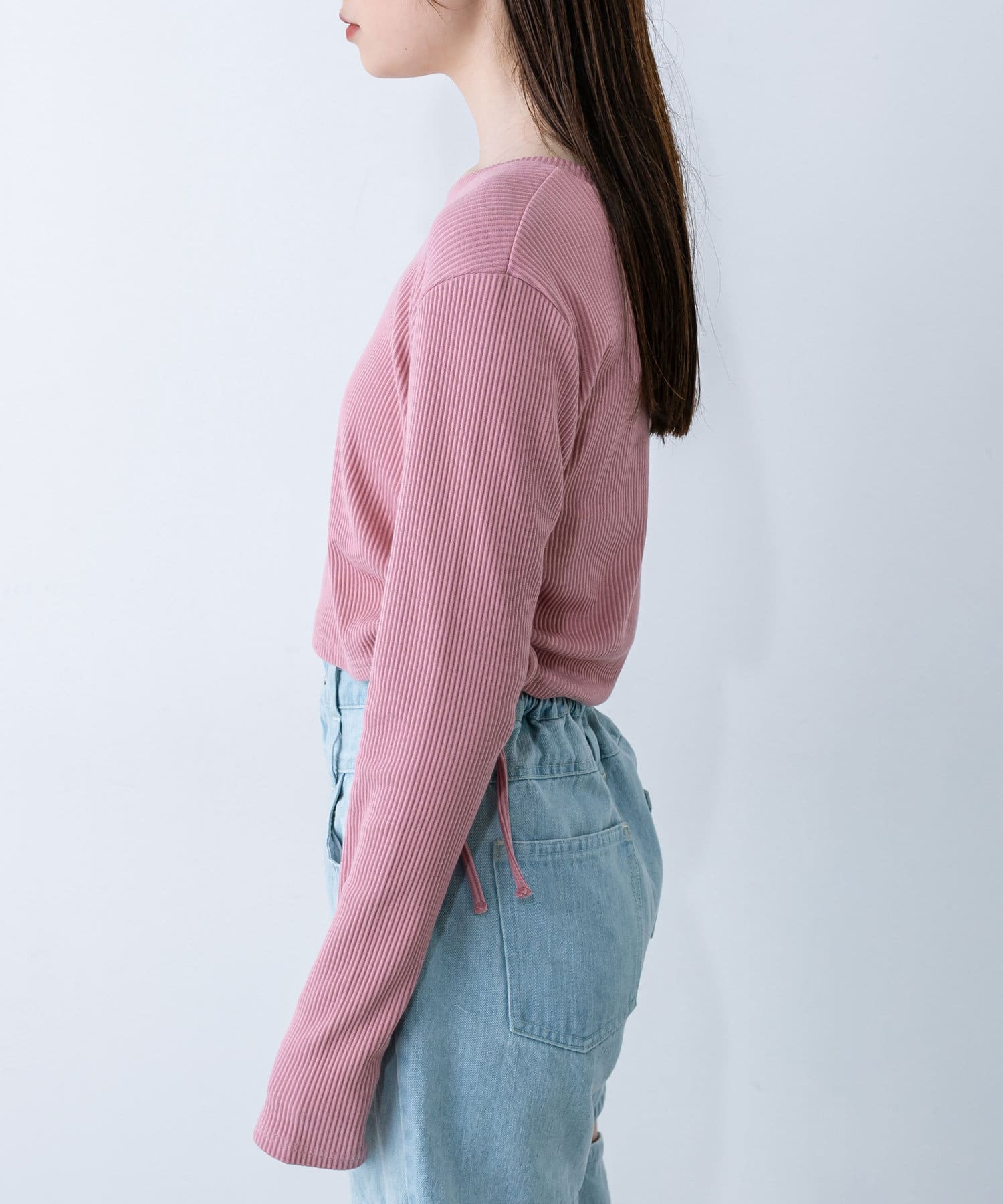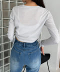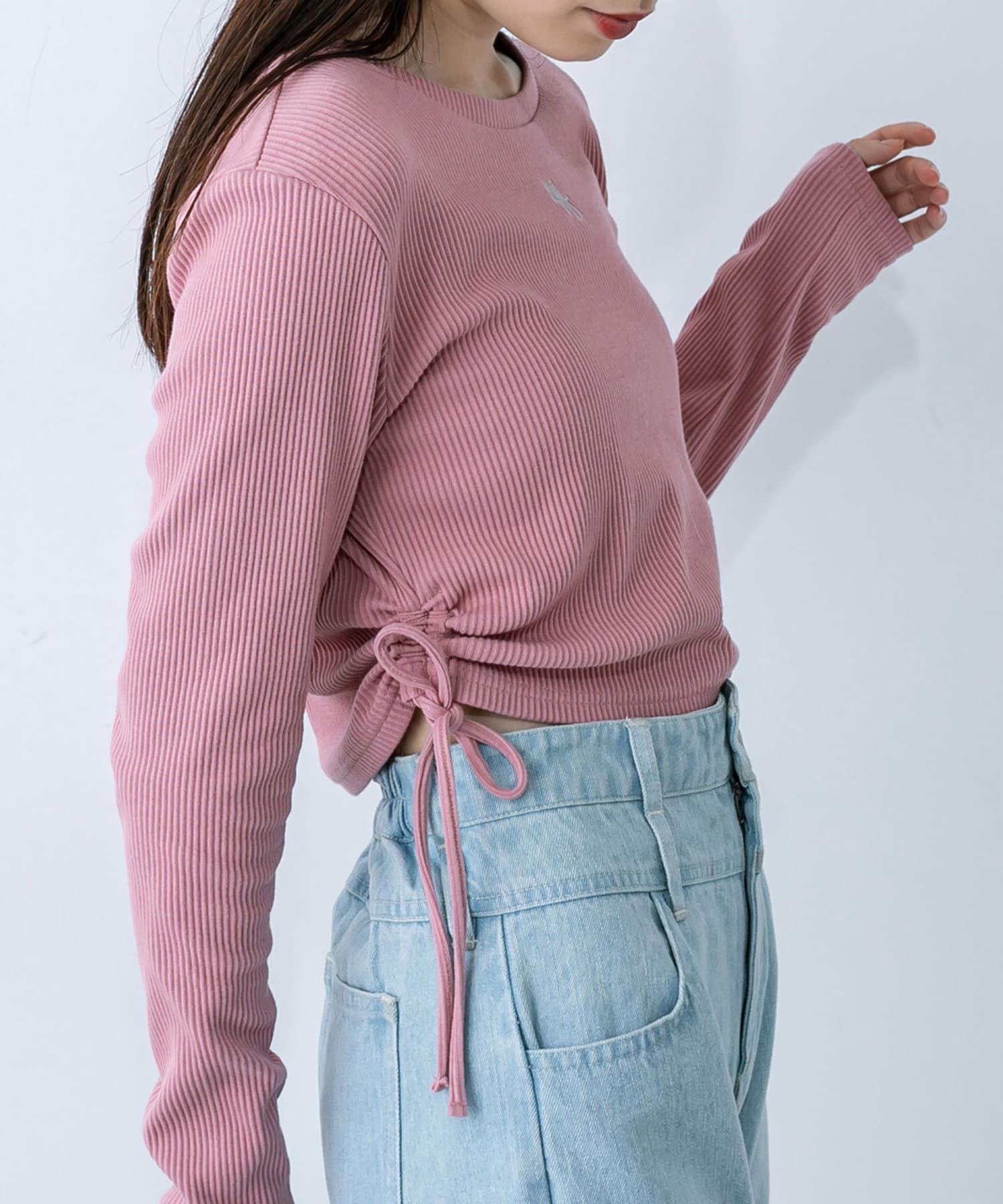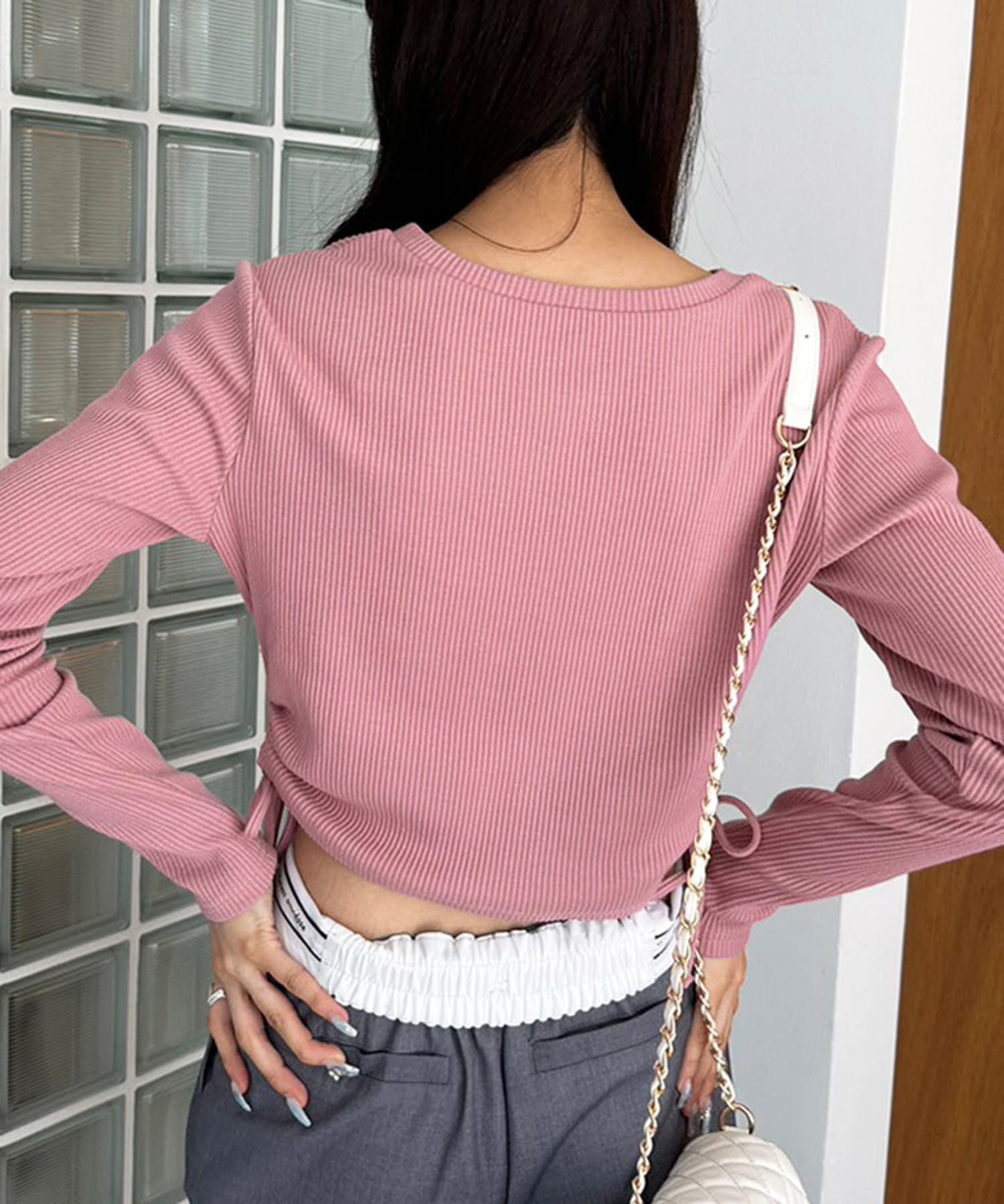 ・ドロストは調節可能。肌見せしたい方は強めに絞ったり、肌見せを押さえたい方は下げて着ていただけます。