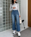 ・タイトめなのでボリュームのあるワイドパンツやカーゴパンツと相性抜群。