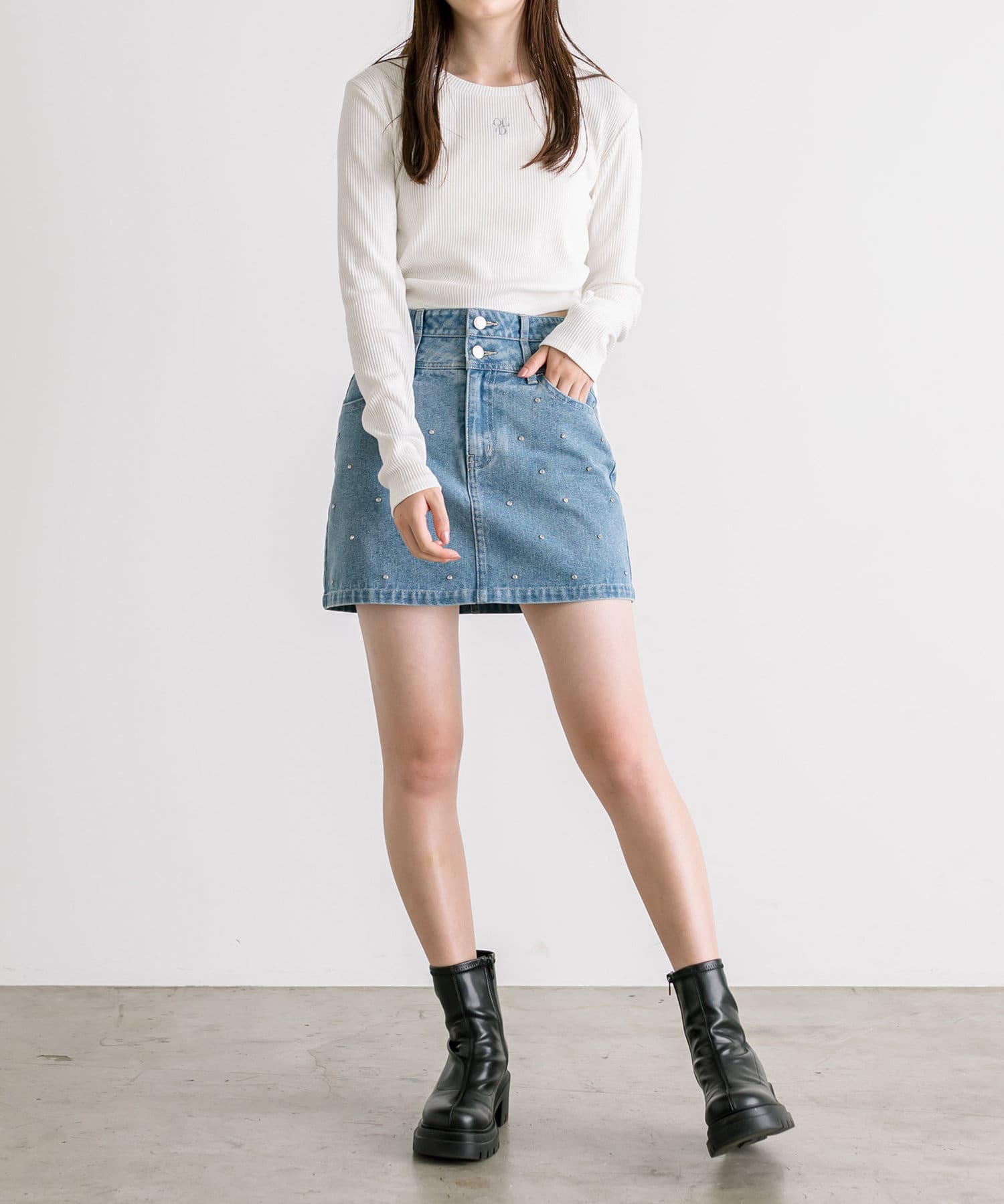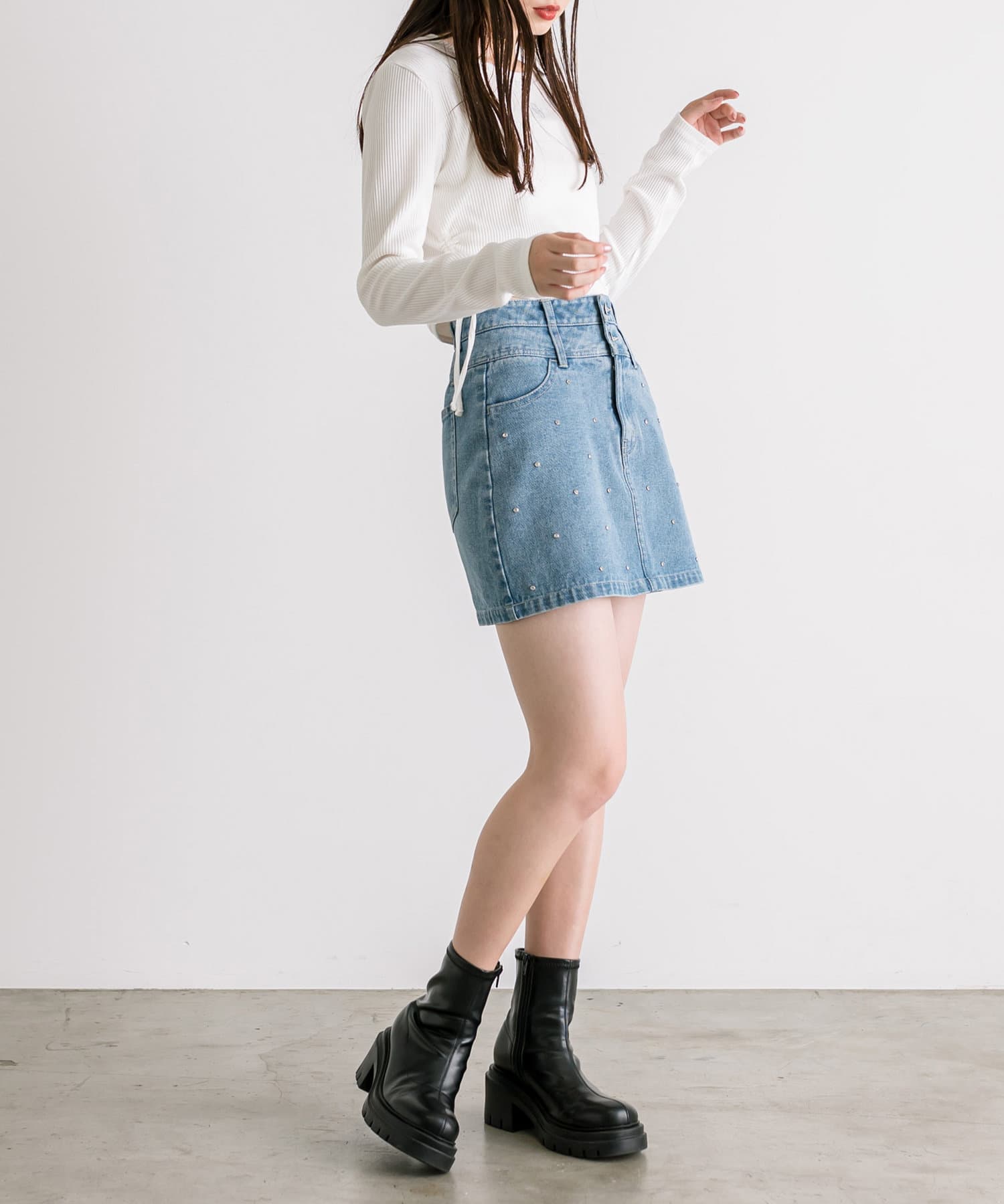 ・甘さをプラスしたい方はミニプリーツスカートで合わせても可愛いです。