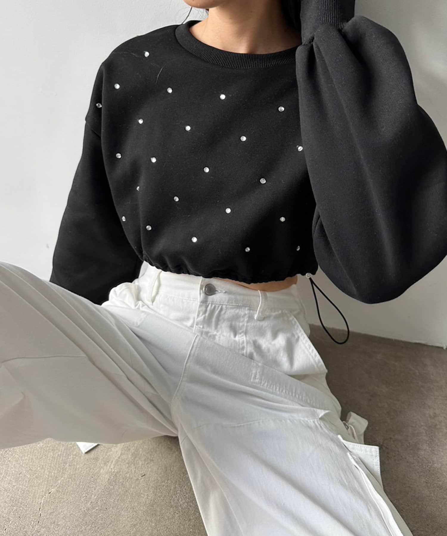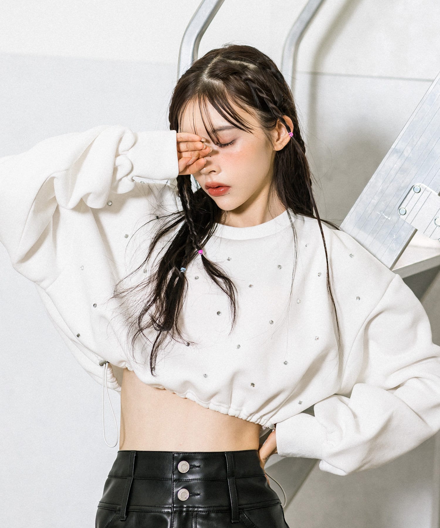 【WEB/一部店舗限定カラーあり】きらきらクロップドトップス
