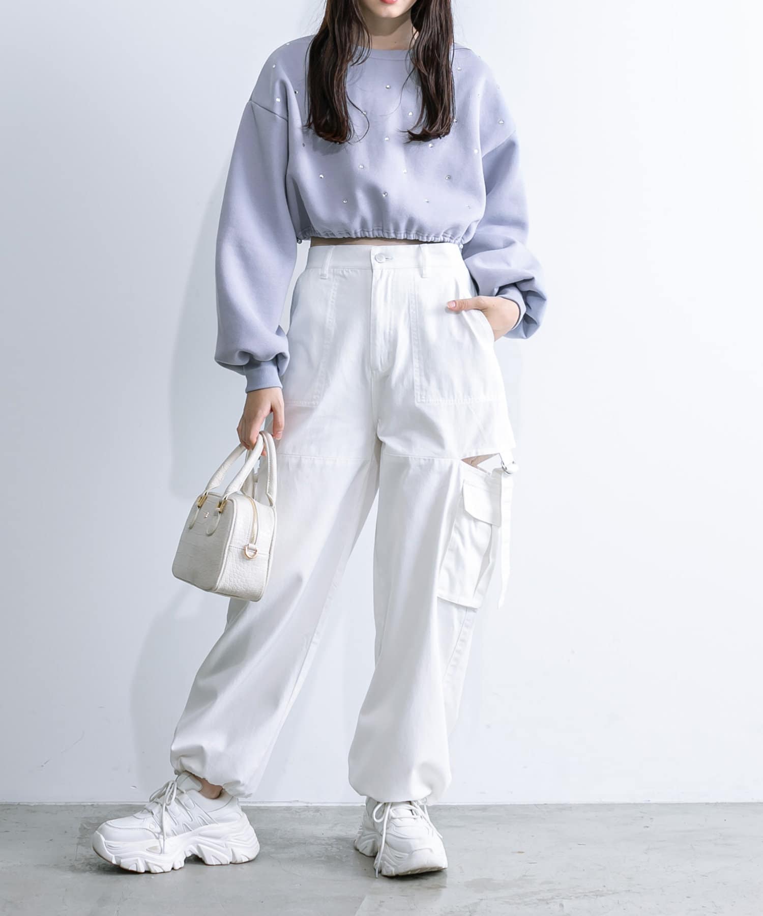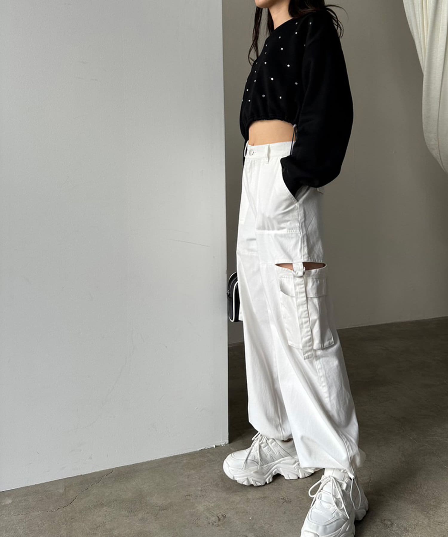 ・トレンドのカーゴパンツとのコーディネートがおすすめ。