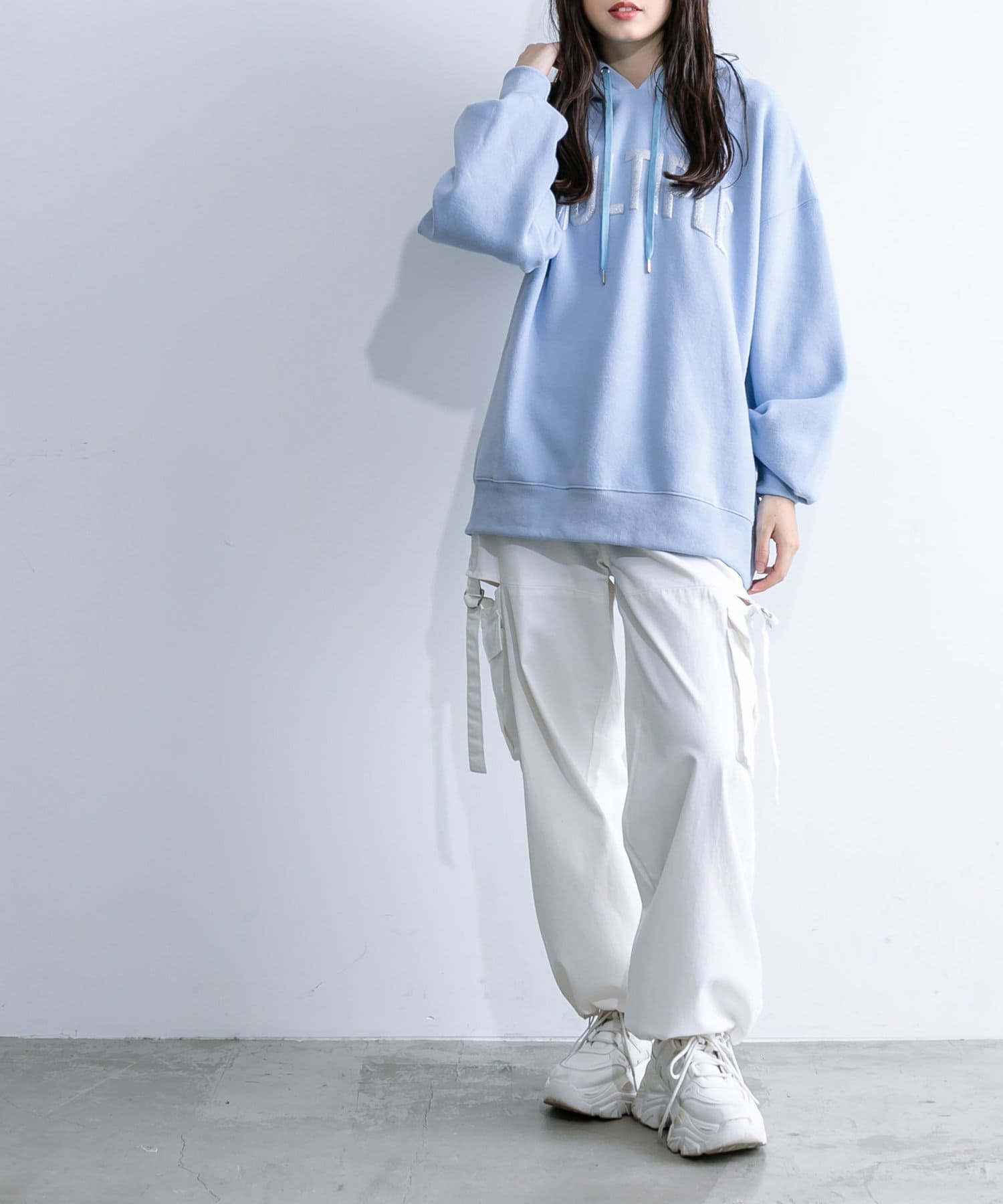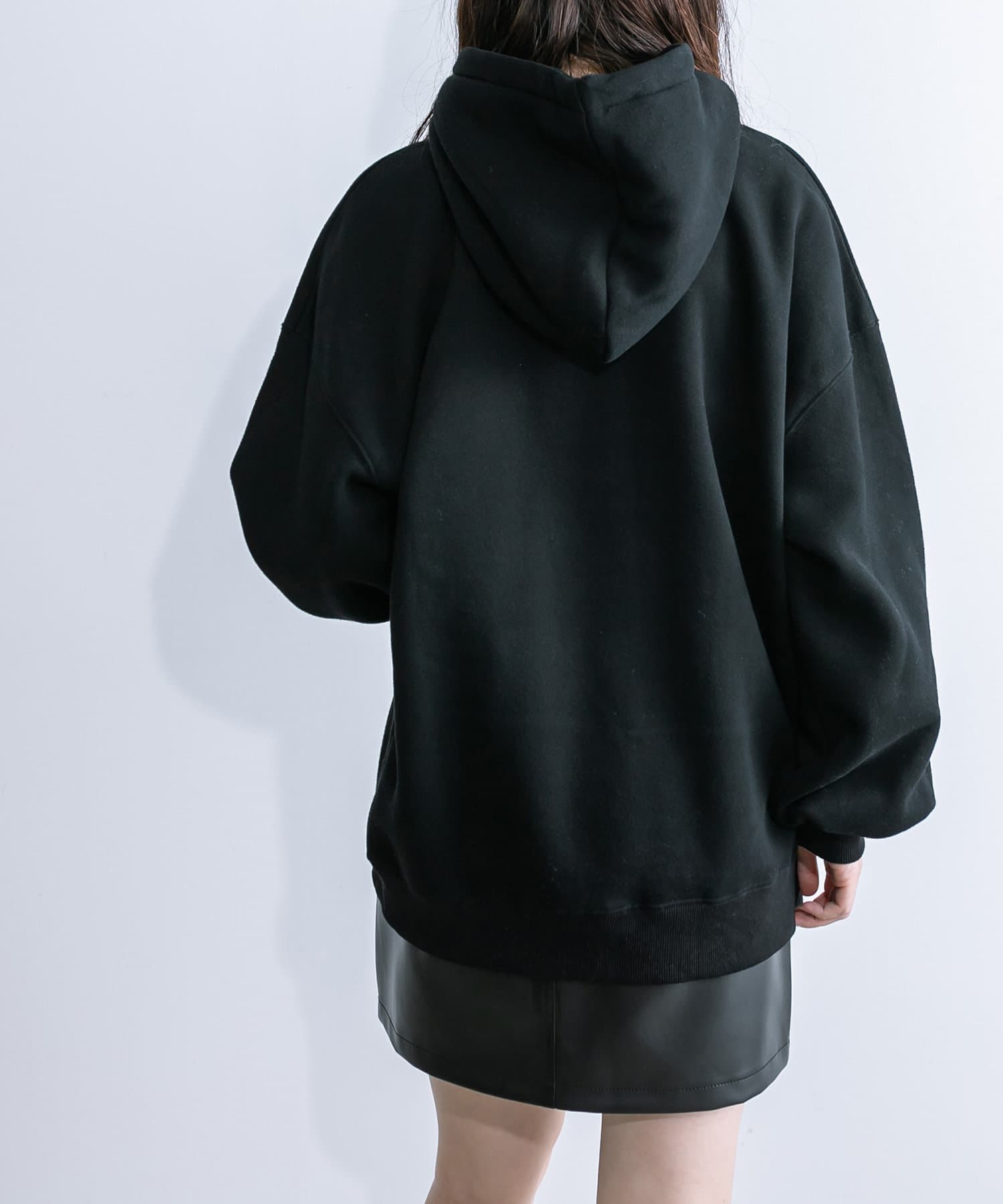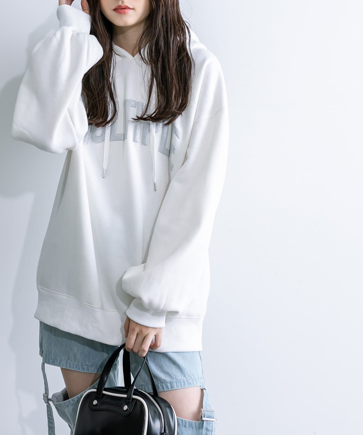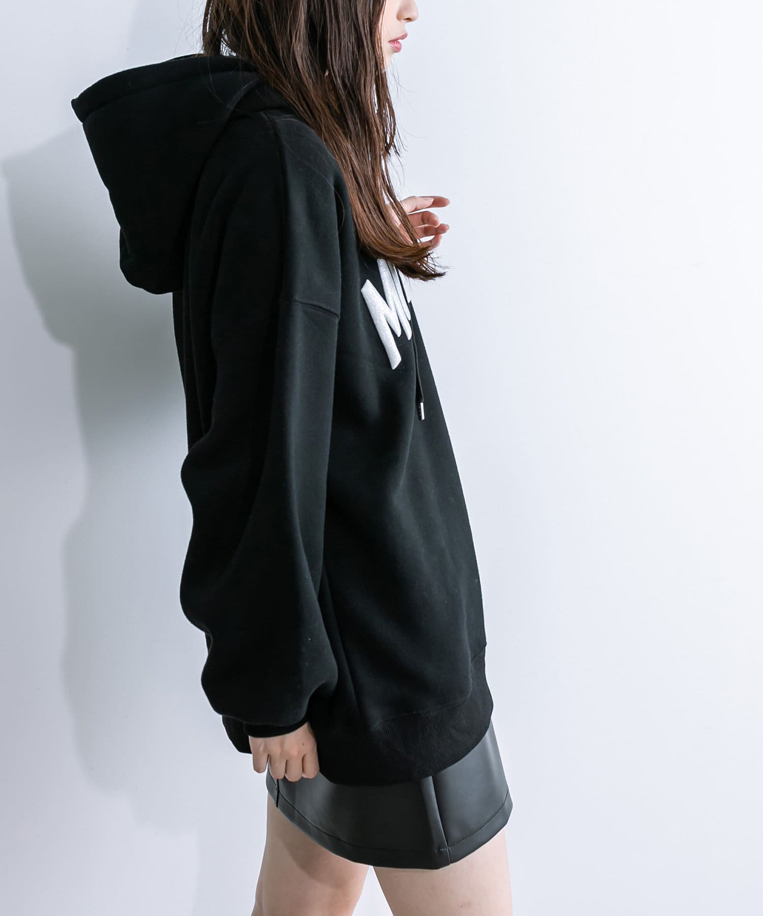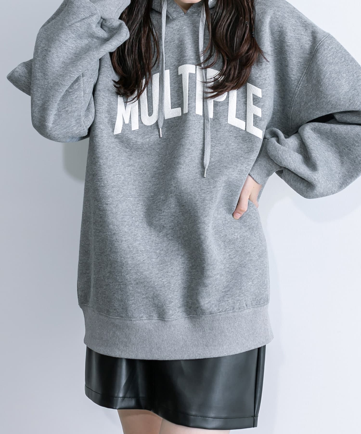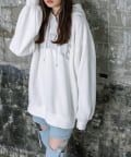 ラメロゴが目を惹くチュニックパーカー