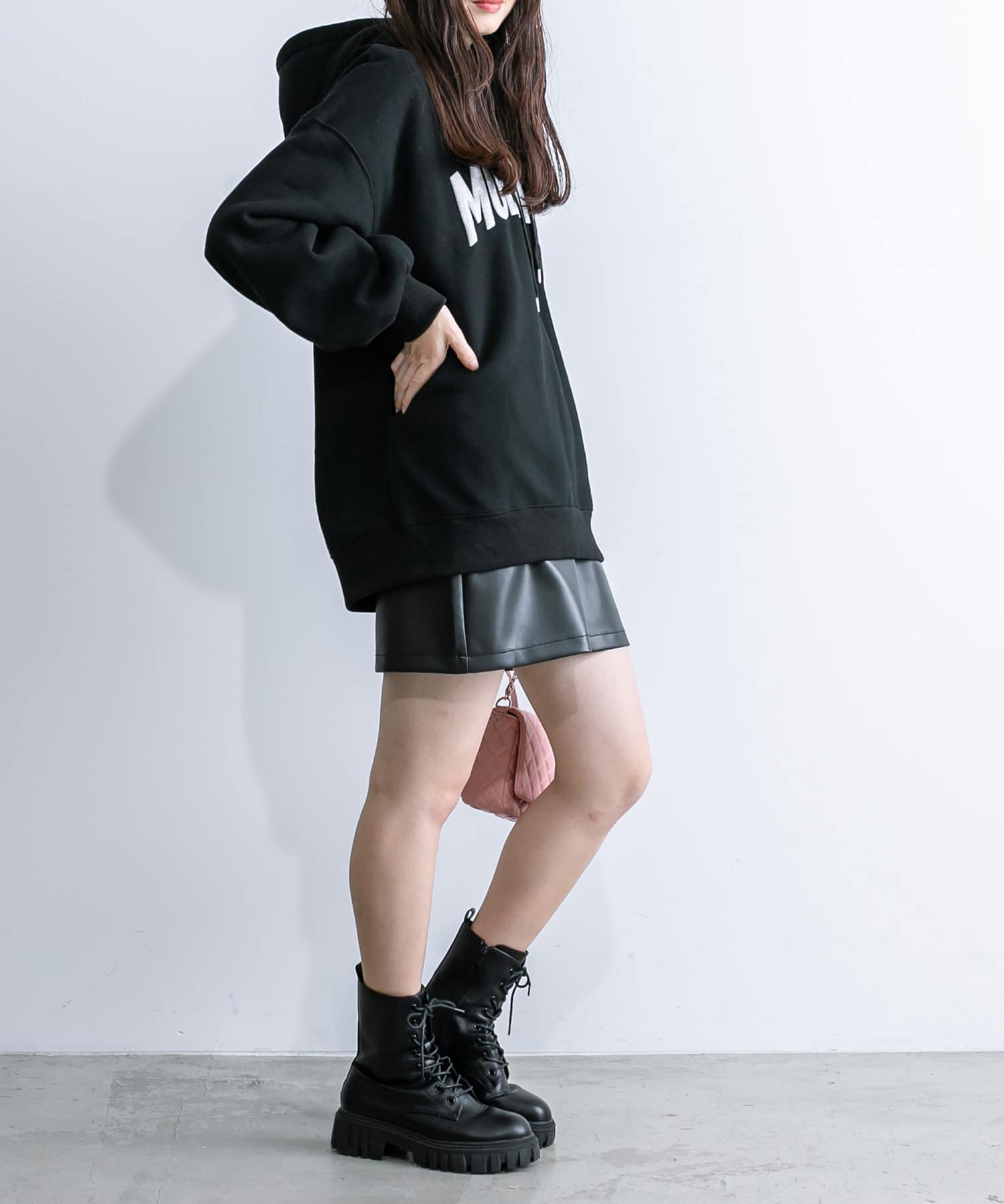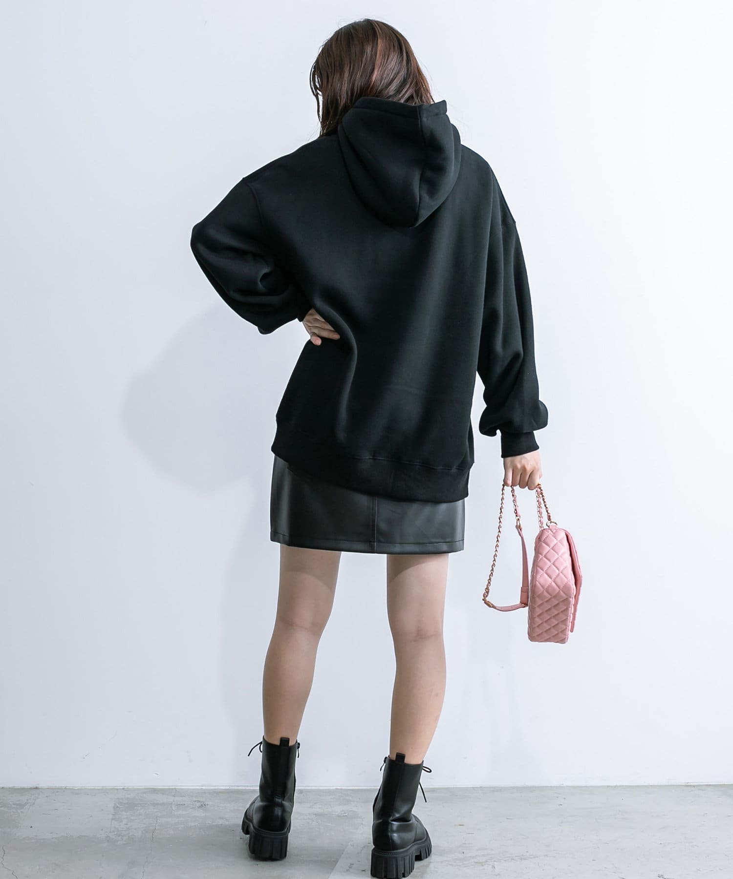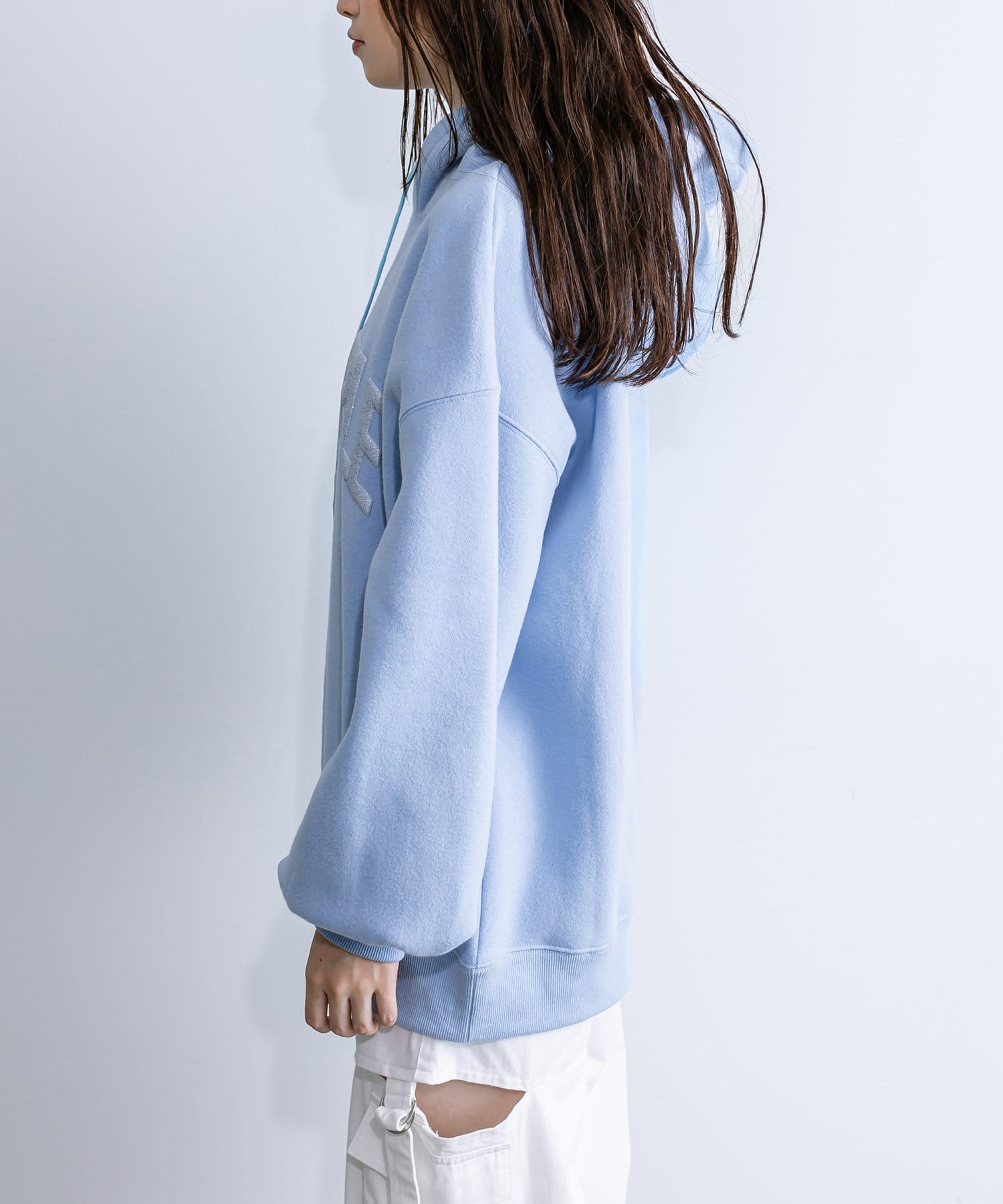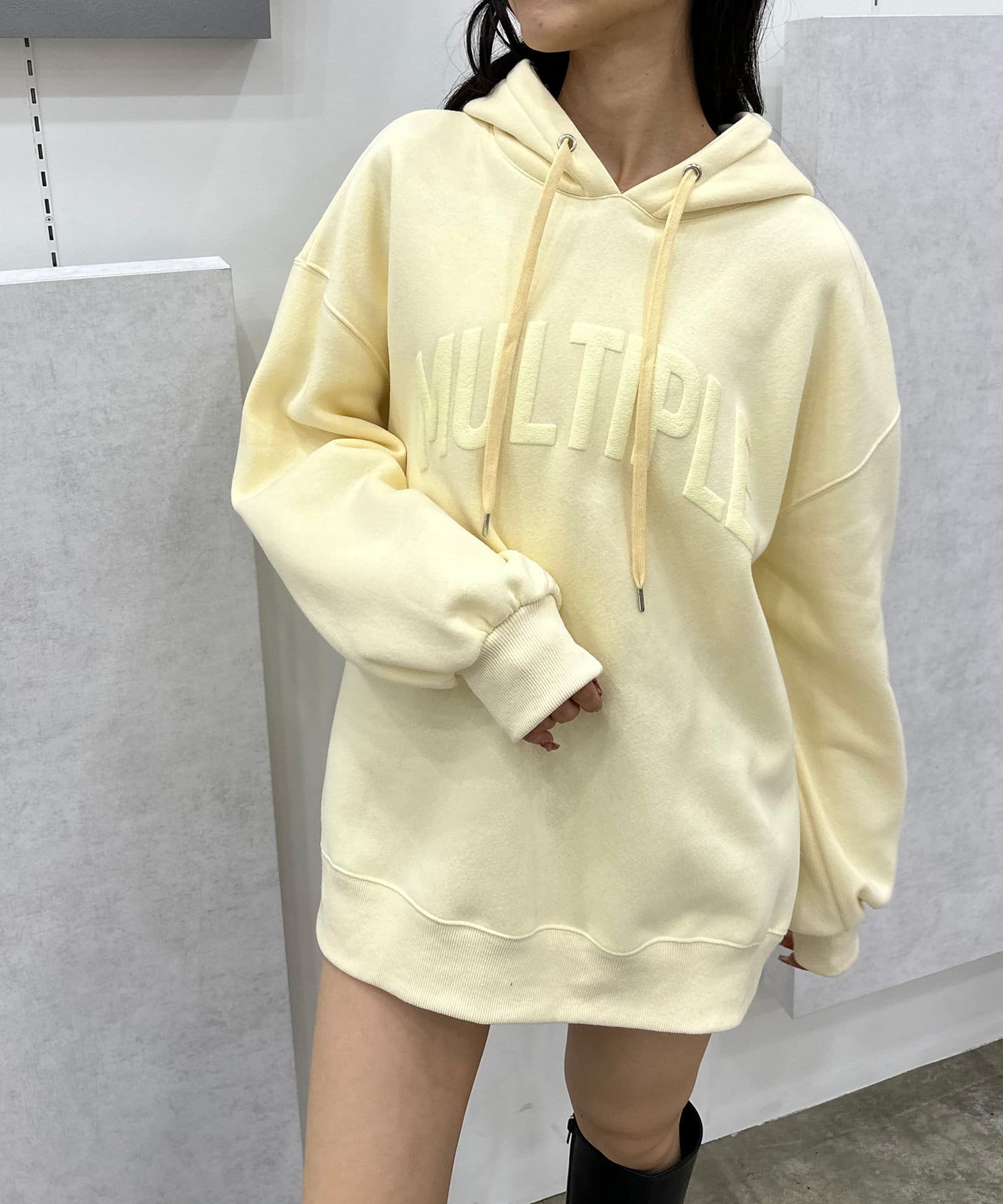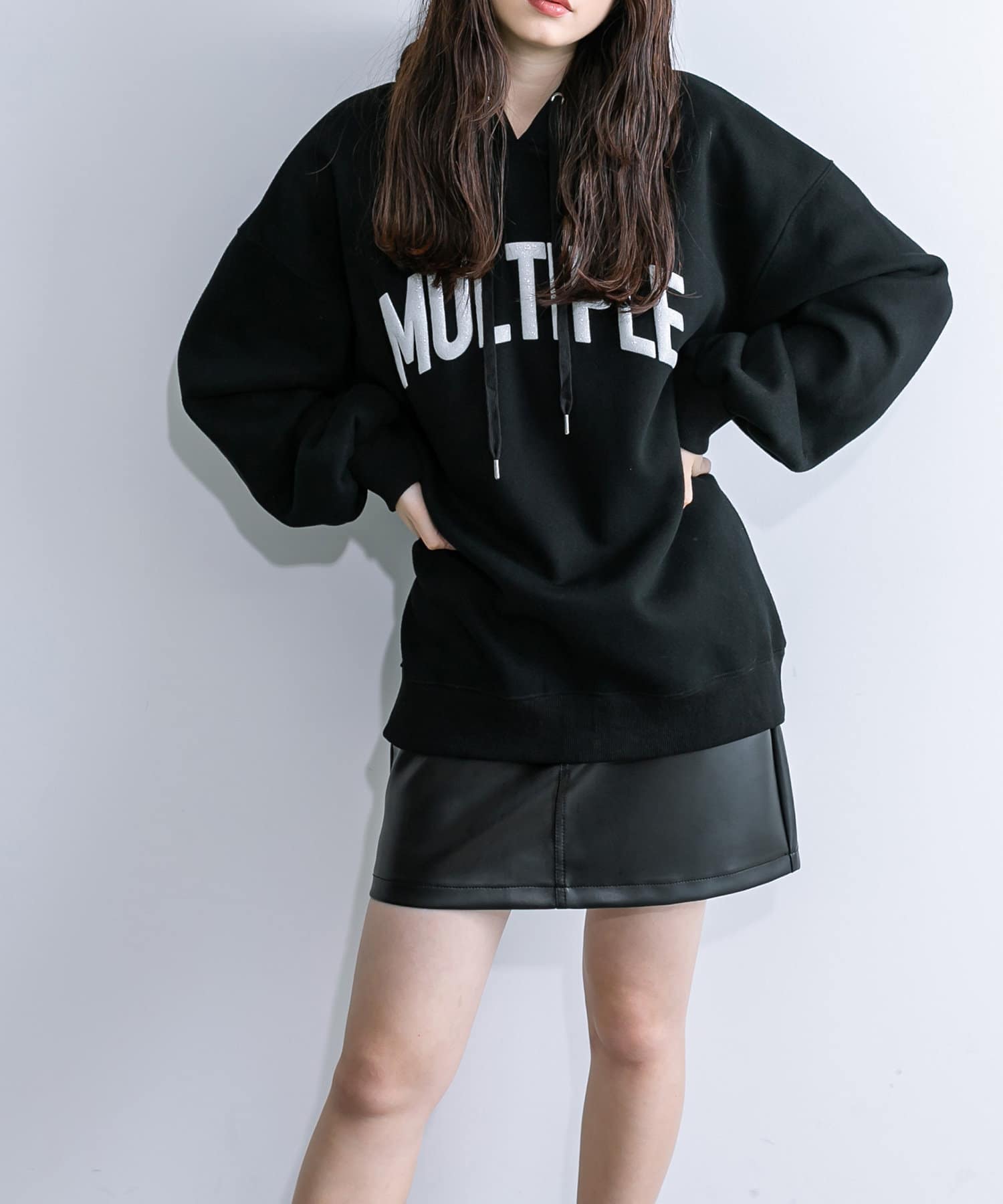 ラメロゴが目を惹くチュニックパーカー