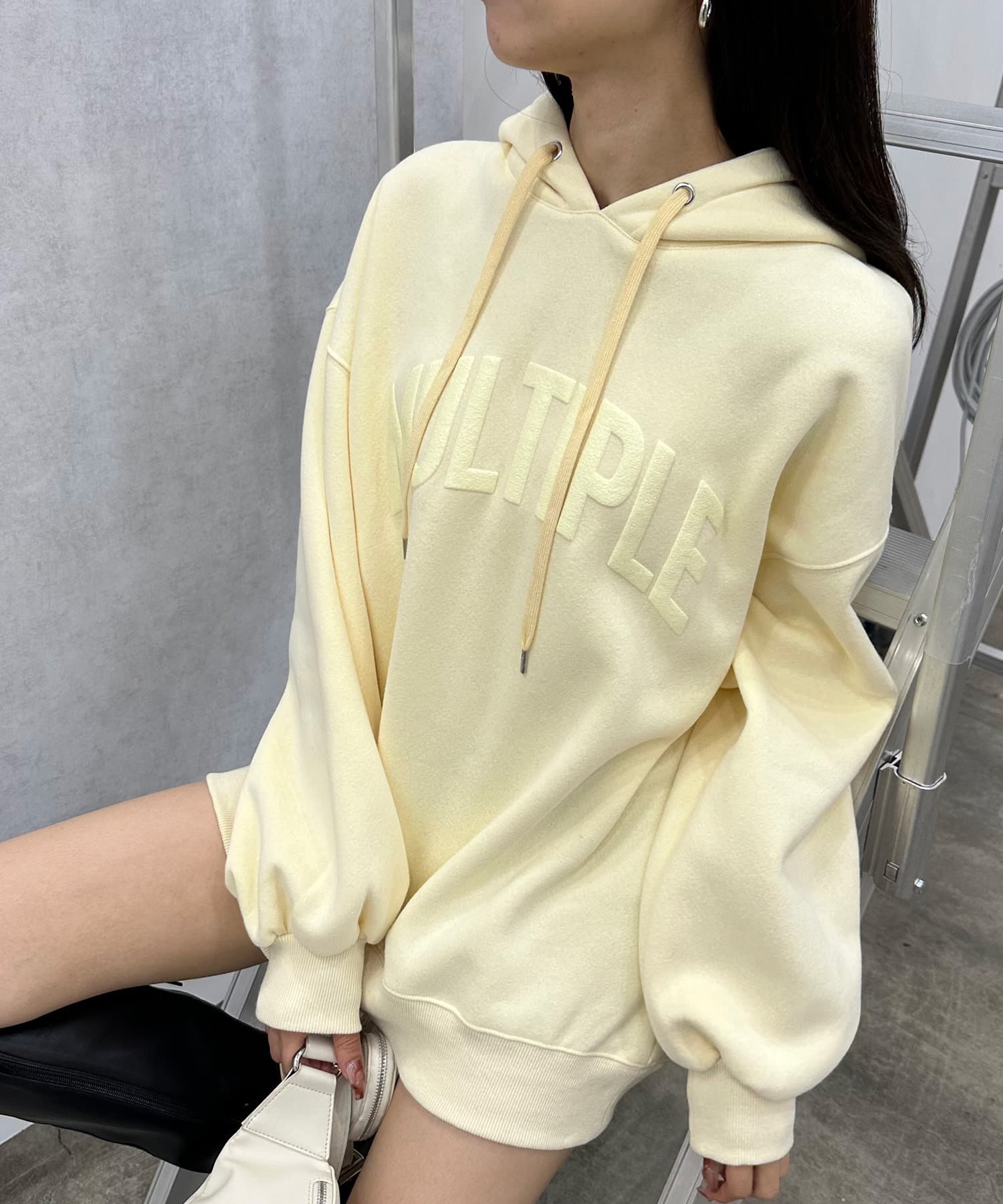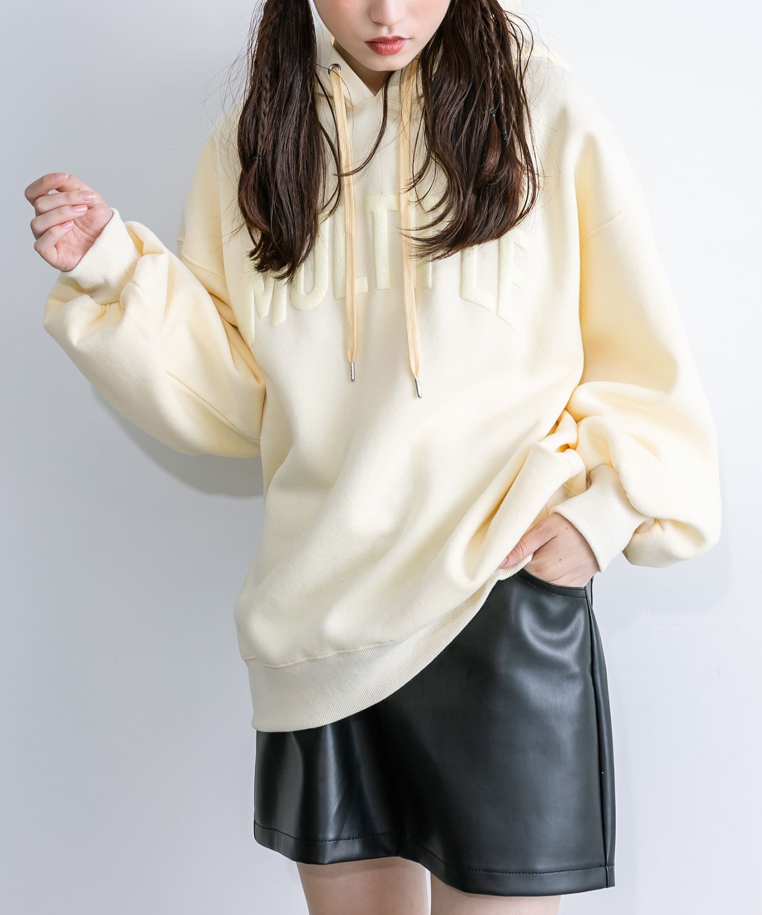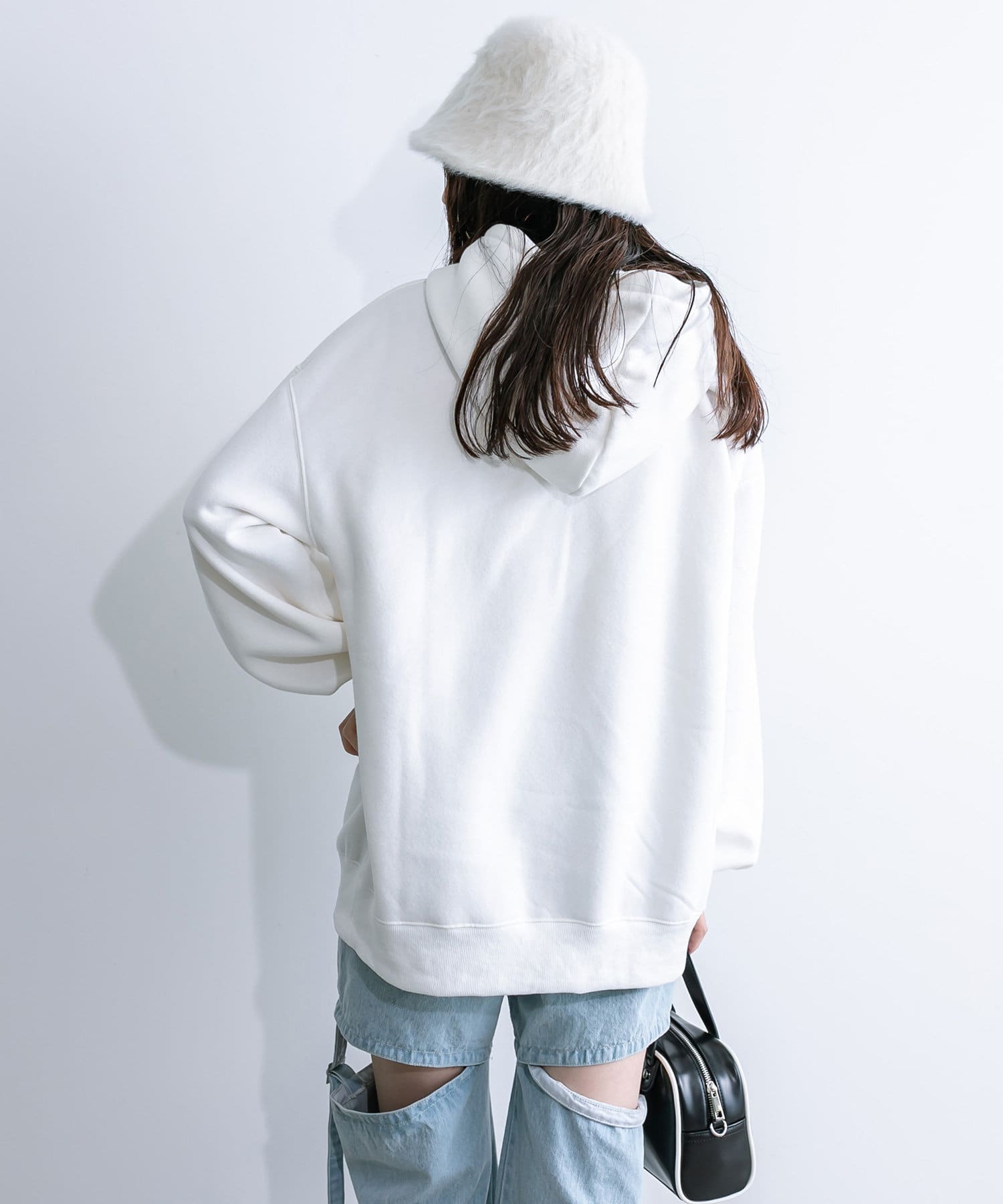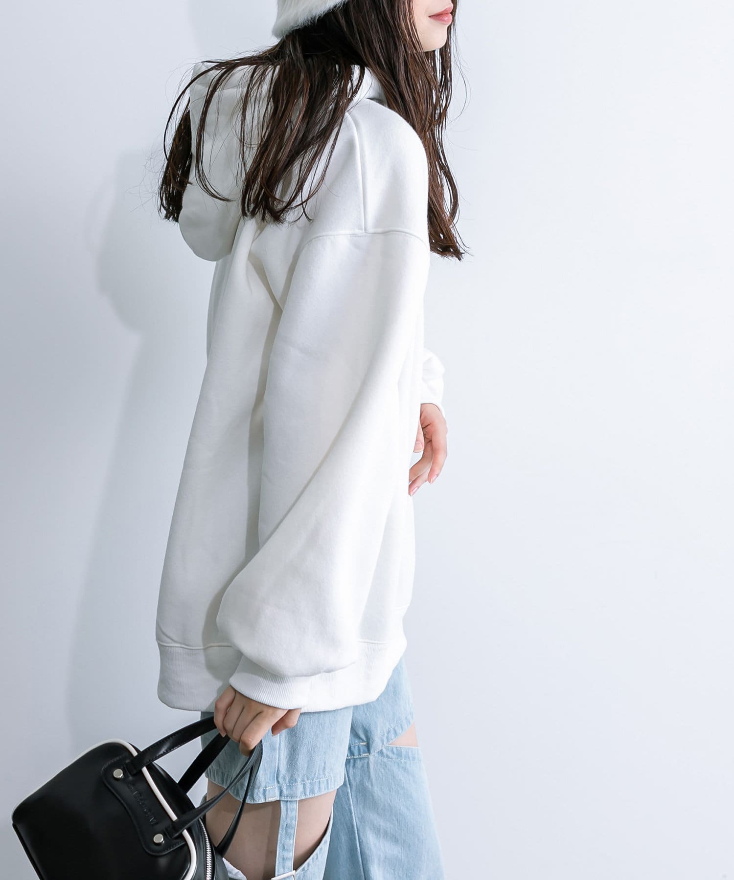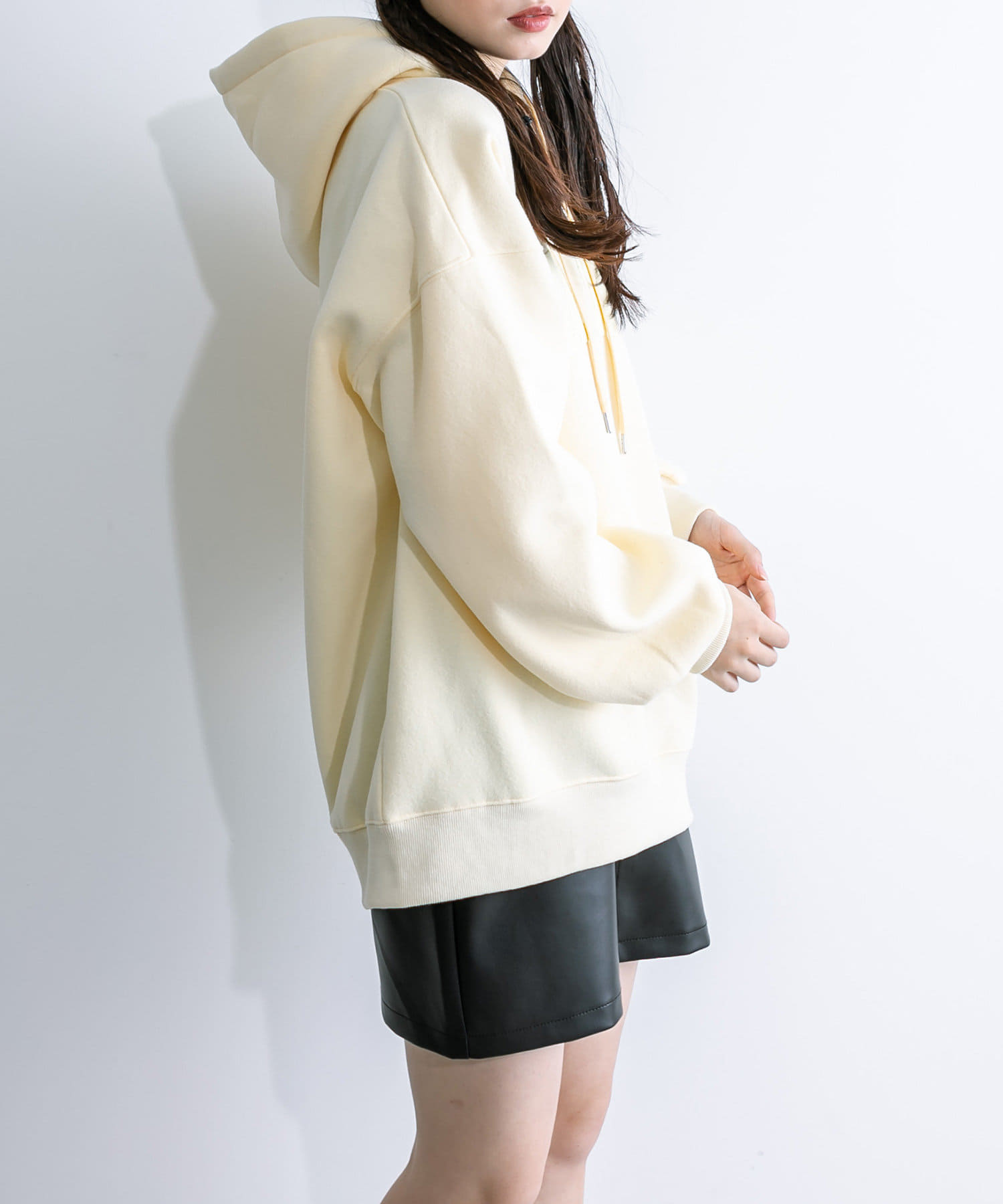 ・アウターからフーディを出して着るのがおすすめです。