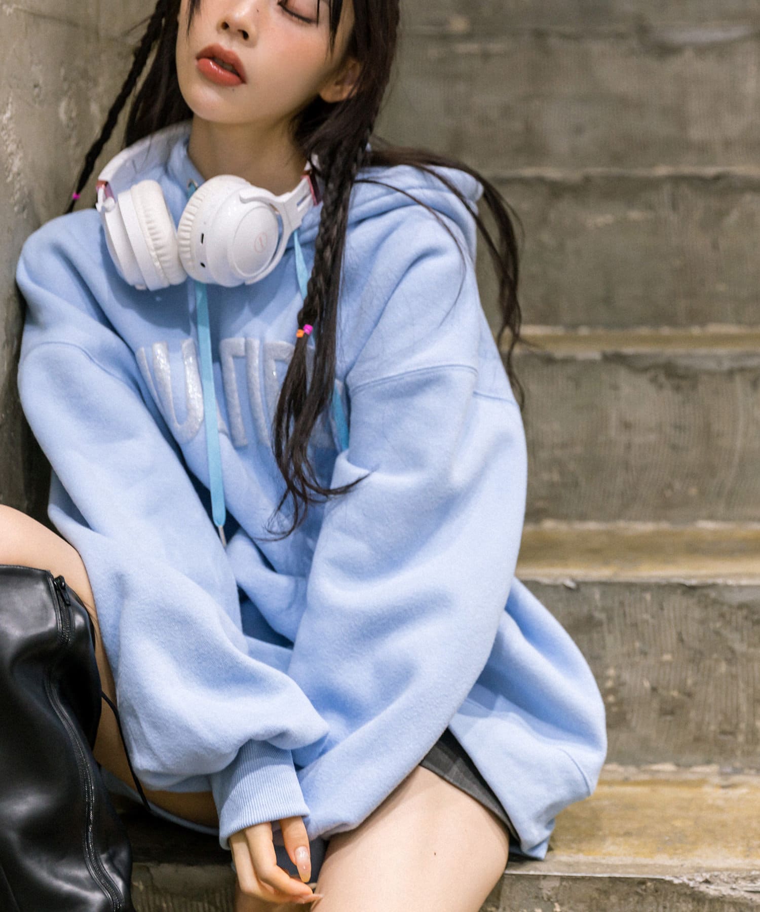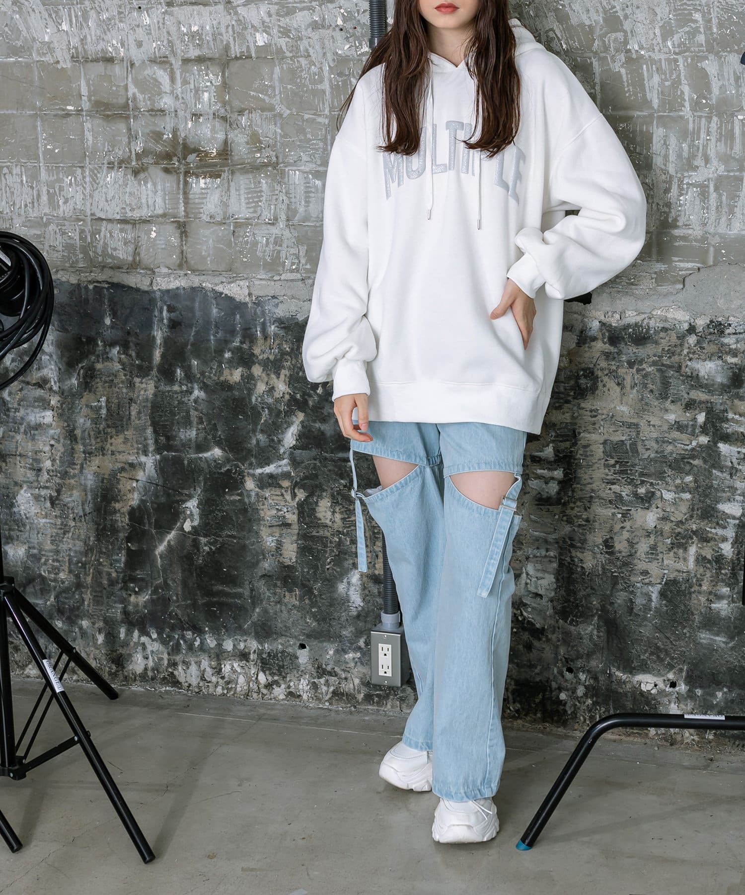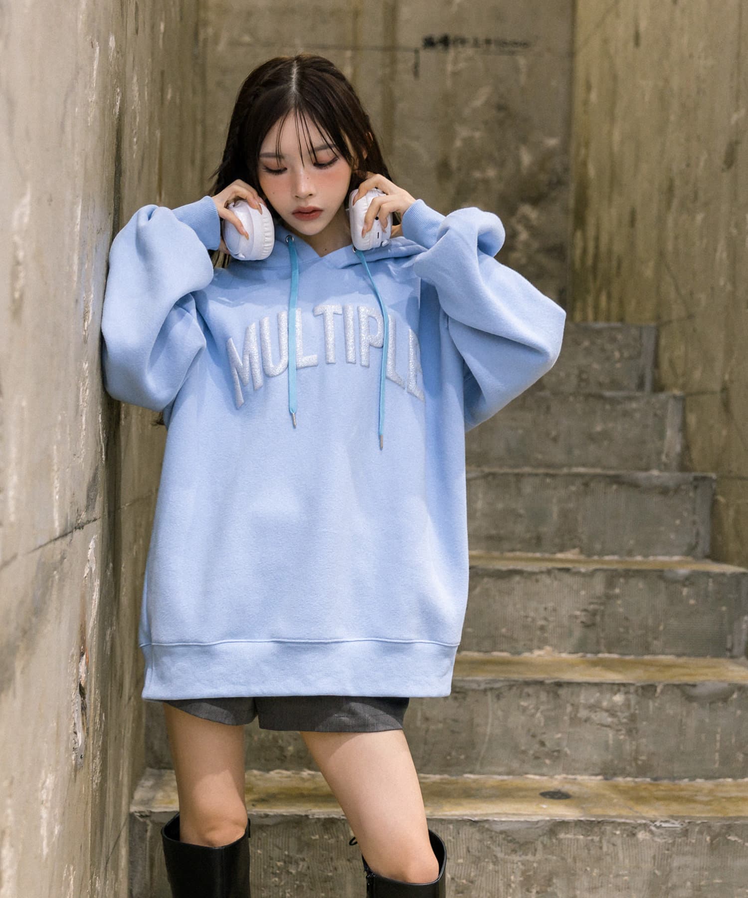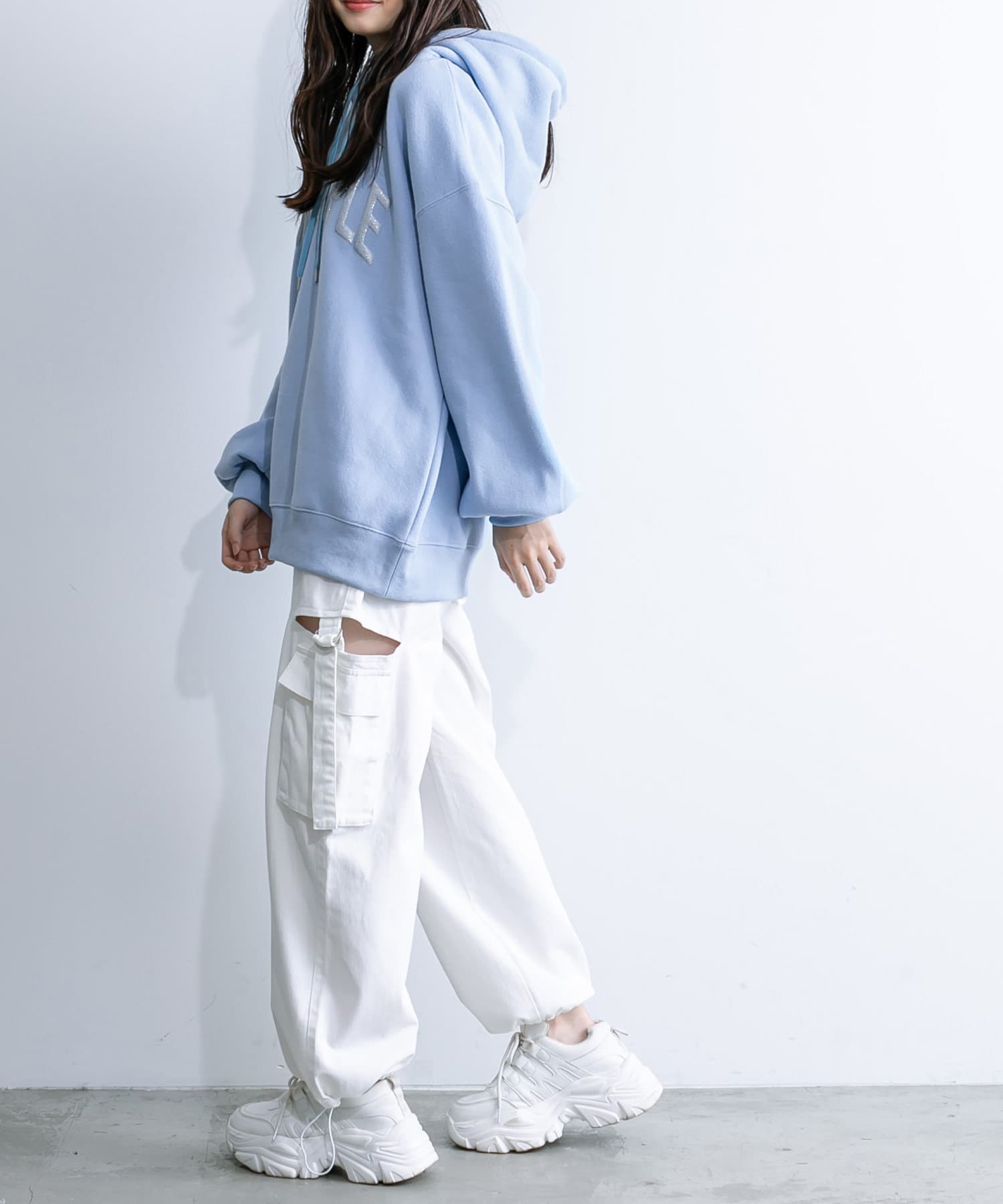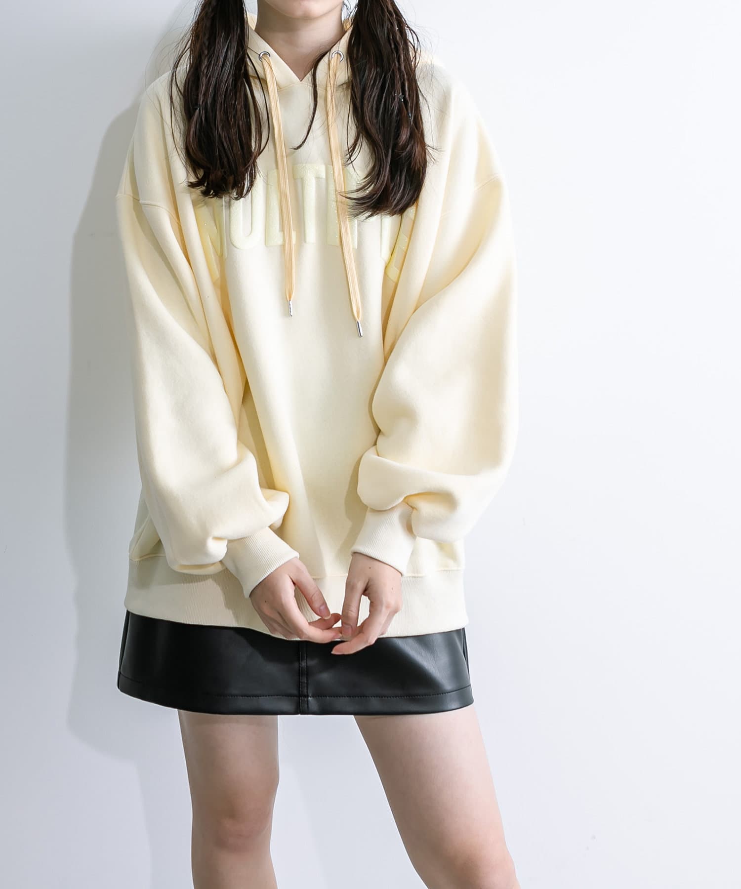 ・アウターからフーディを出して着るのがおすすめです。