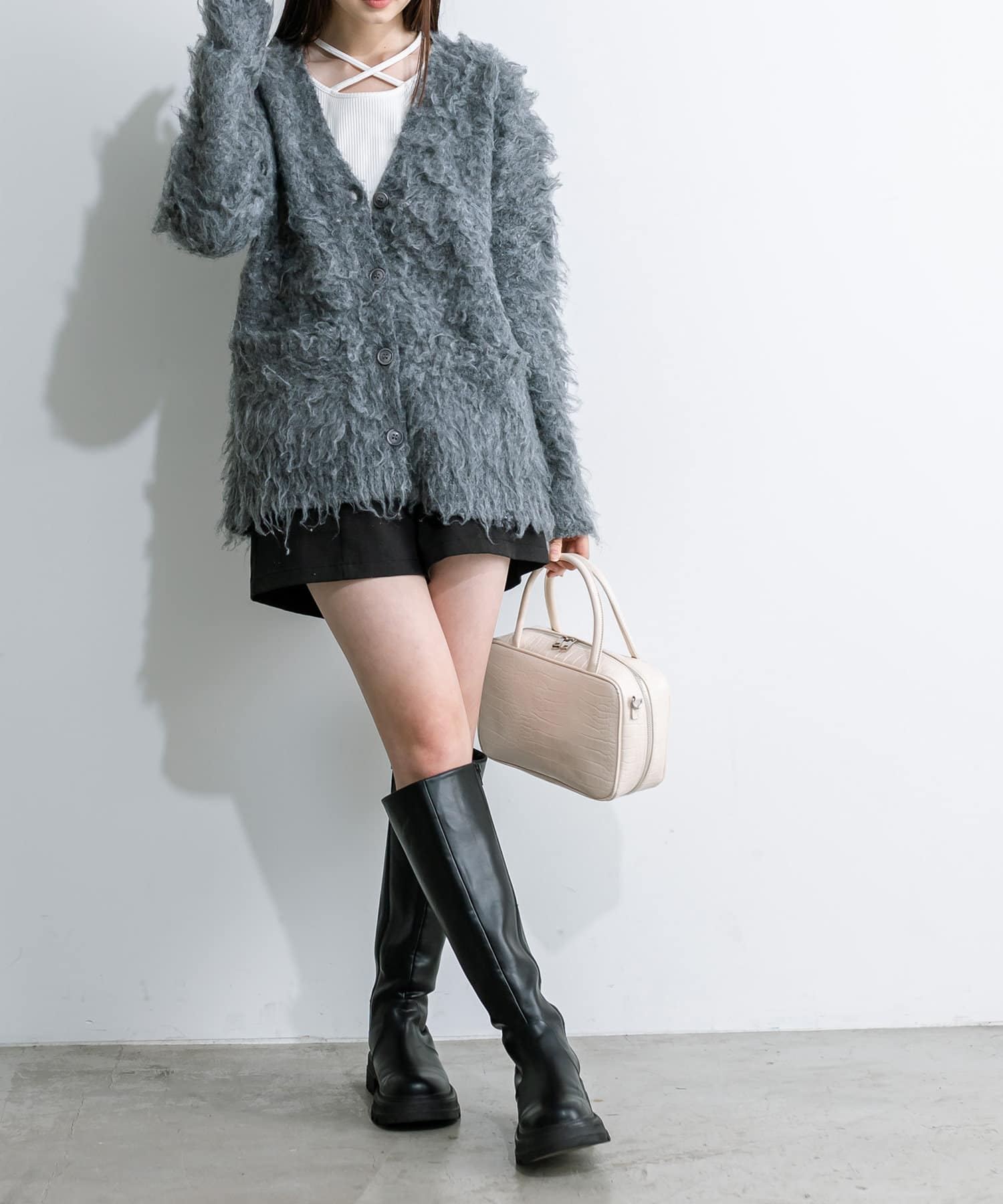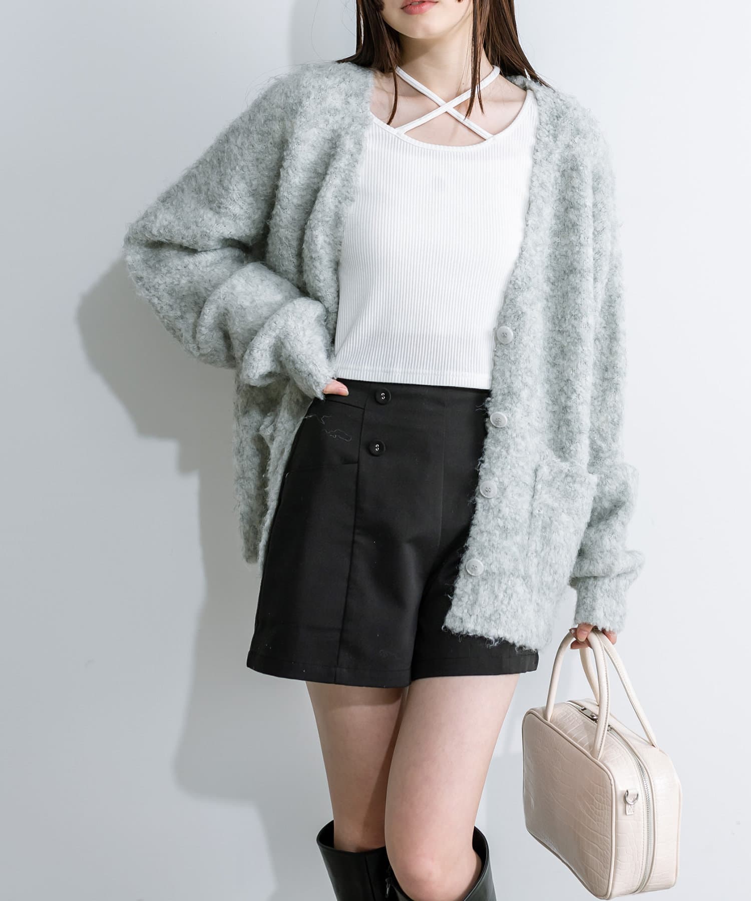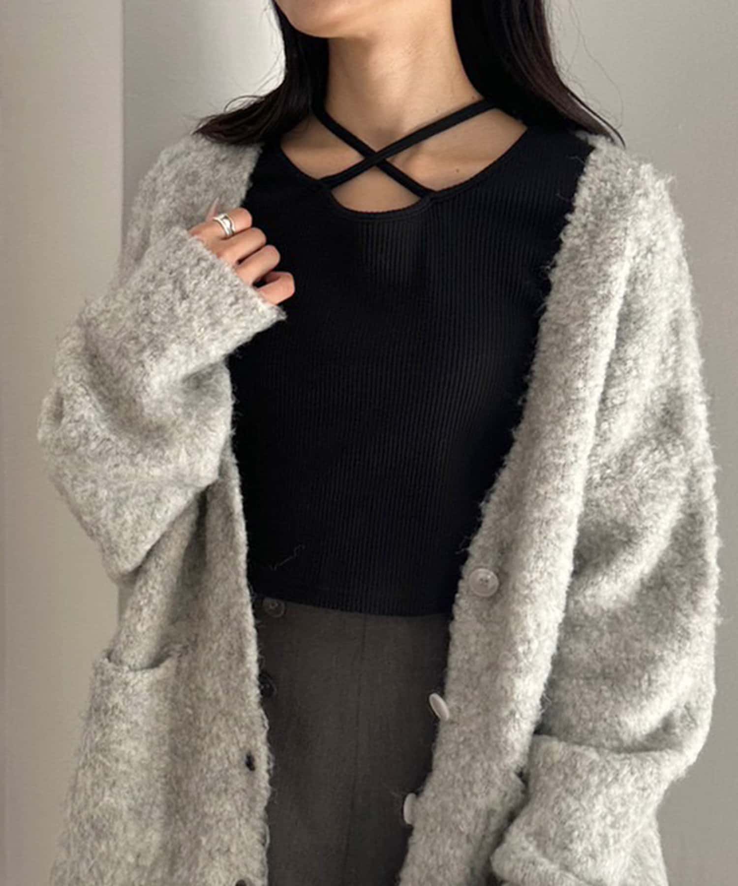 ・秋冬はトレンドの起毛カーディガンやビッグシルエットのアウターと合わせるのが一押し。