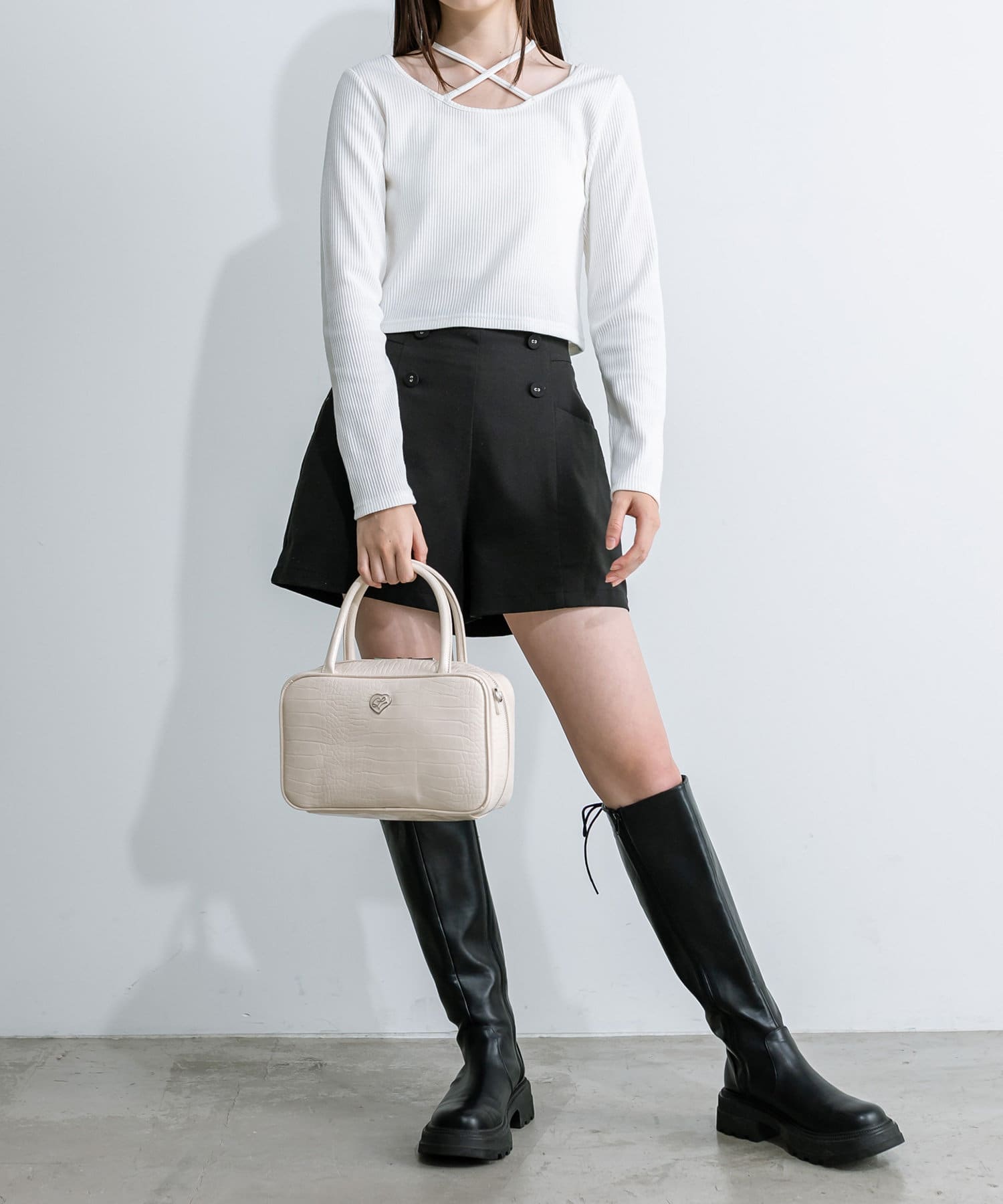 ・シンプルなデザインなのでミニボトムやカーゴパンツなど幅広く合わせていただけます。