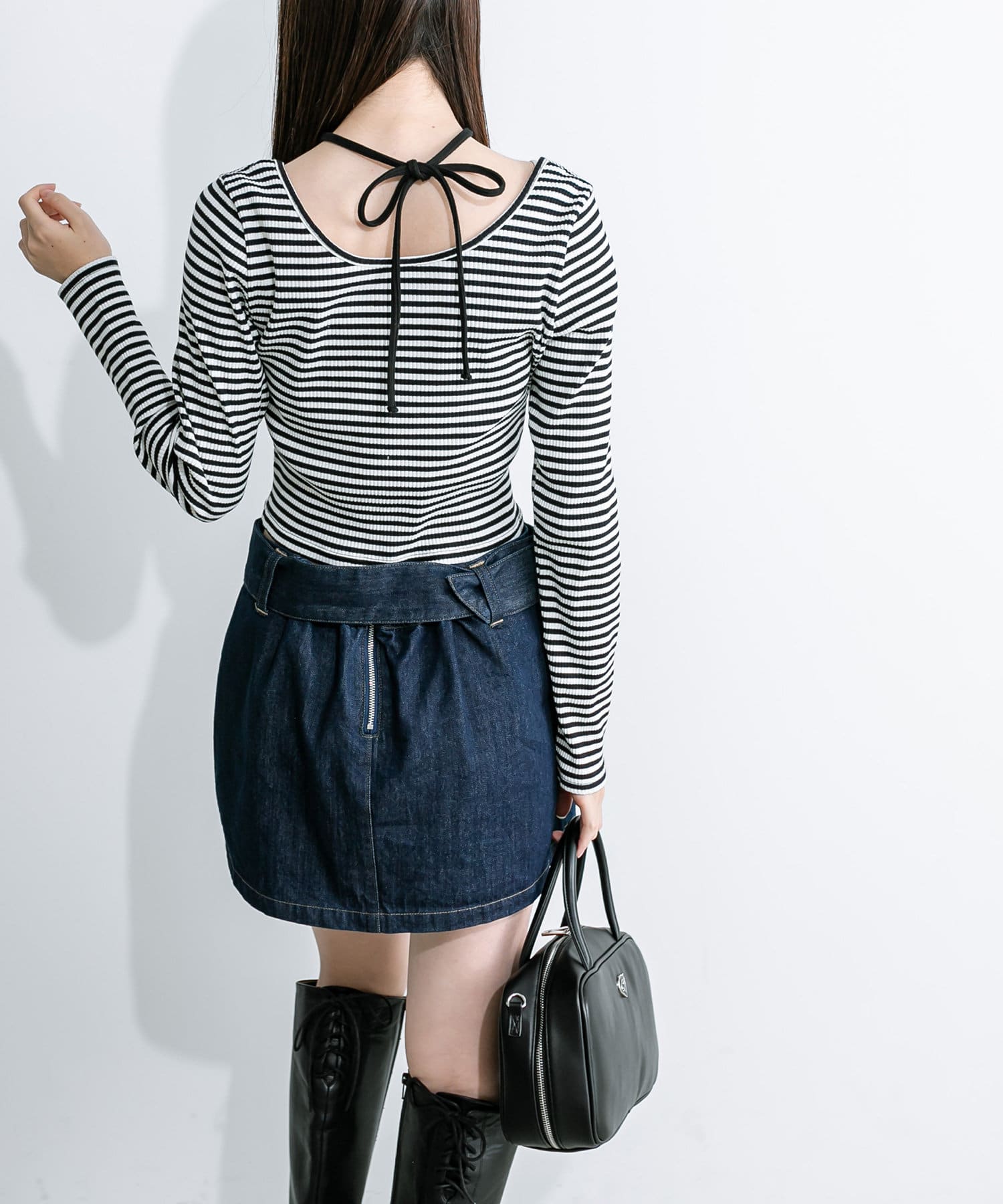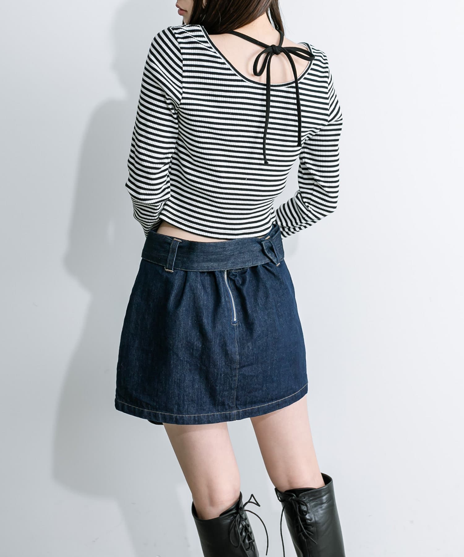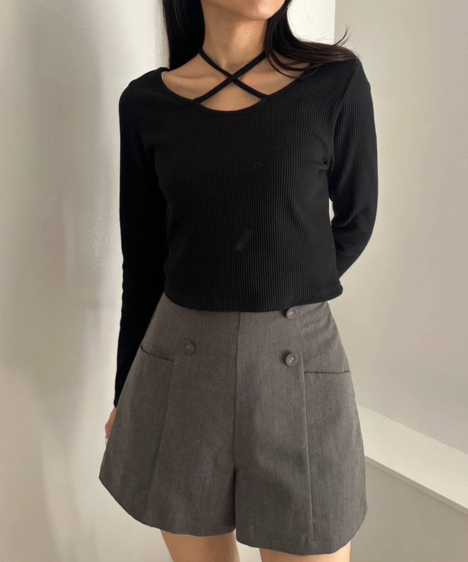 ・首元のリボンは、前でクロスさせて後ろで結んだり、後ろで結ぶだけでもホルターネックになり可愛いです。