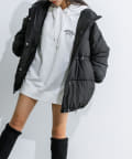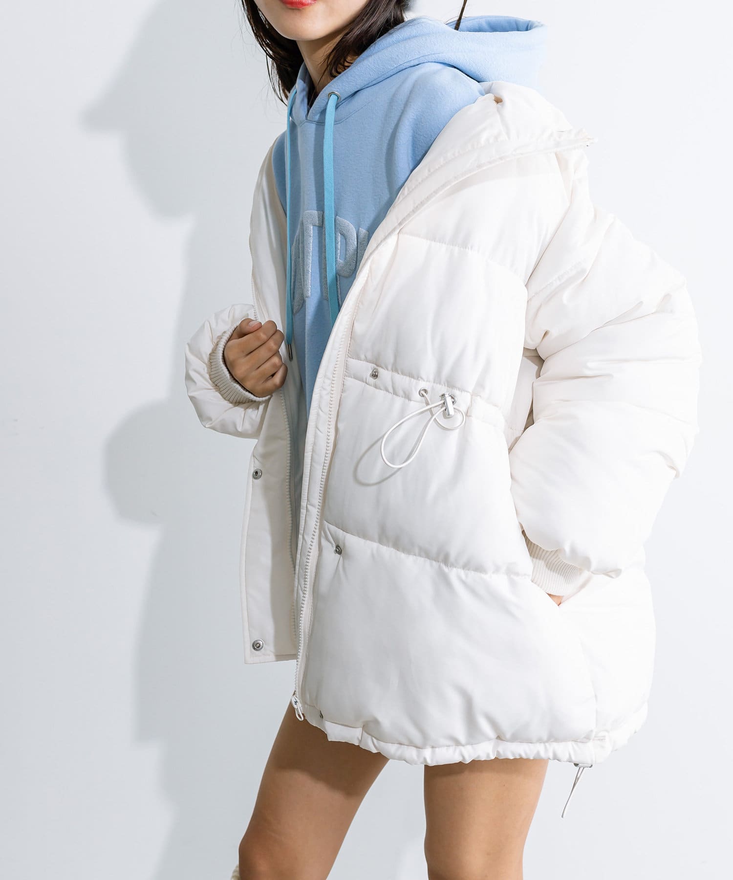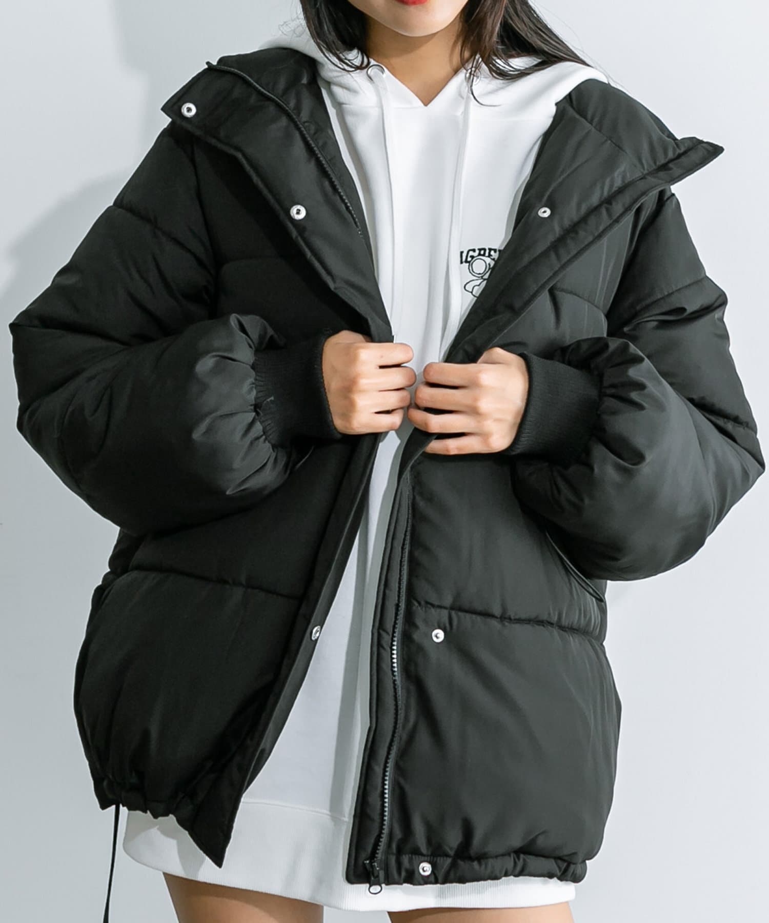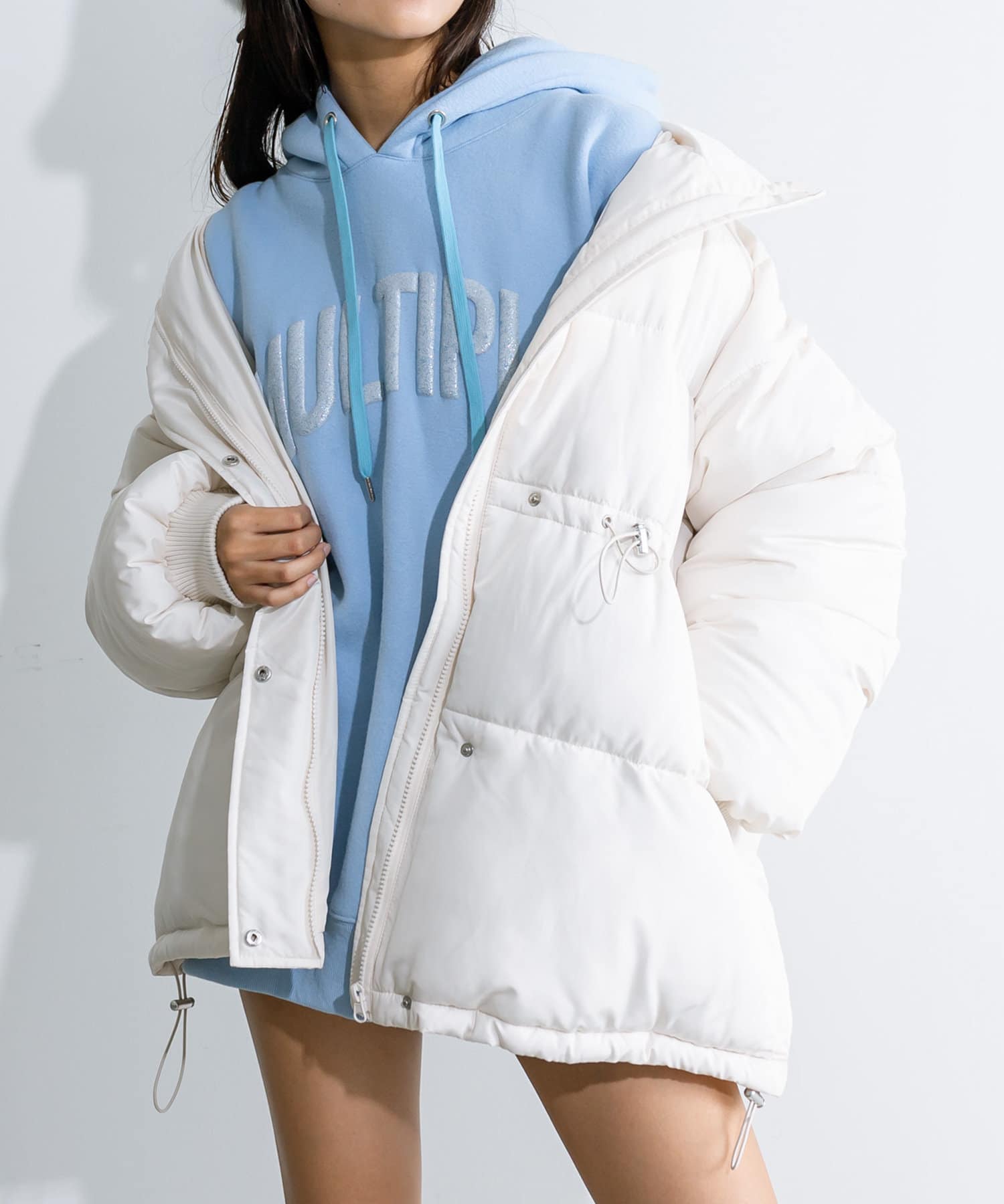 ・お尻まで隠れてすっぽり防寒できる中綿ブルゾン。