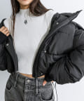 ・どんなスタイリングにも合わせやすい丈で、毎日のコーデに最適な中綿ブルゾン。