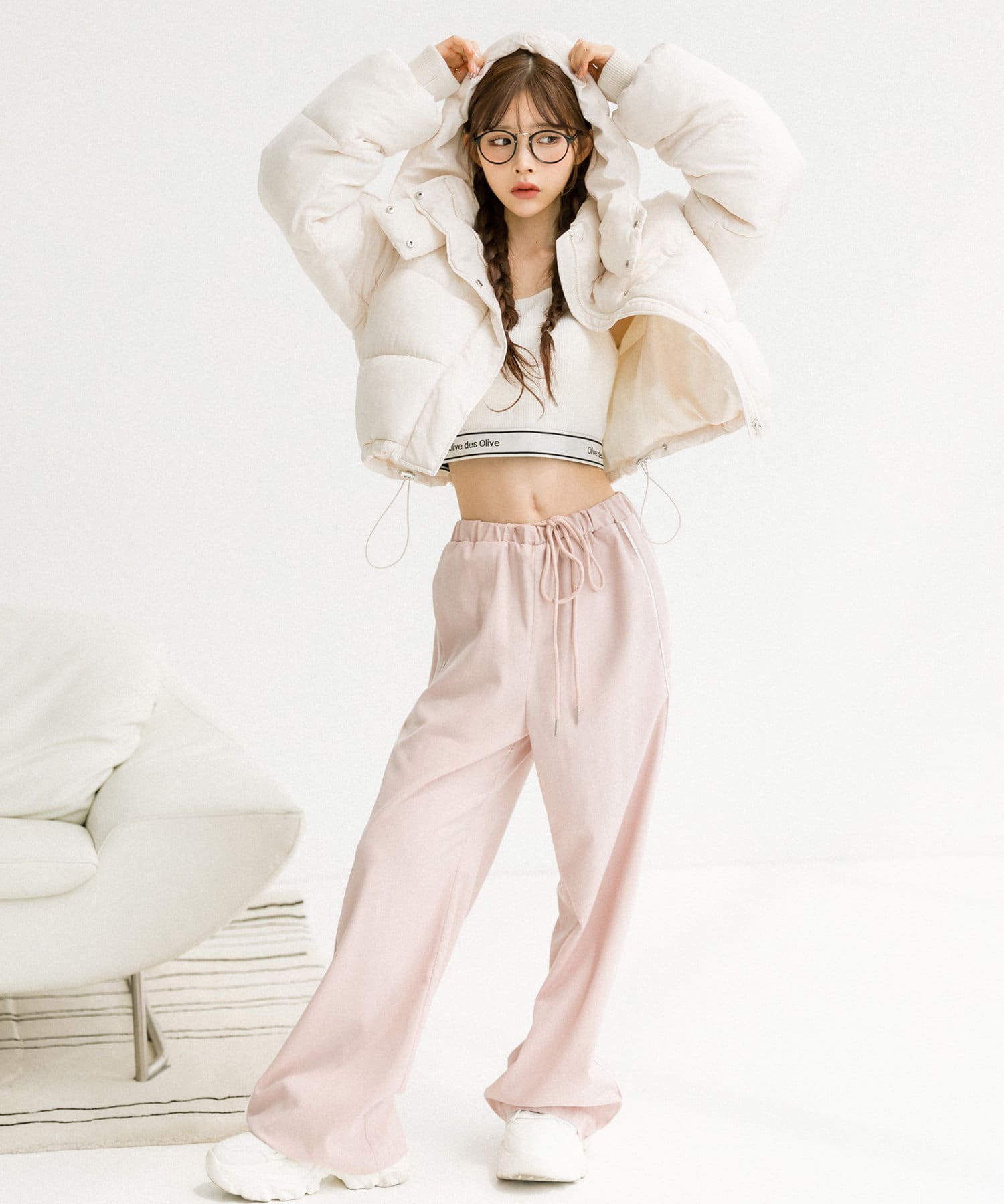 ・ウエストとゴム入り。ドローコードでシルエットの調節ができきます。