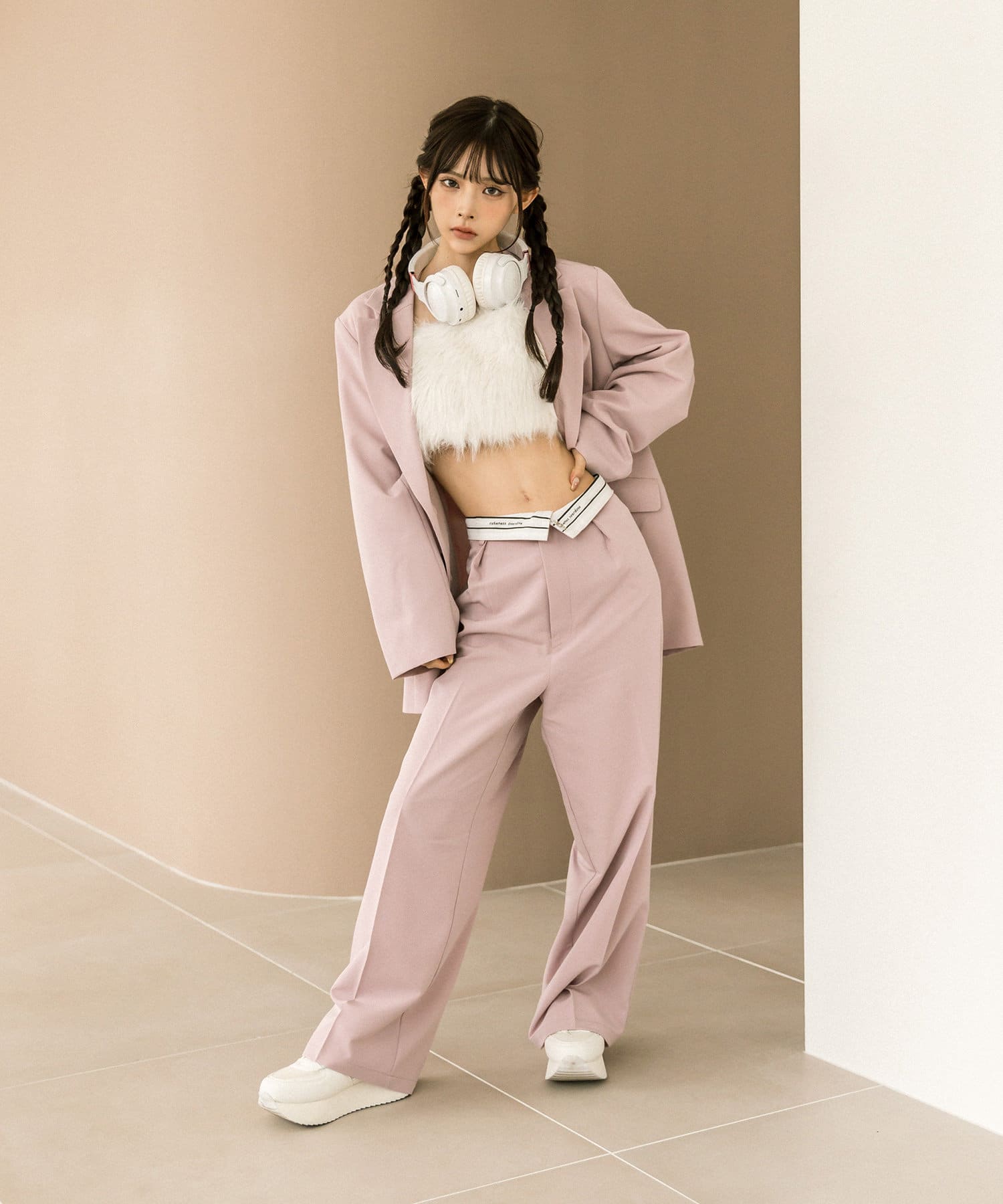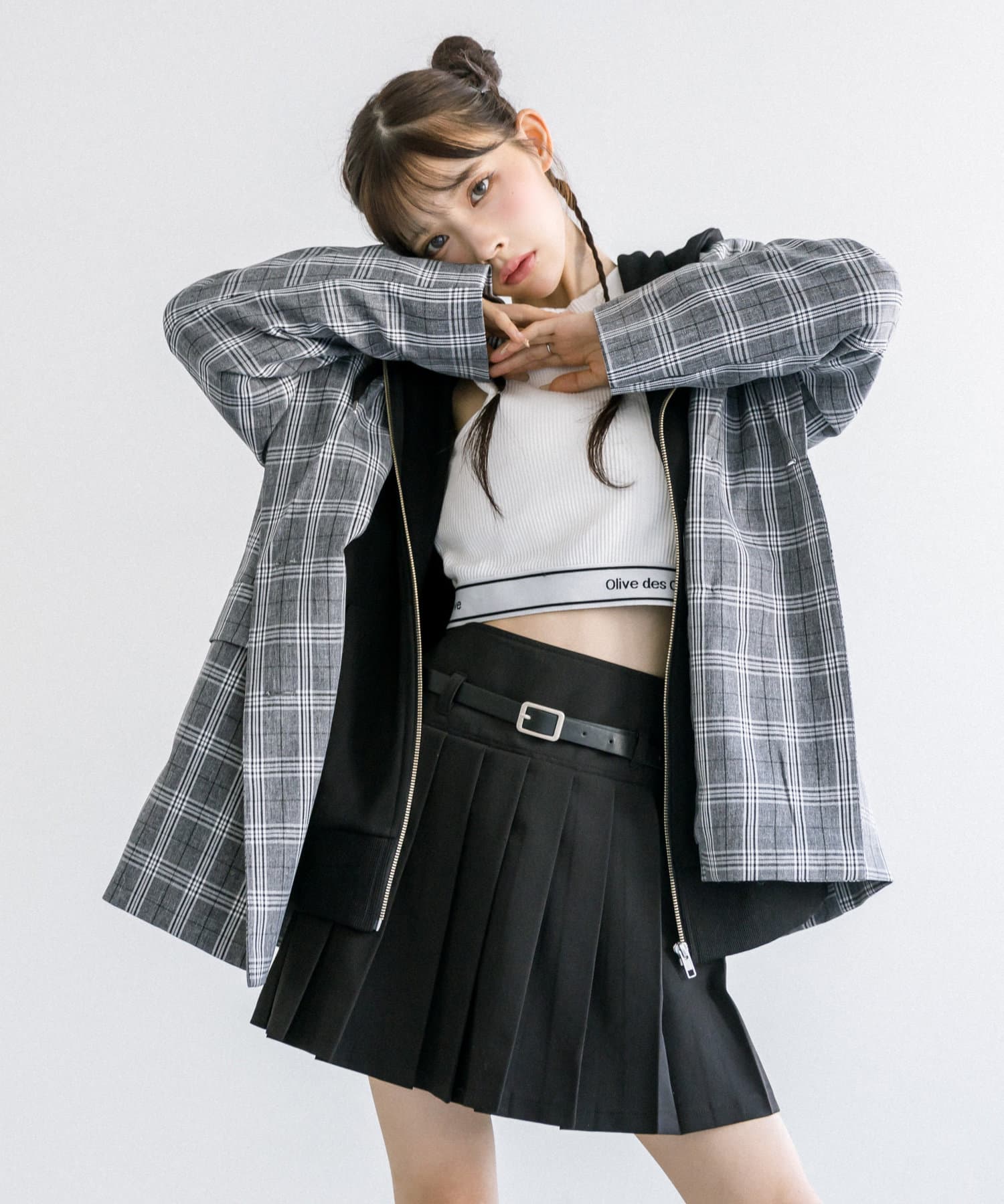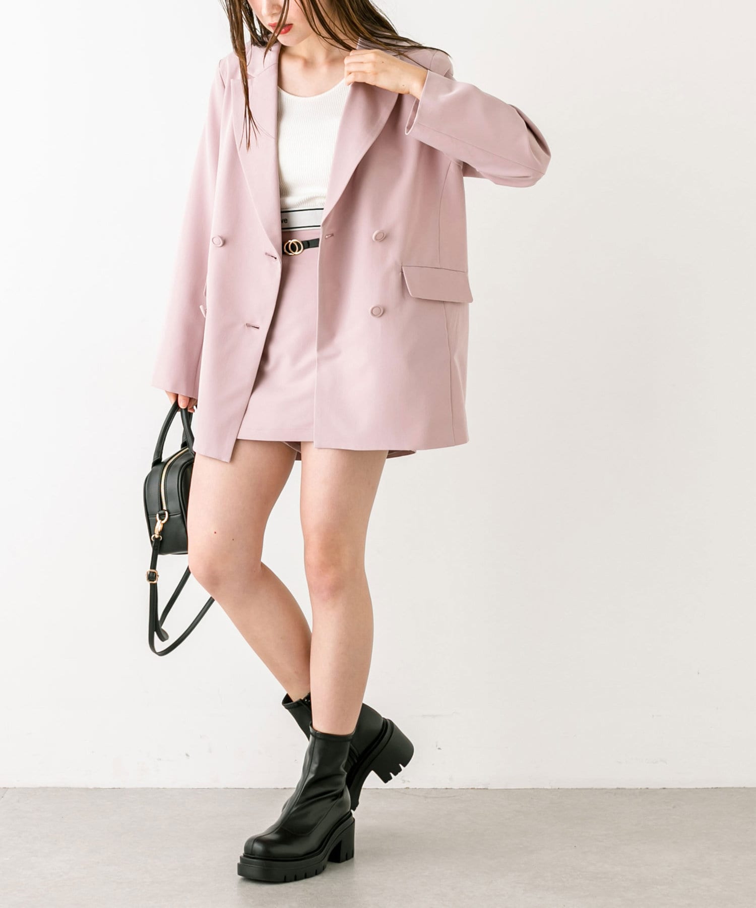 ・ベルト付きタイトミニスカート(品番: 1032010050)と着用していただくと、トレンドのセットアップコーデに。