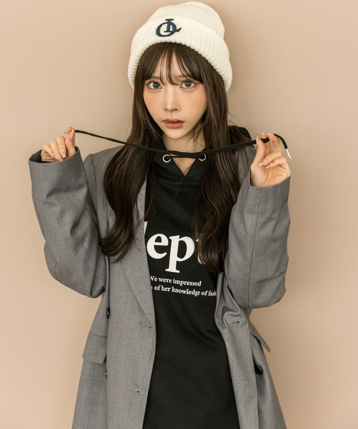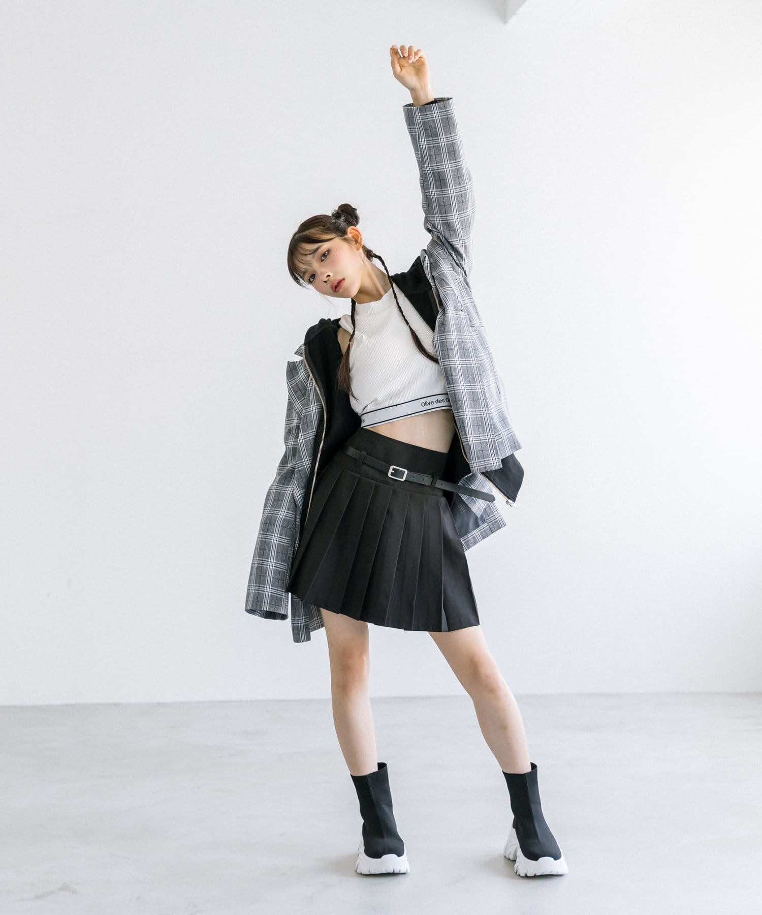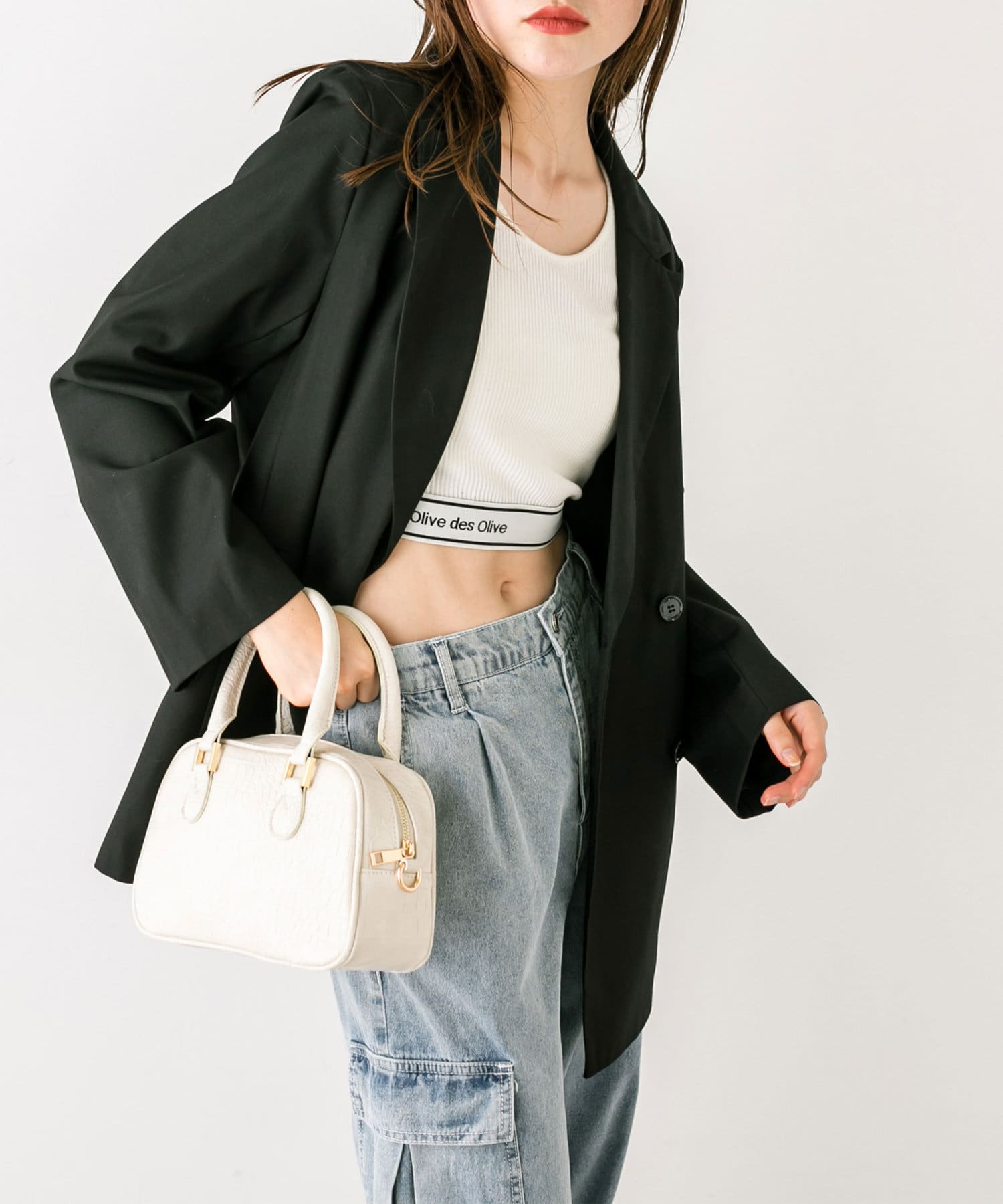 ・ベルト付きタイトミニスカート(品番: 1032010050)と着用していただくと、トレンドのセットアップコーデに。