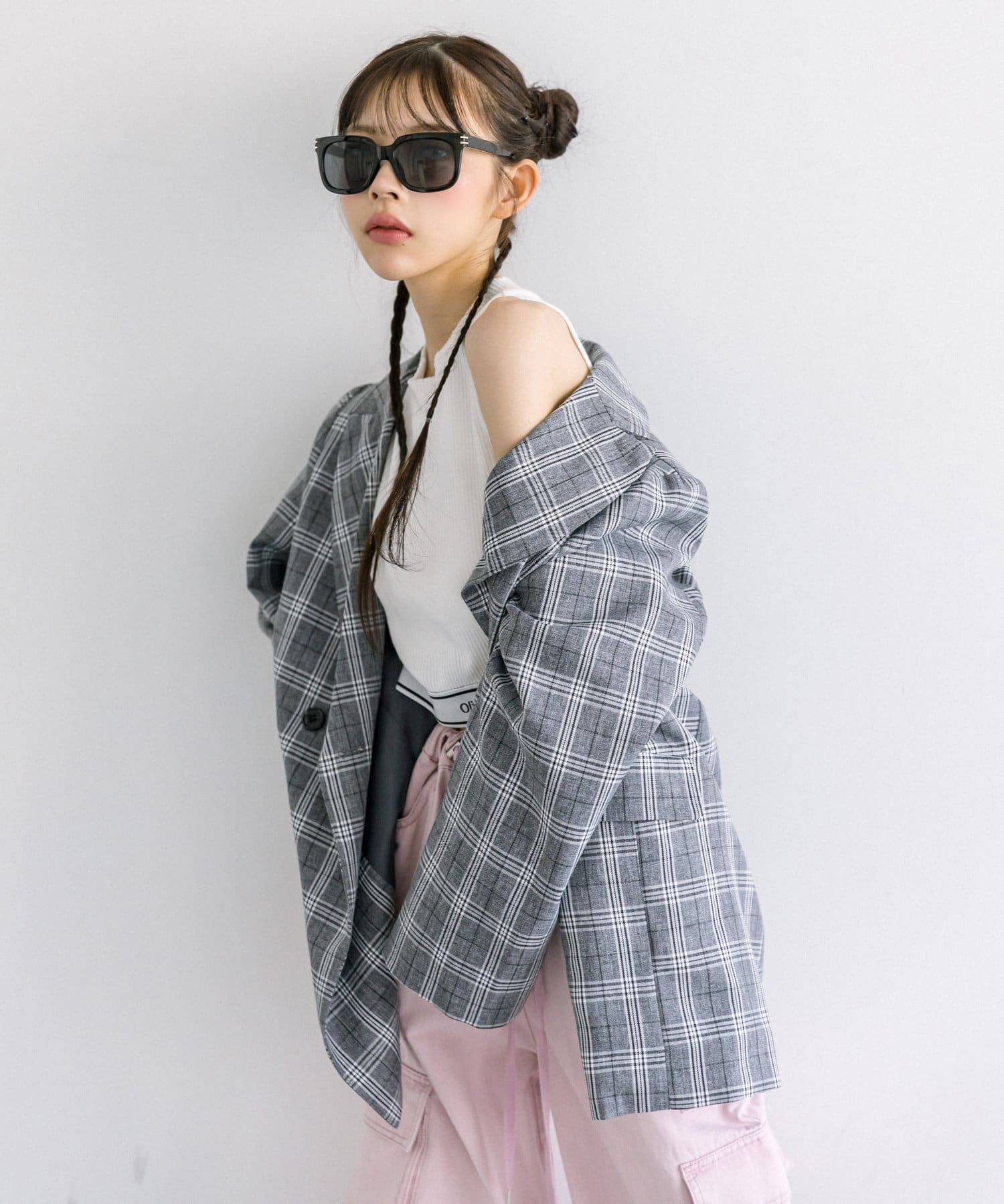 ・ピンク/ブラック/チャコール/チェックの4色展開