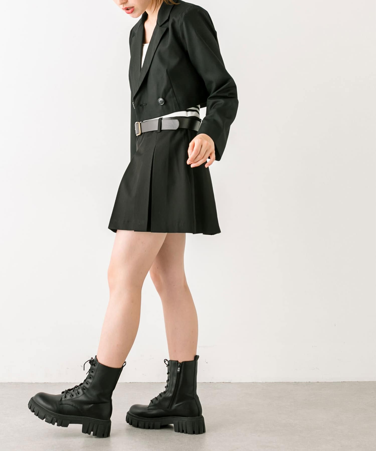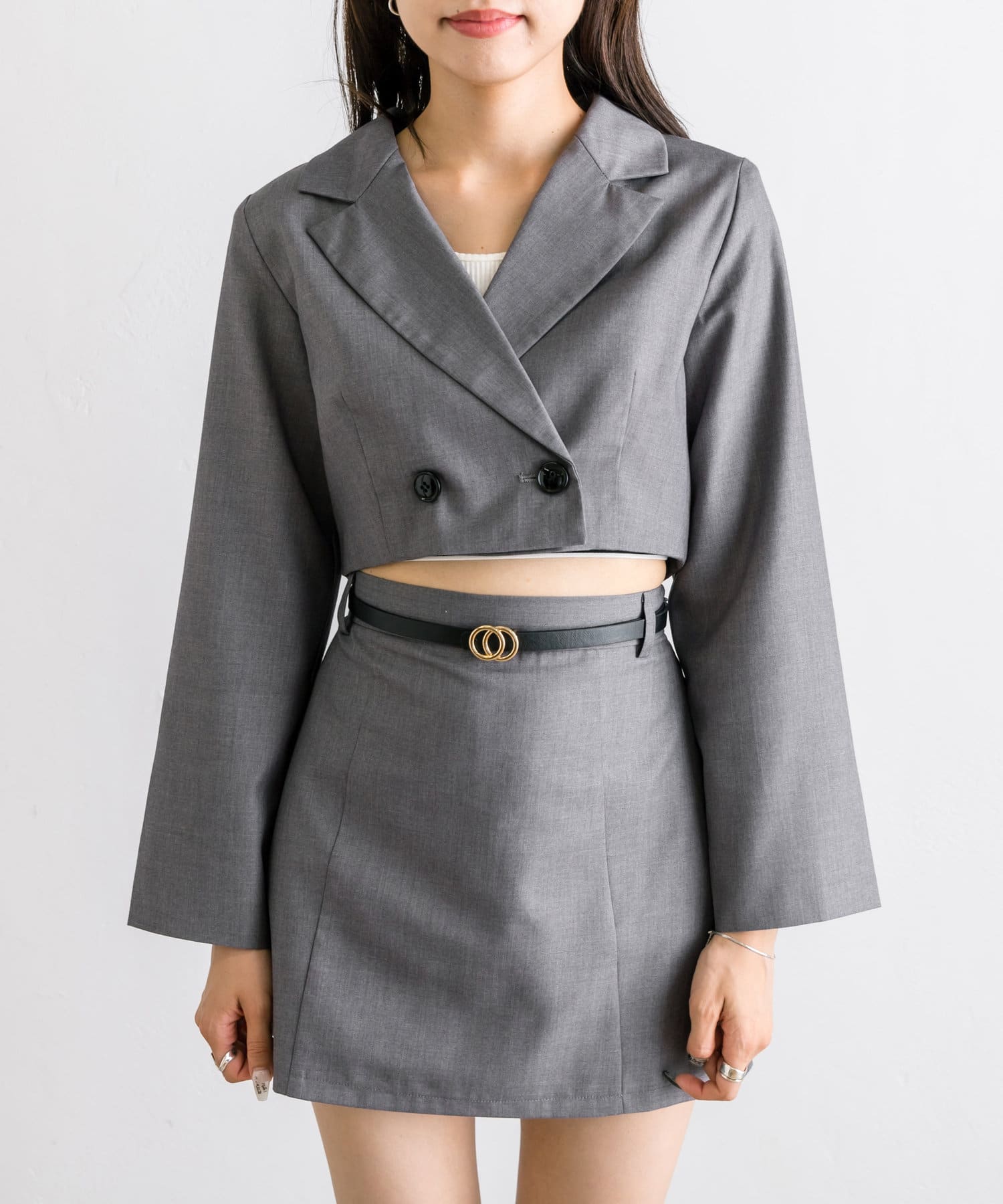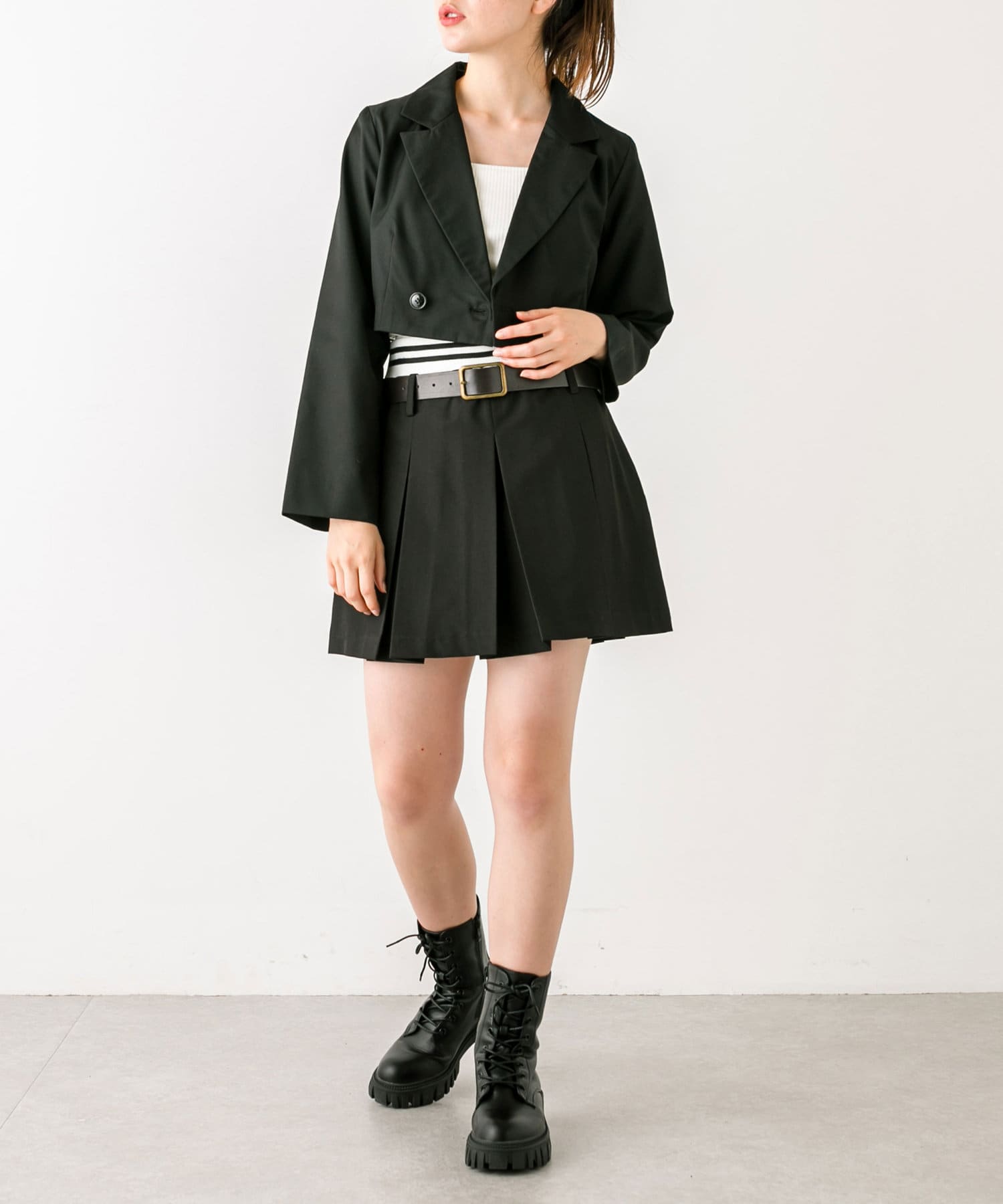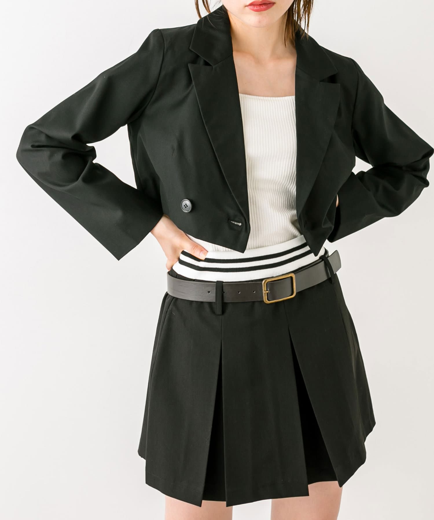 ・ベルト付きタイトミニスカート(品番: 1032010050)と着用していただくと、トレンドのセットアップコーデに。