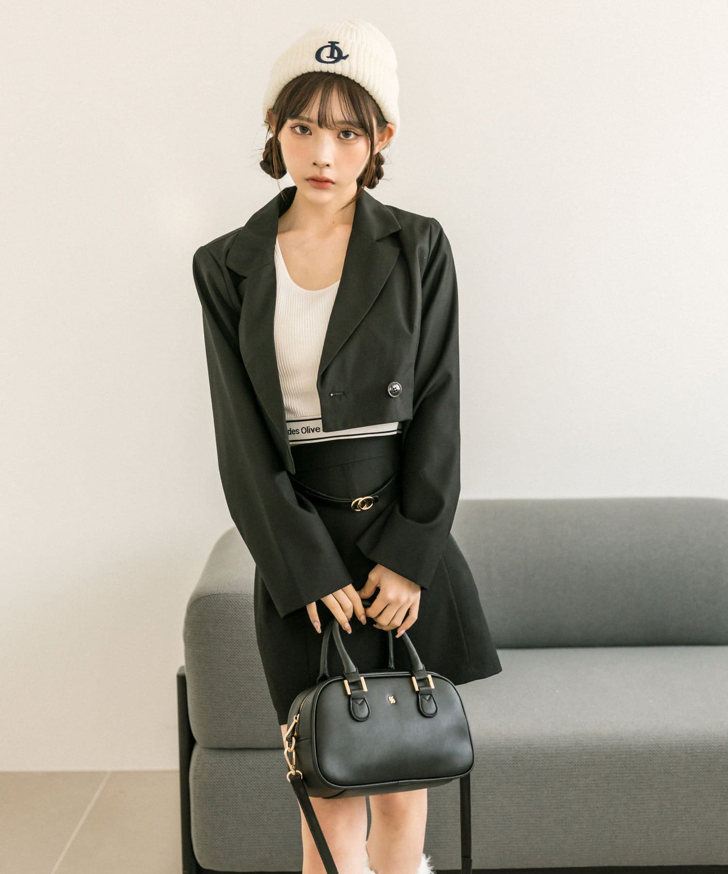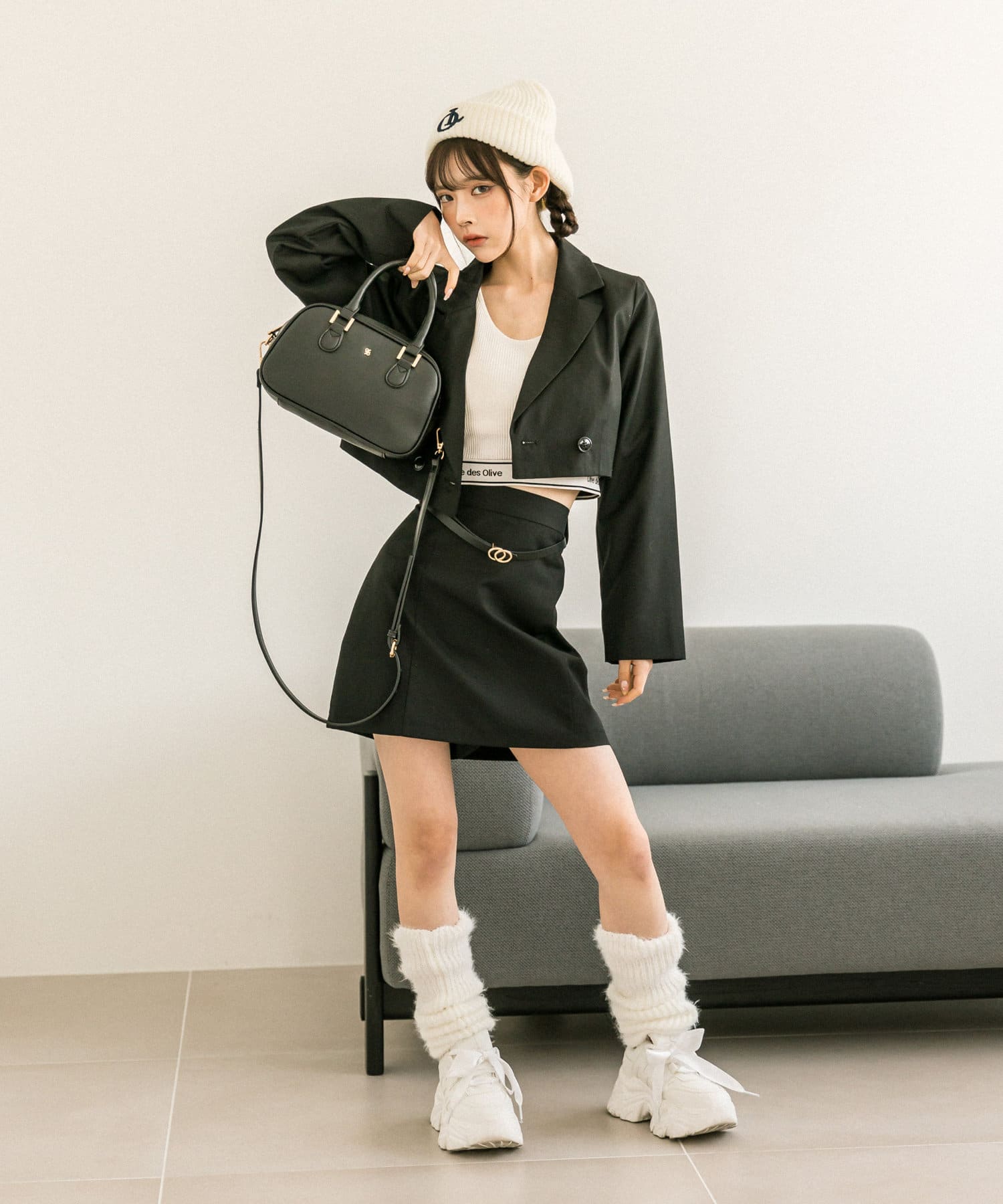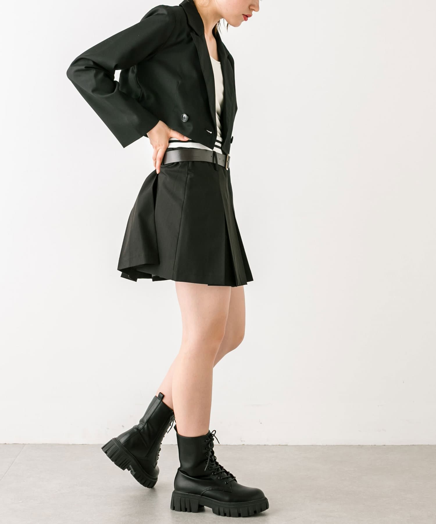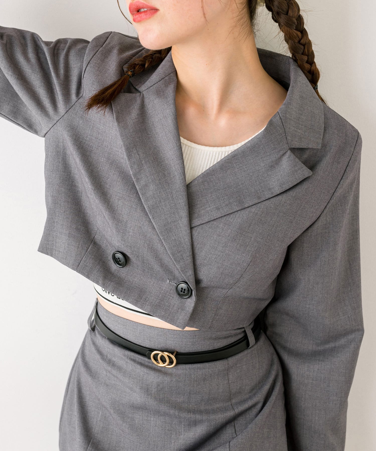 ・ベルト付きタイトミニスカート(品番: 1032010050)と着用していただくと、トレンドのセットアップコーデに。