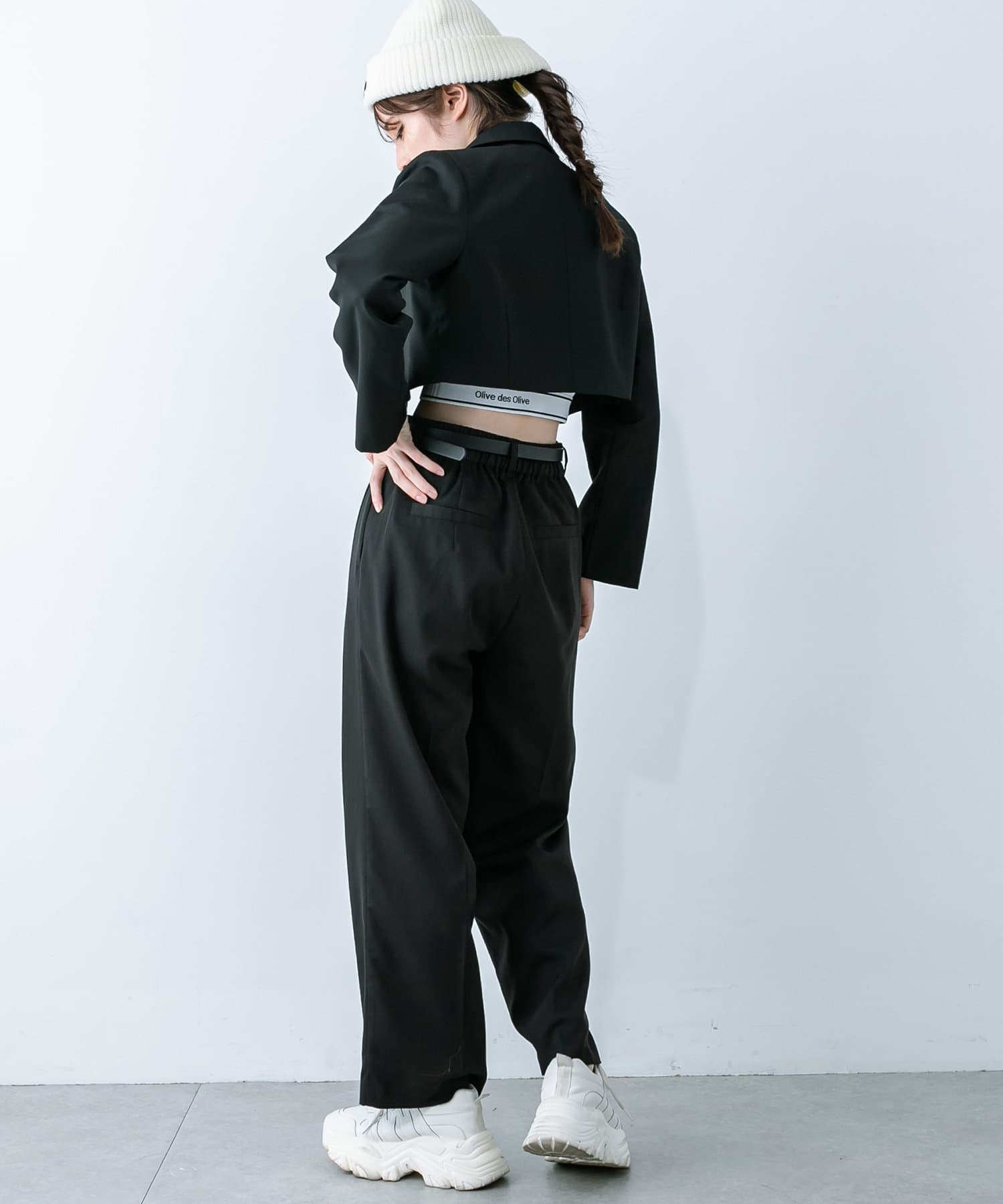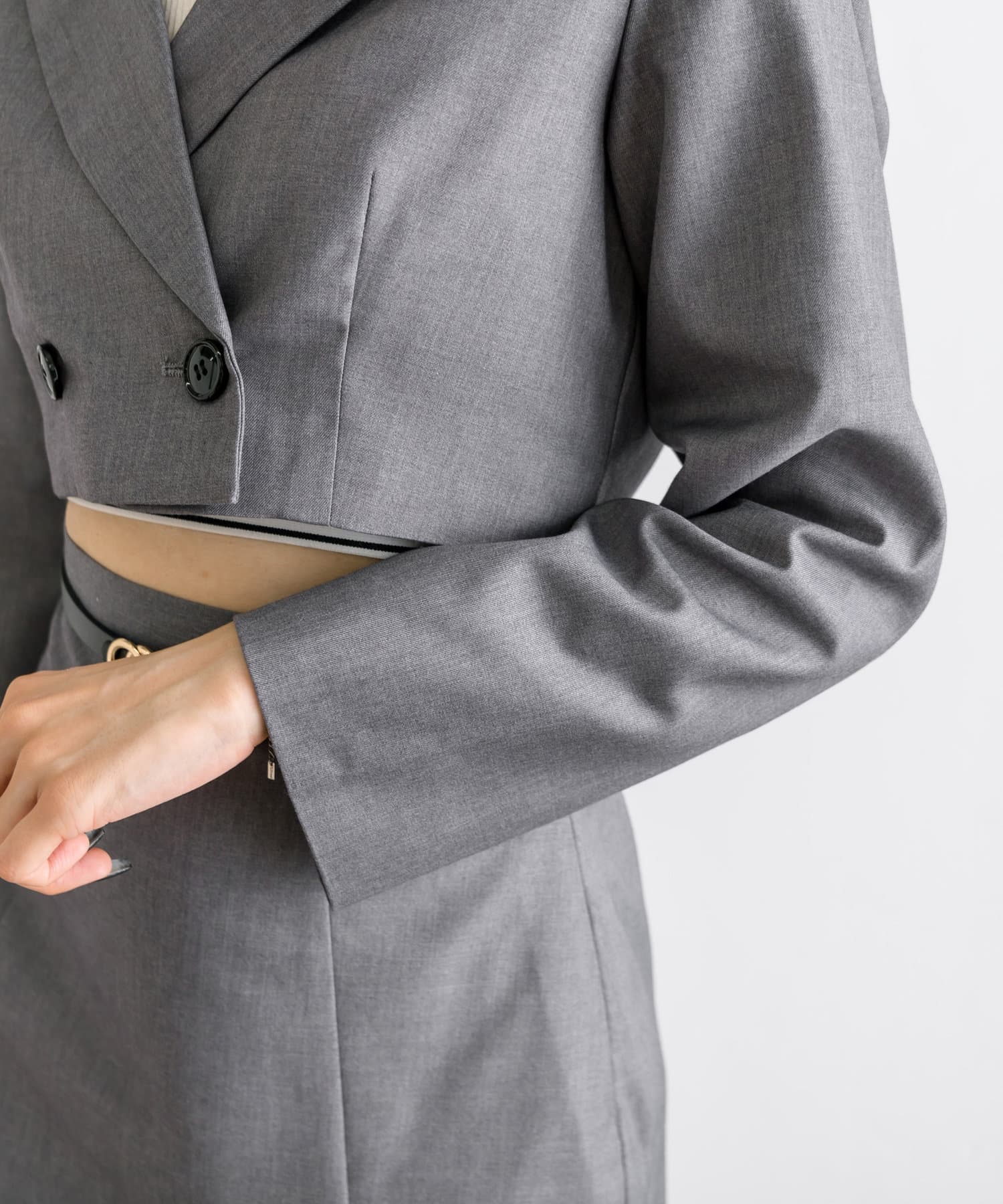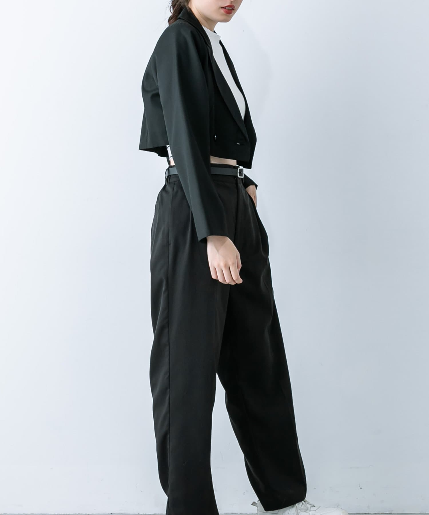 ・抜け感のあるクロップド丈のテーラードジャケット。