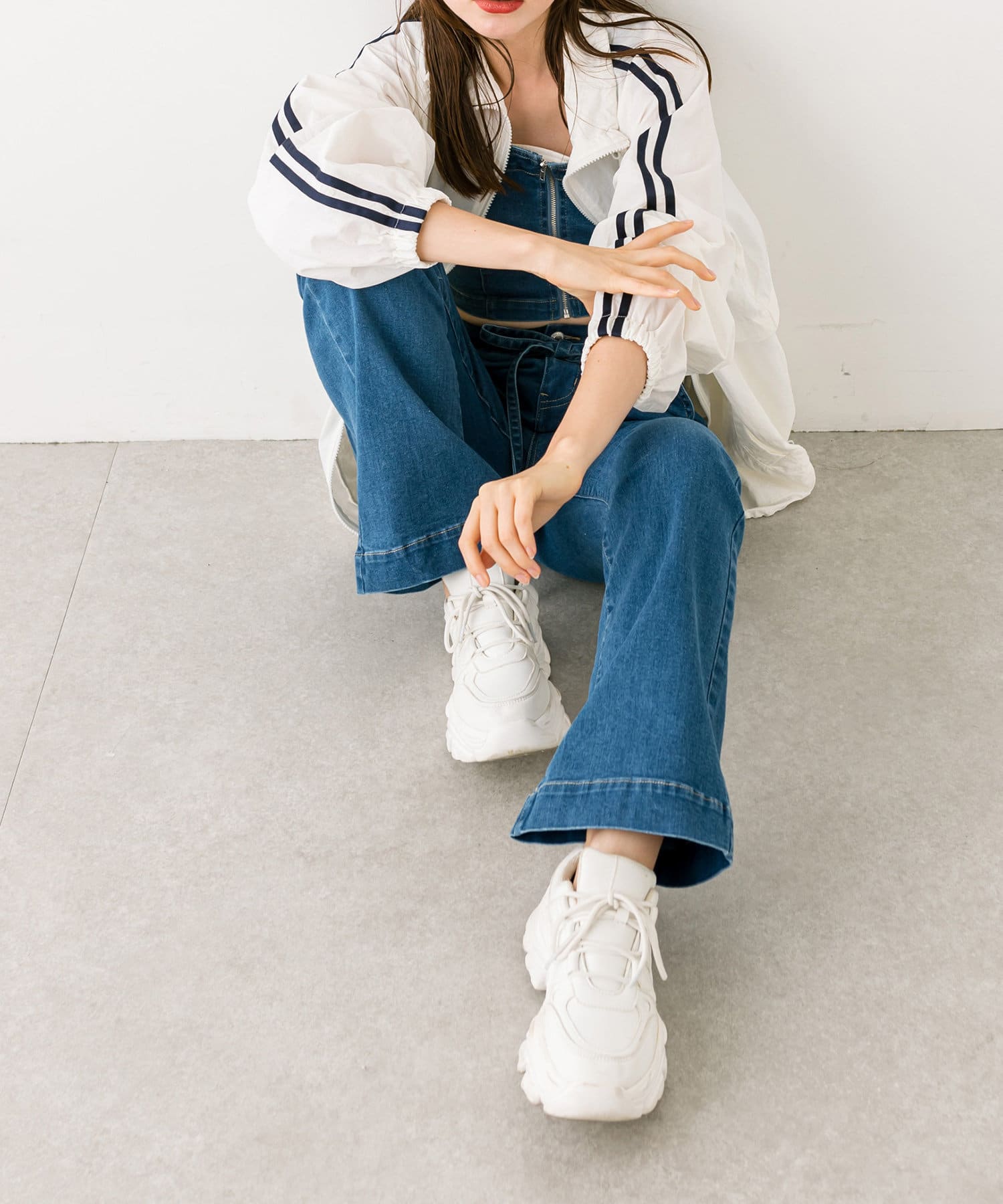・足元は厚底スニーカーでスポーティなスタイリングが◎