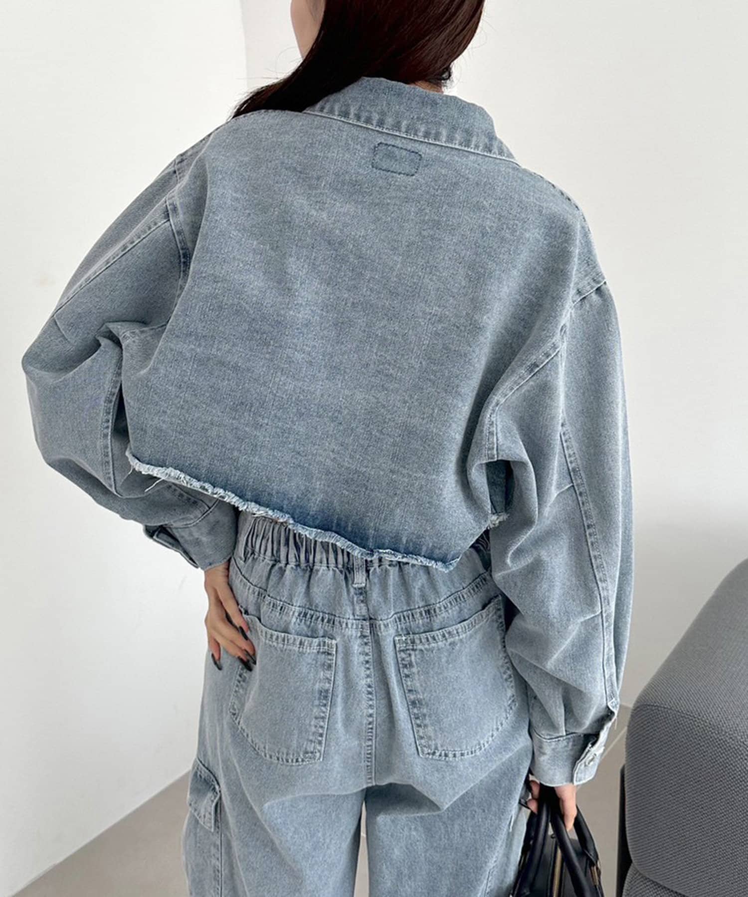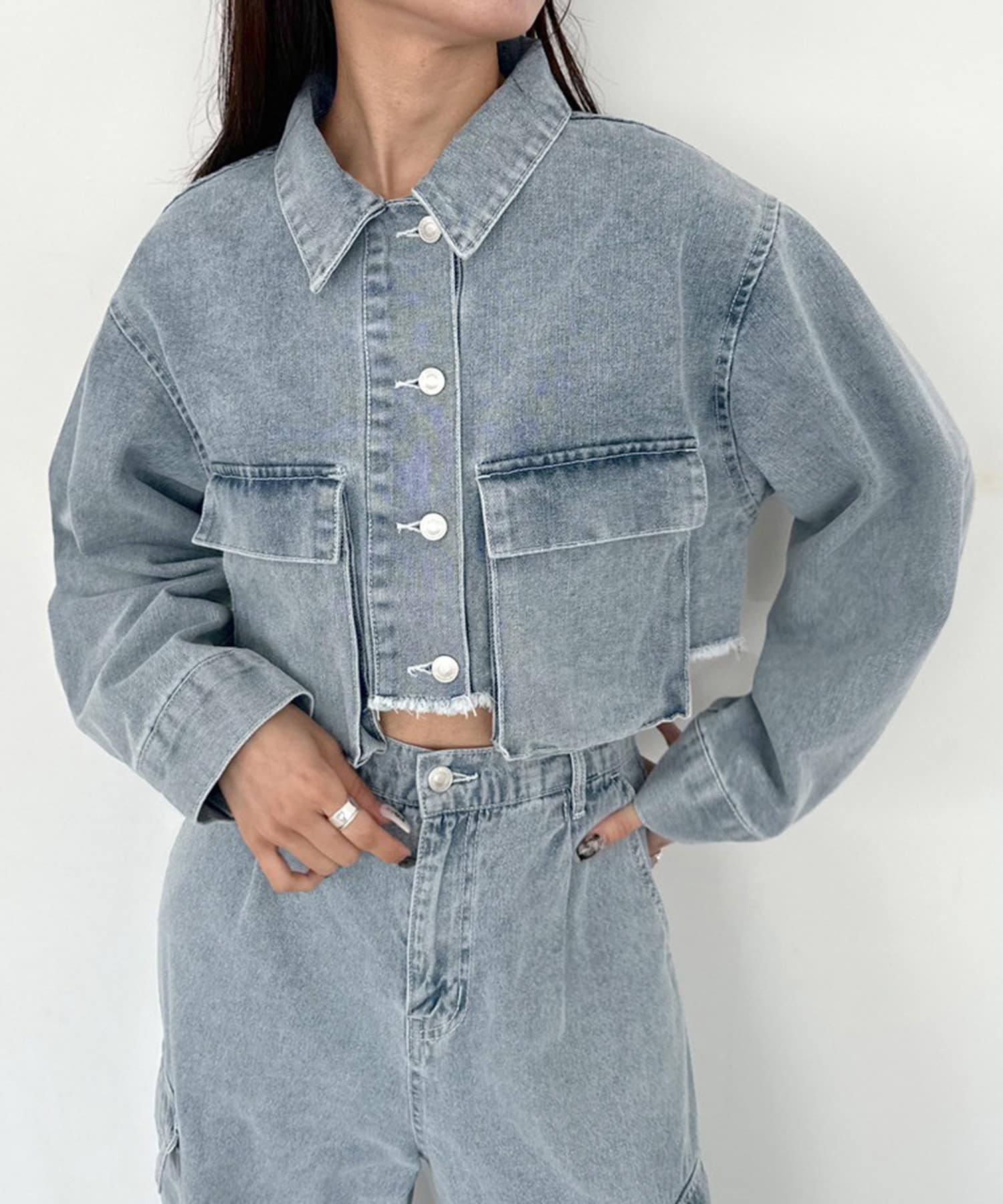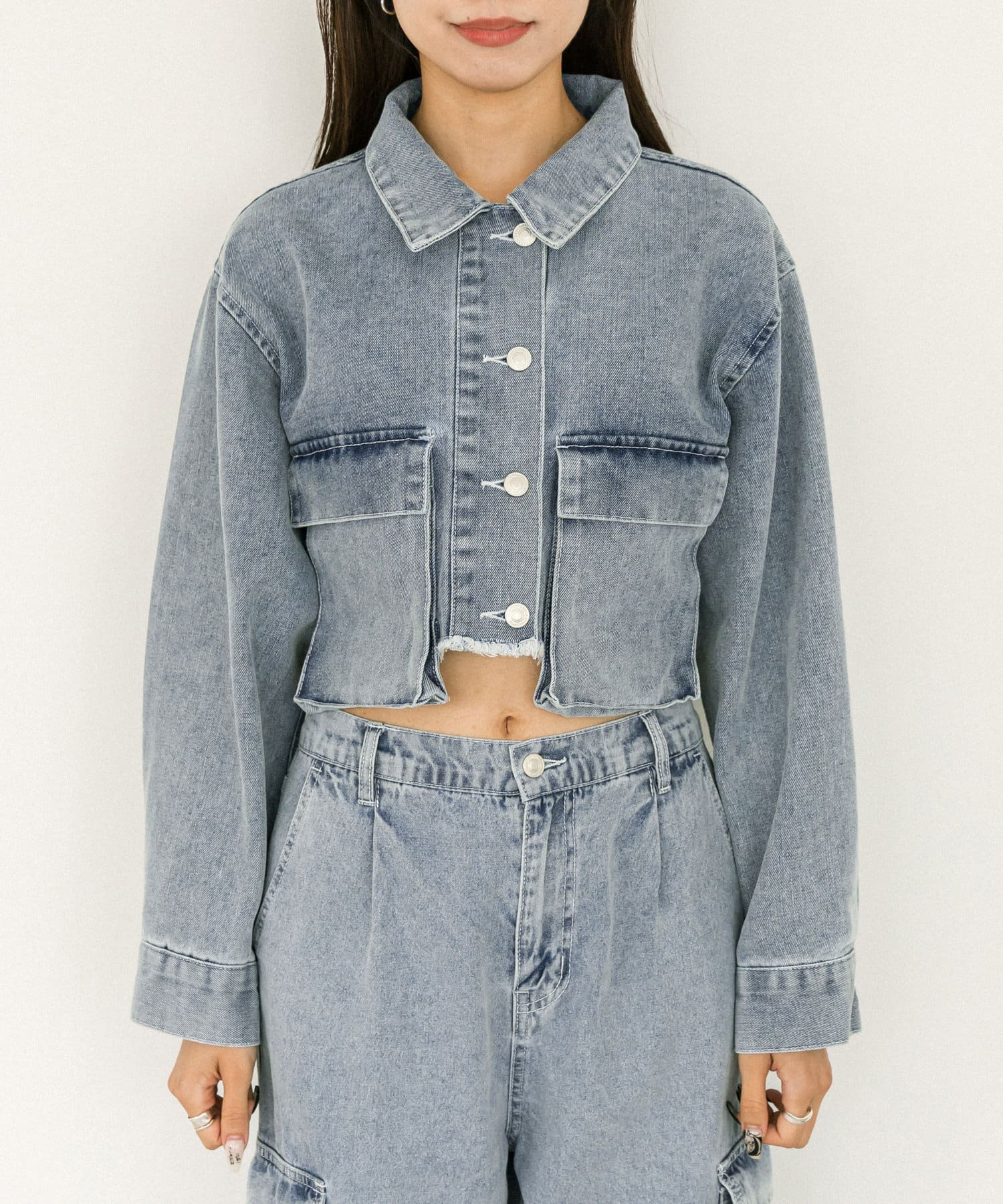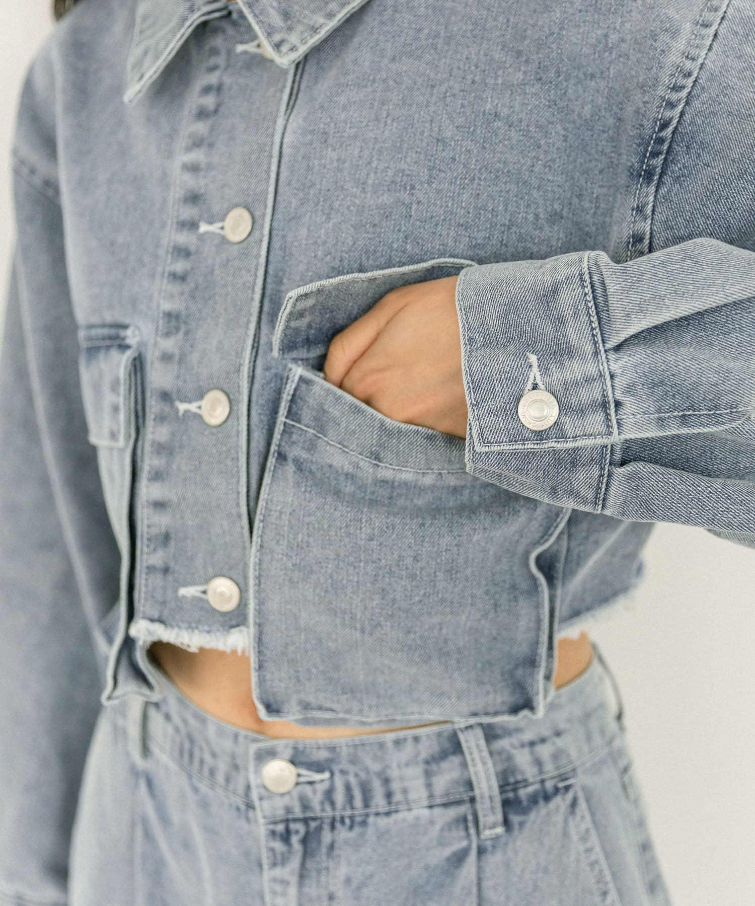 ・程よくゆとりのある身幅とクロップド丈がトレンドライクなデニムジャケット。