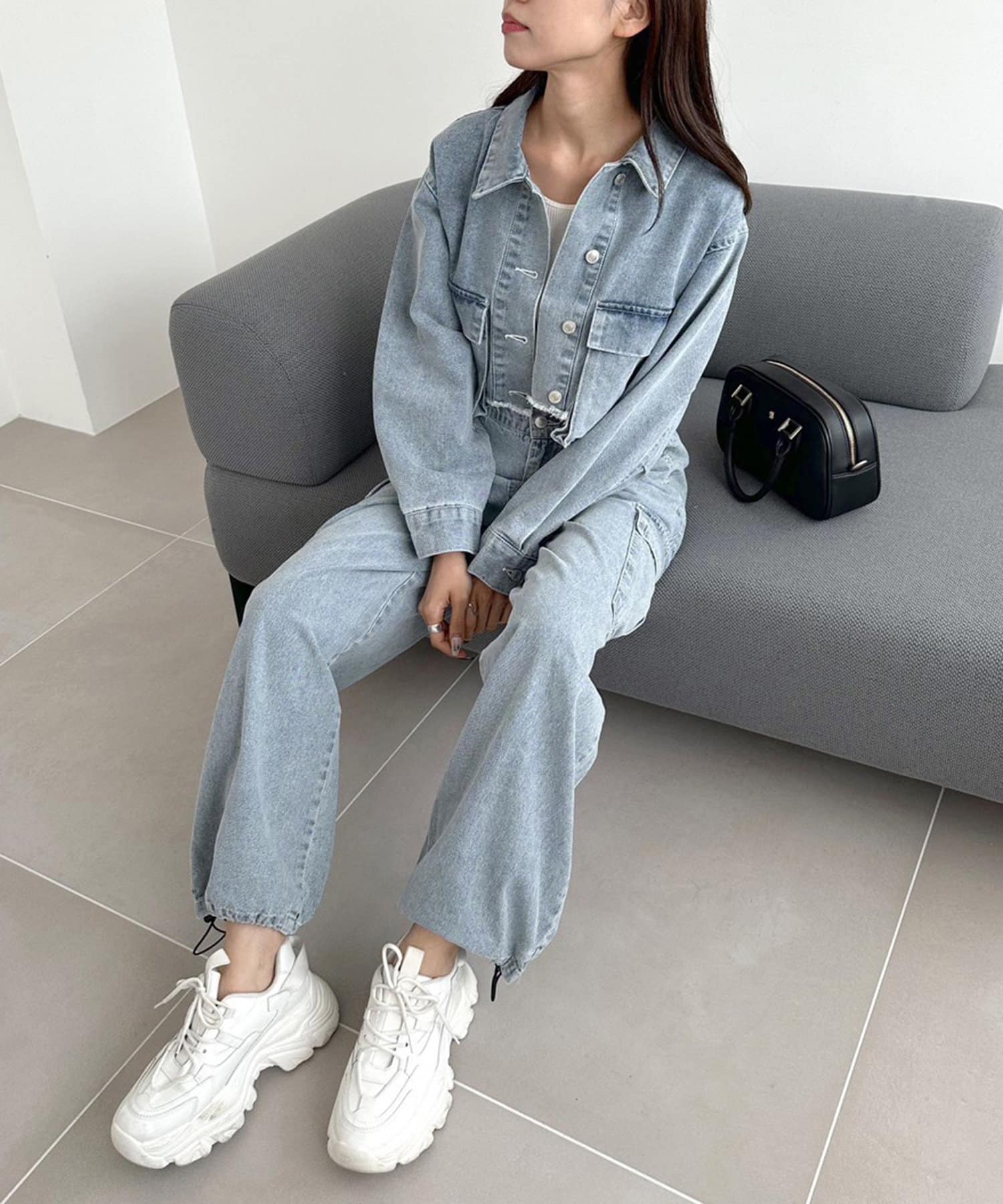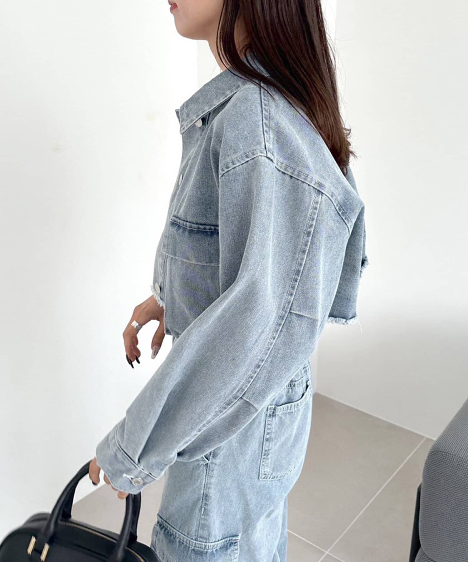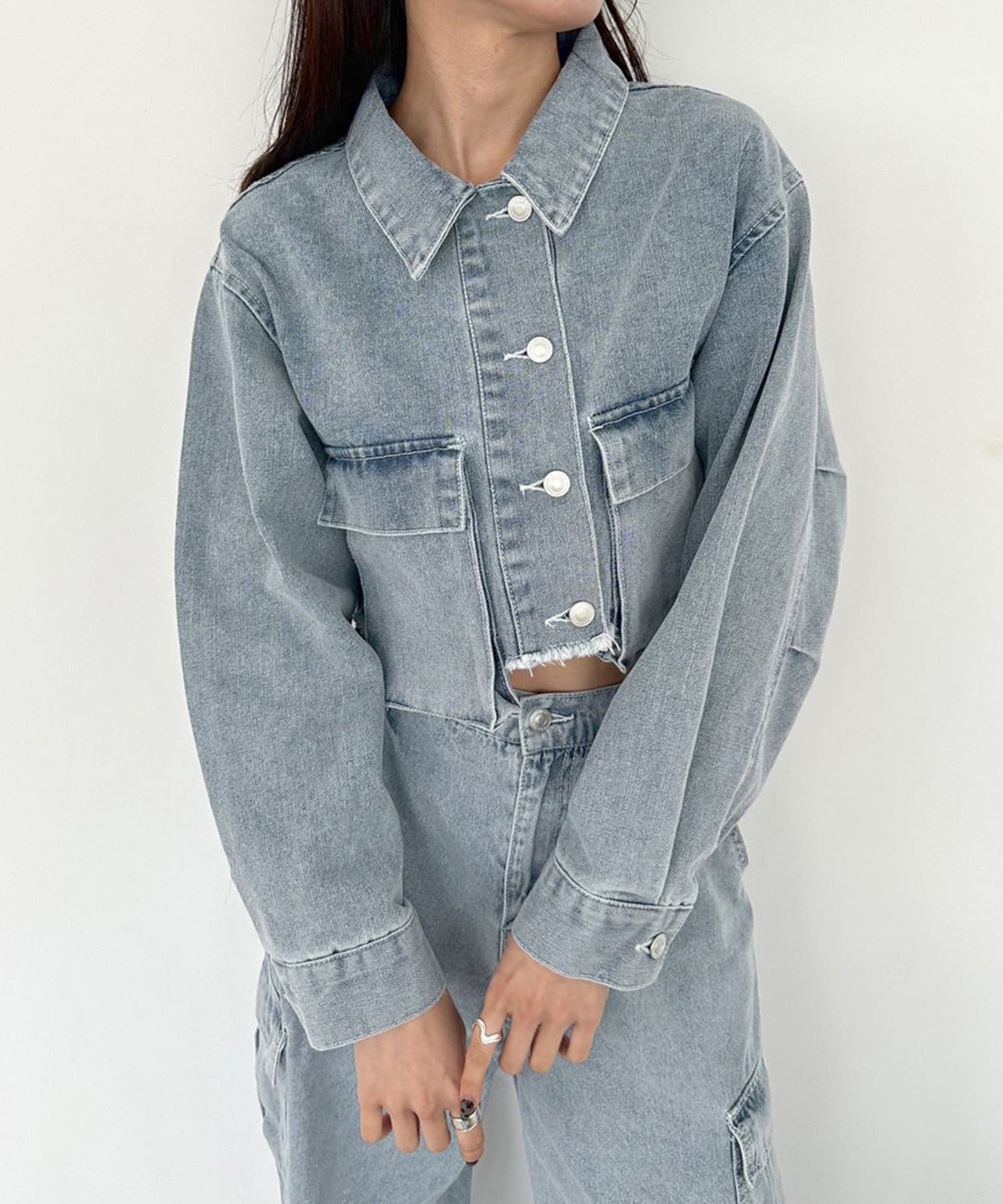 ・程よくゆとりのある身幅とクロップド丈がトレンドライクなデニムジャケット。