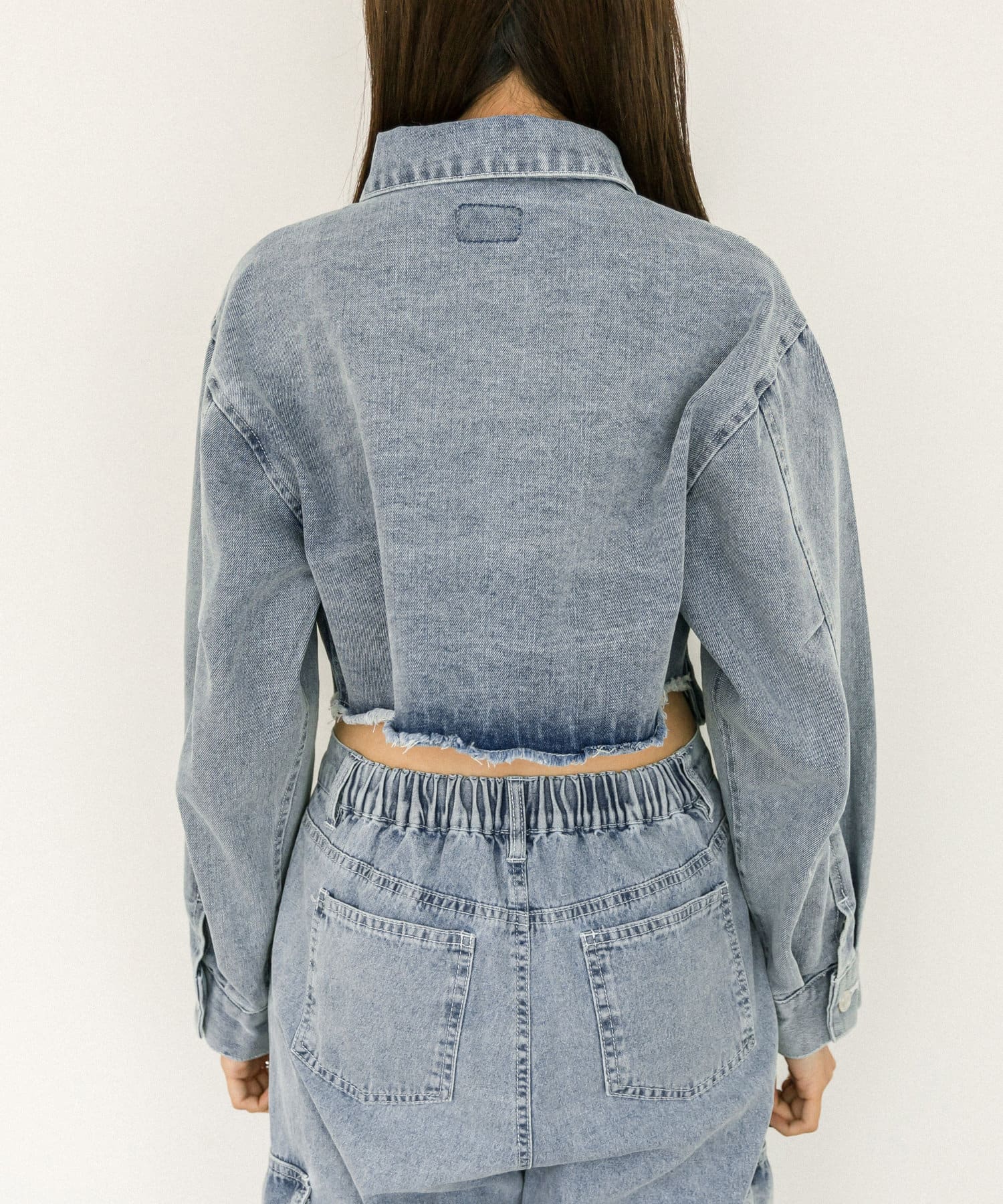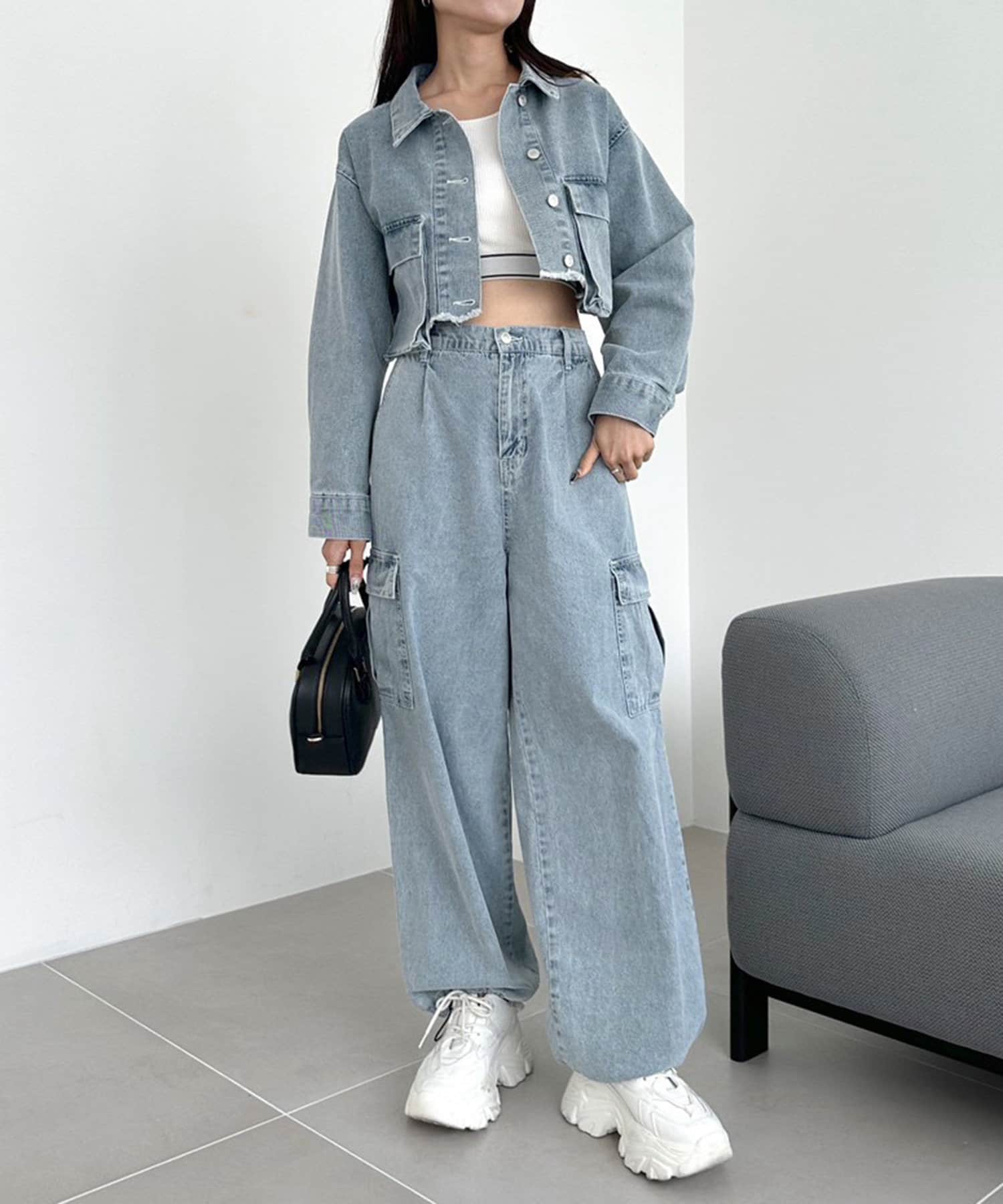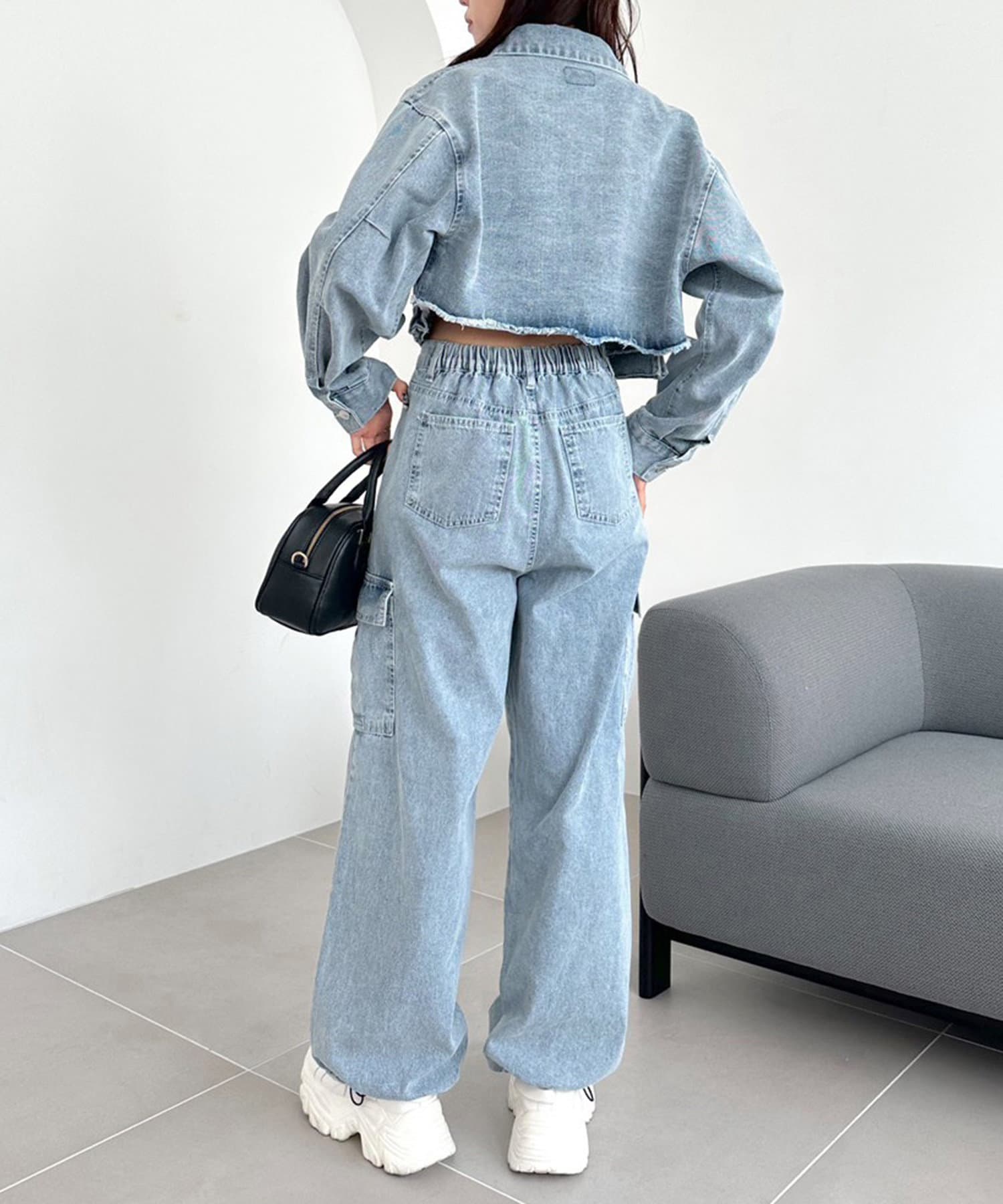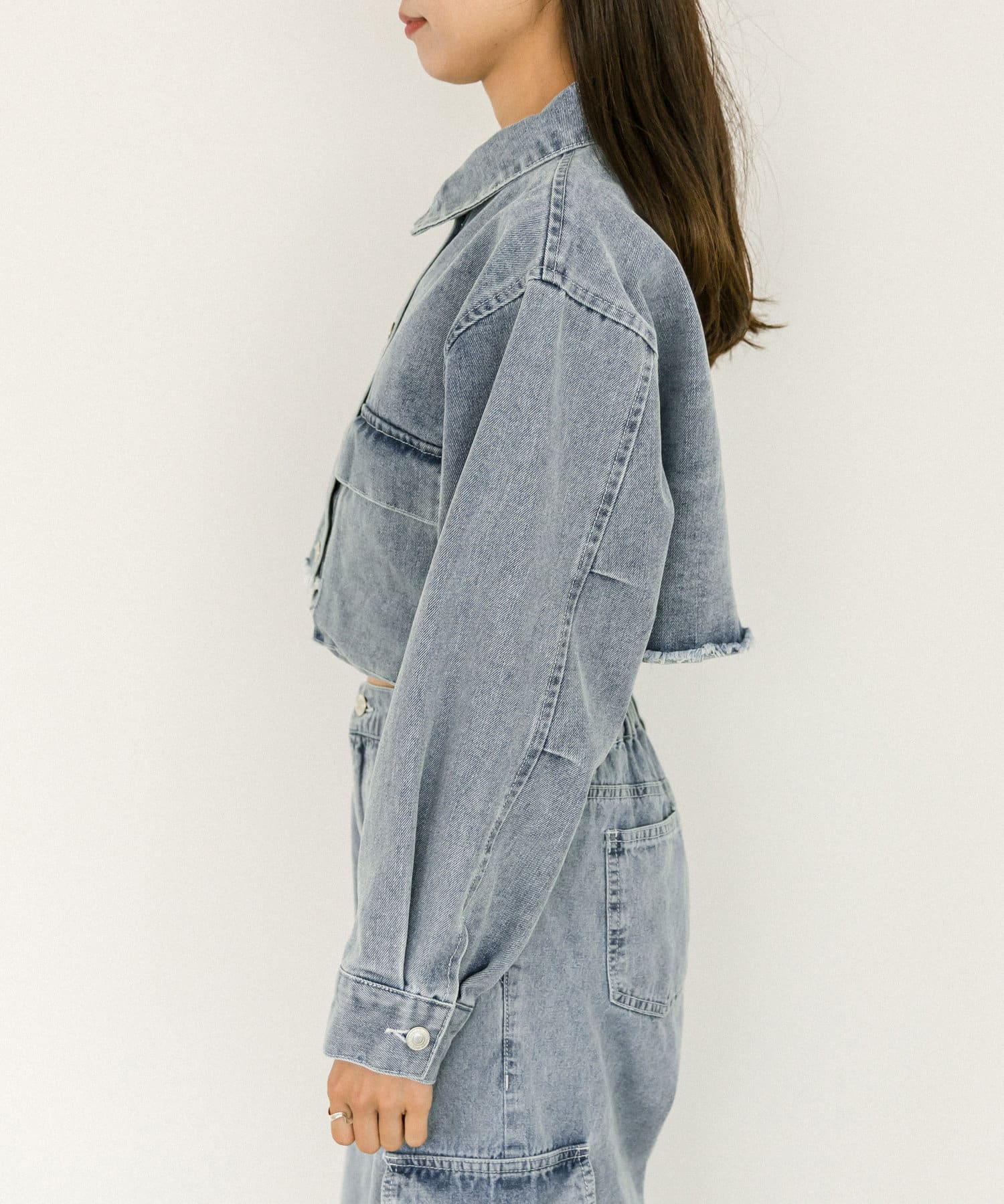 ・程よくゆとりのある身幅とクロップド丈がトレンドライクなデニムジャケット。