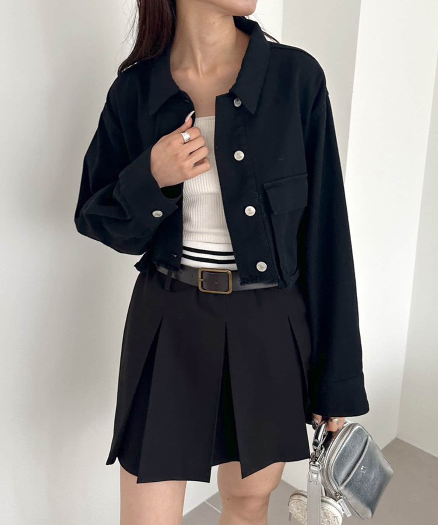 ・パンツでもミニでも合わせやす丈感◎デニムに合わせてセットアップ風に着てもおすすめ。