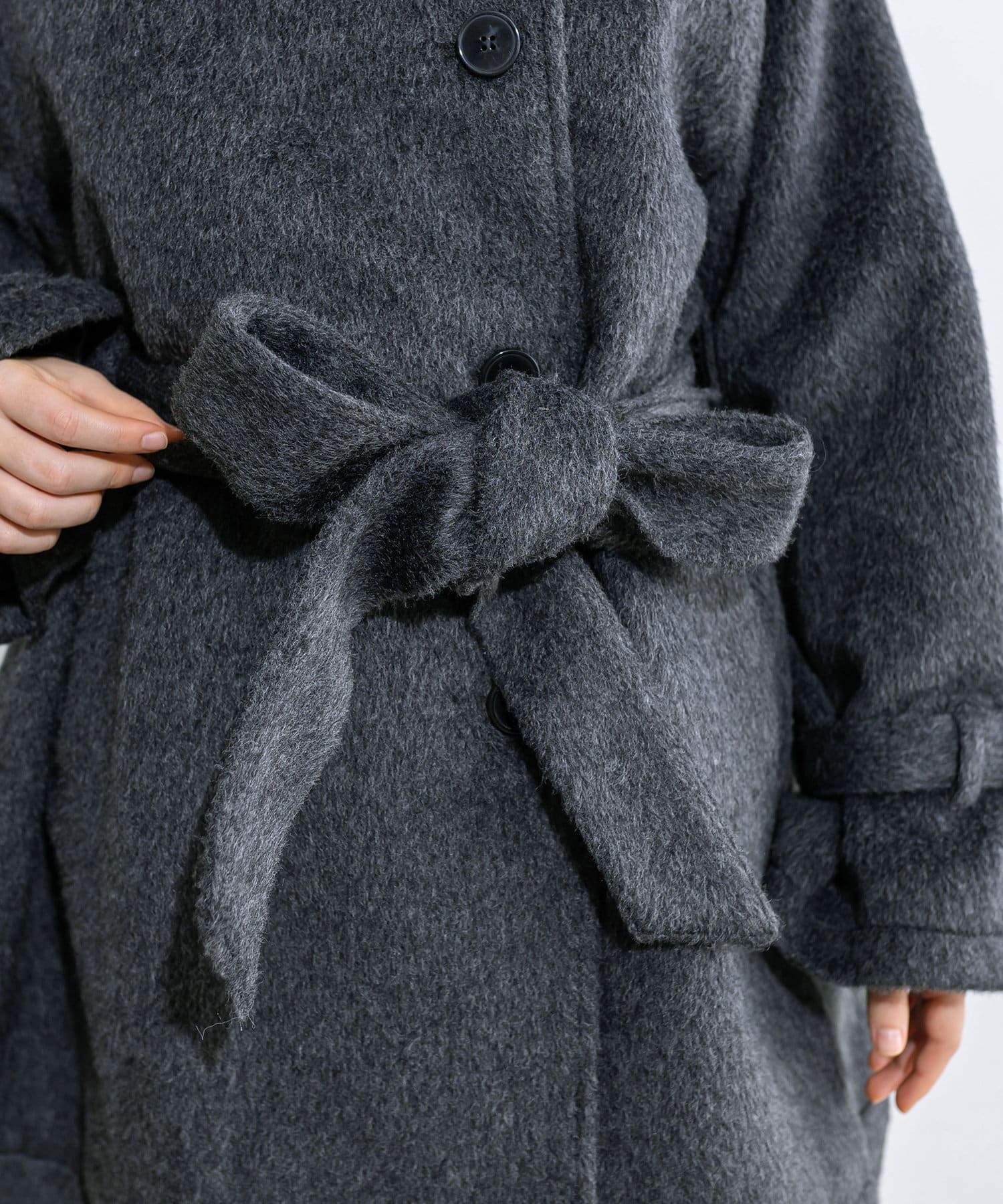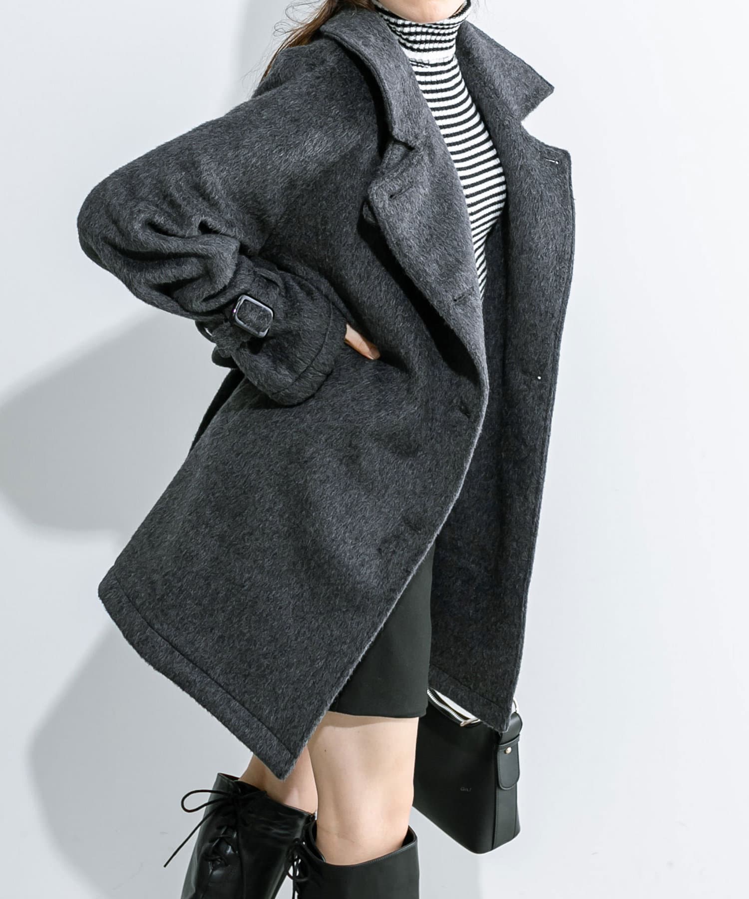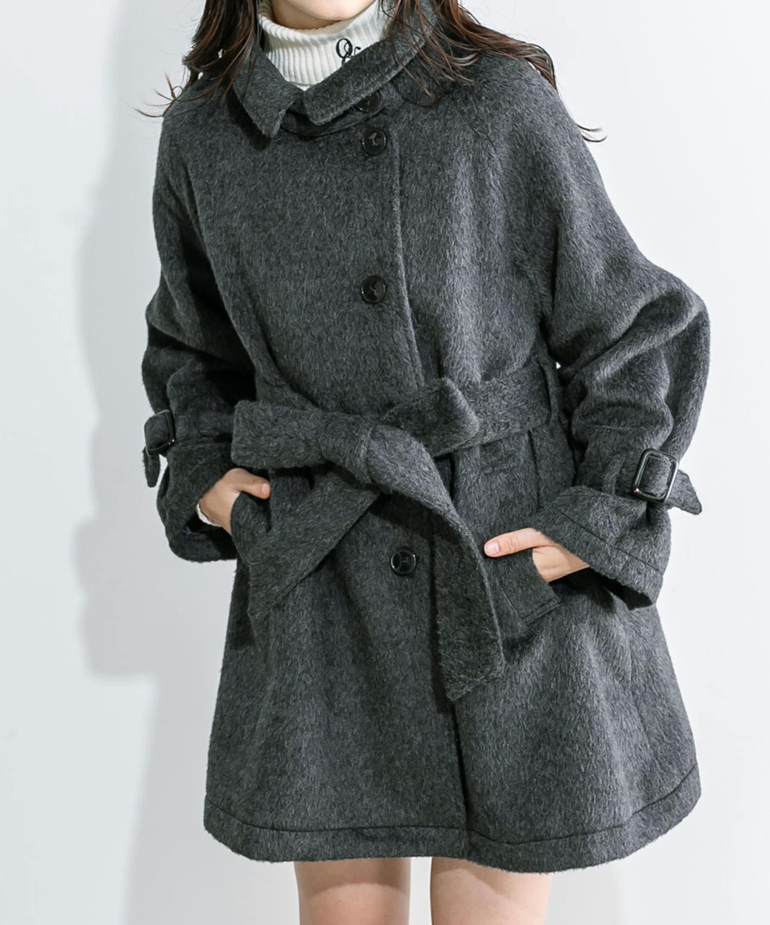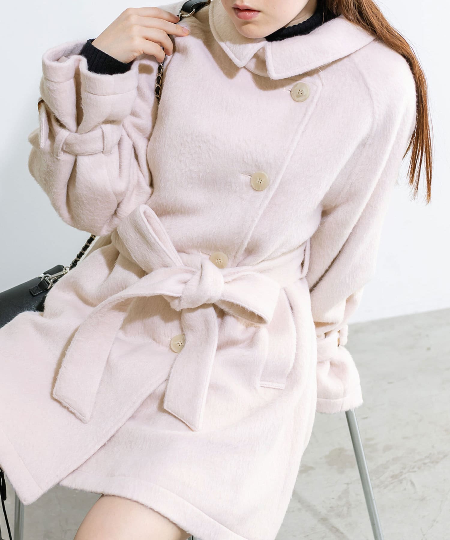 ・生地は今年トレンドの少し毛足のあるシャギー生地で女性らしさアップ。