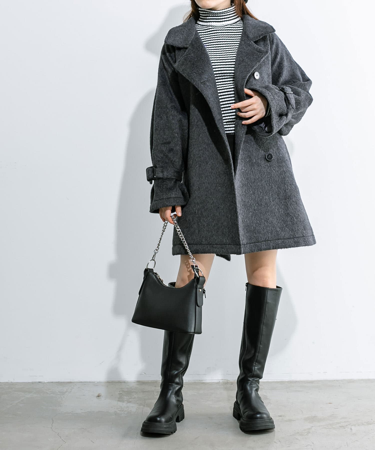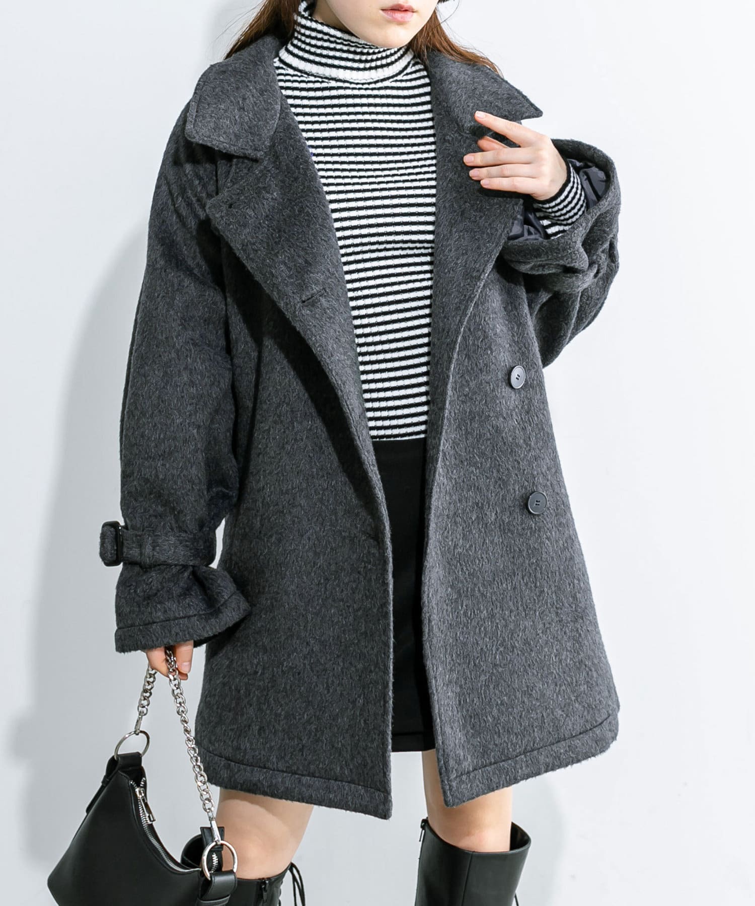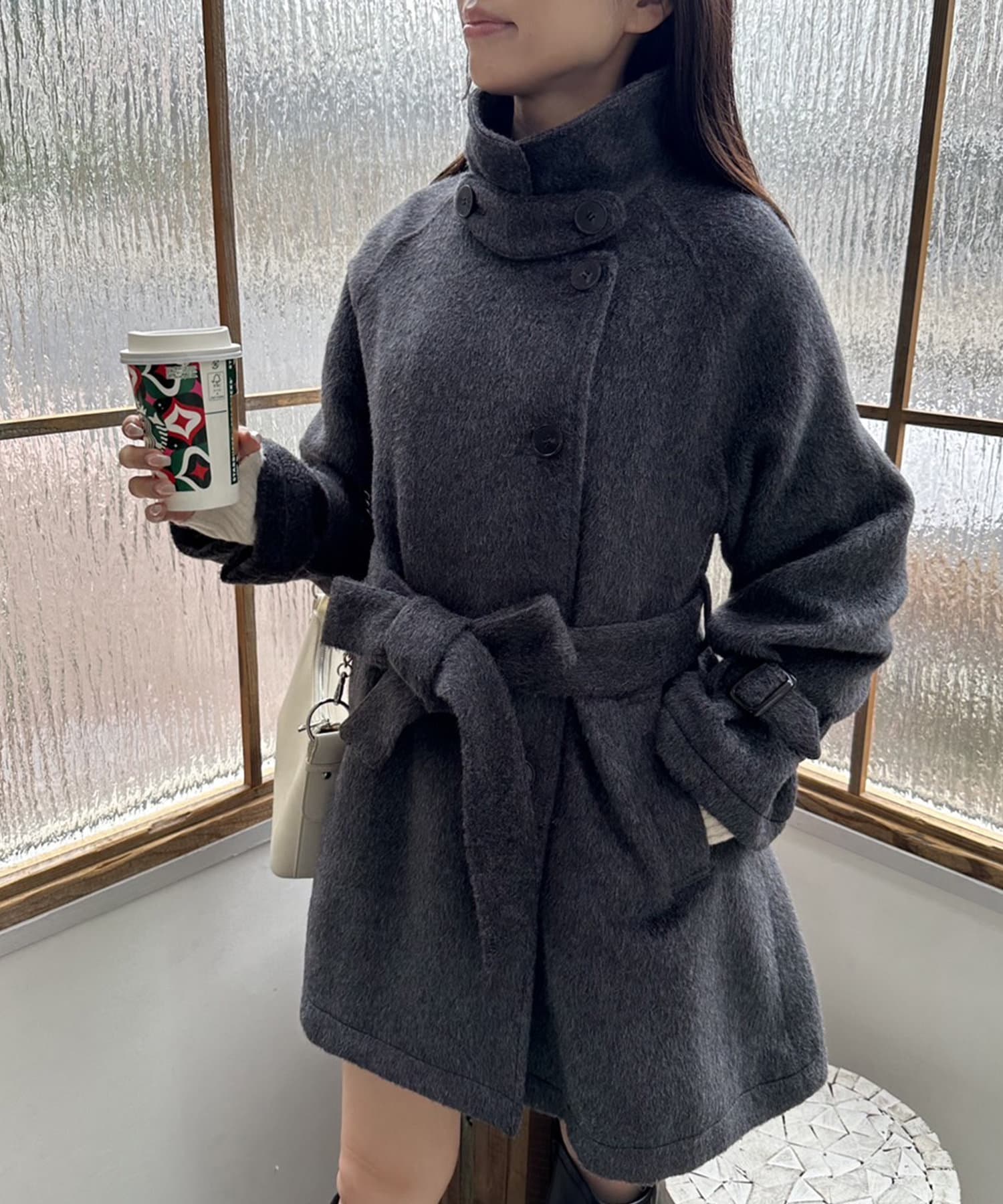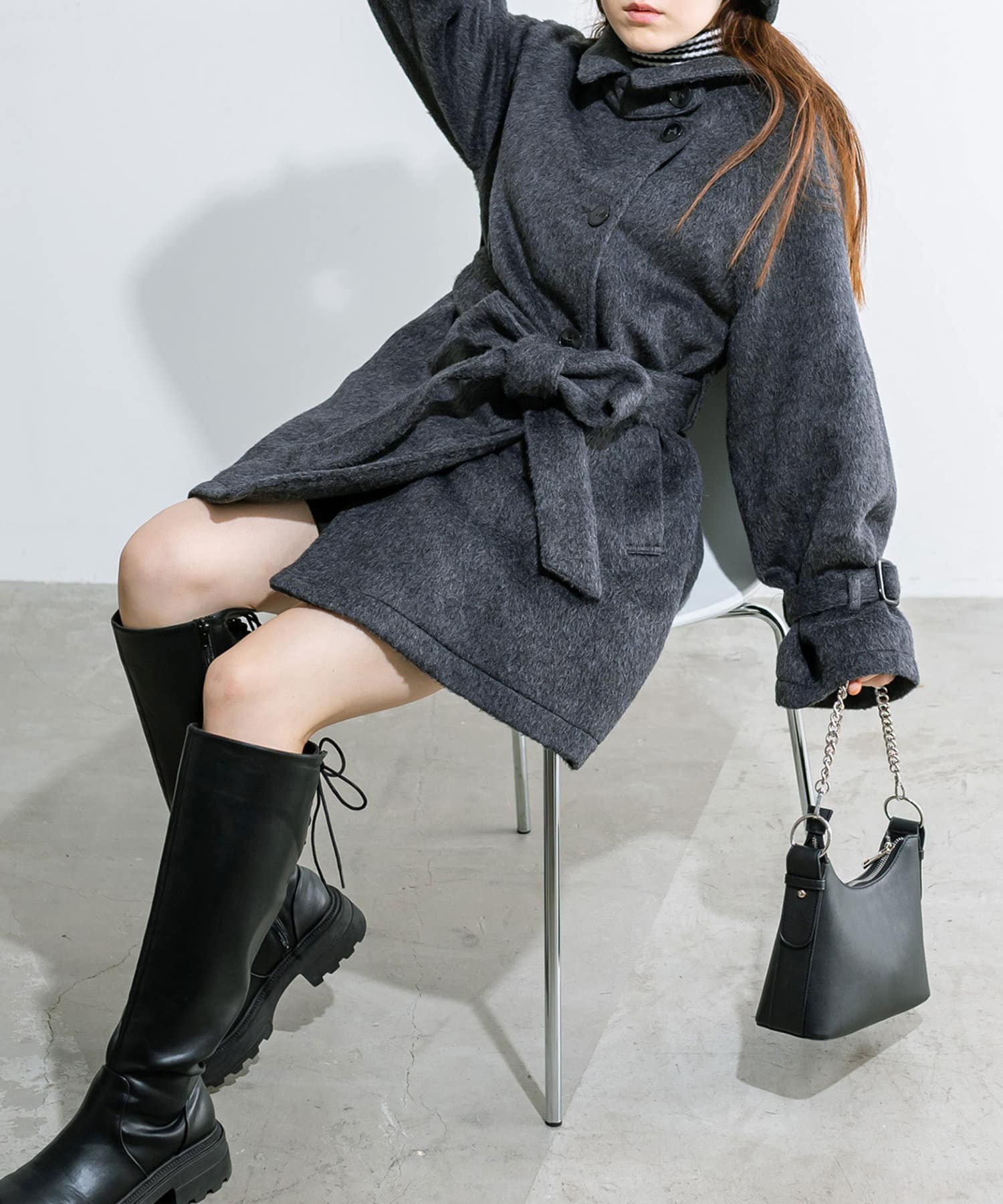 ・生地は今年トレンドの少し毛足のあるシャギー生地で女性らしさアップ。