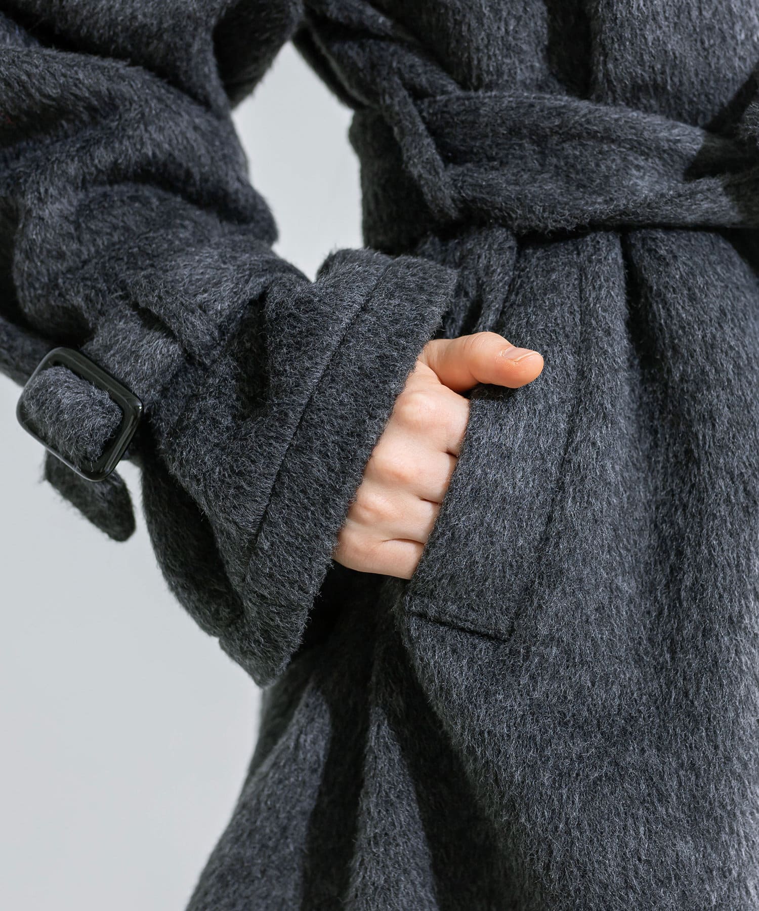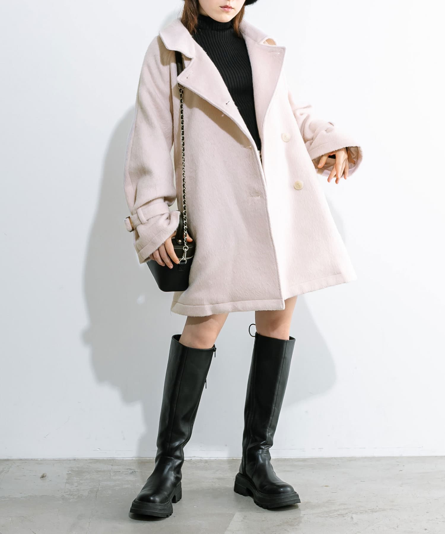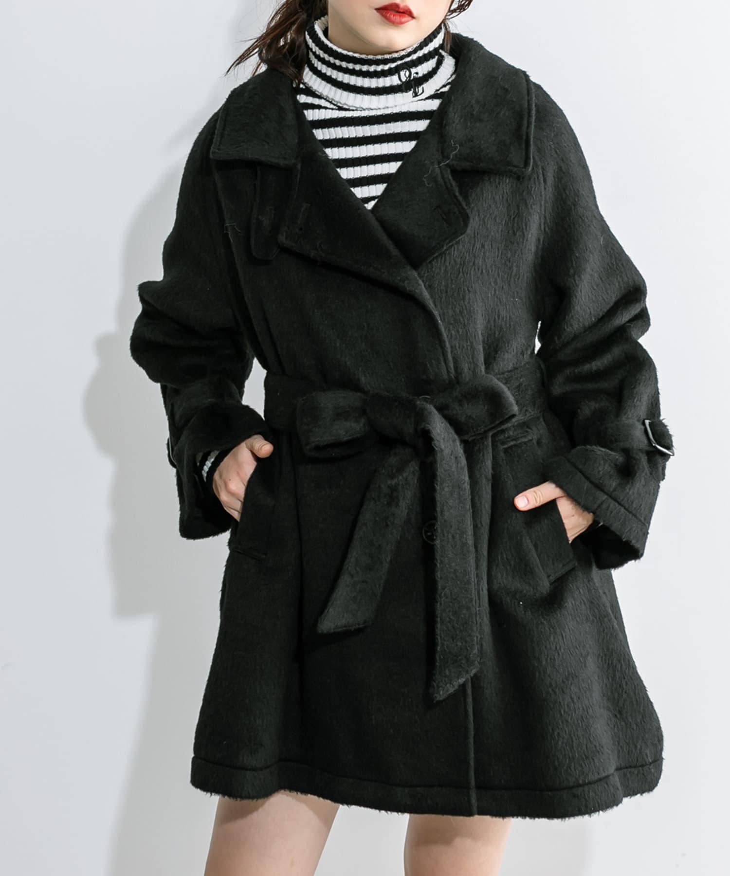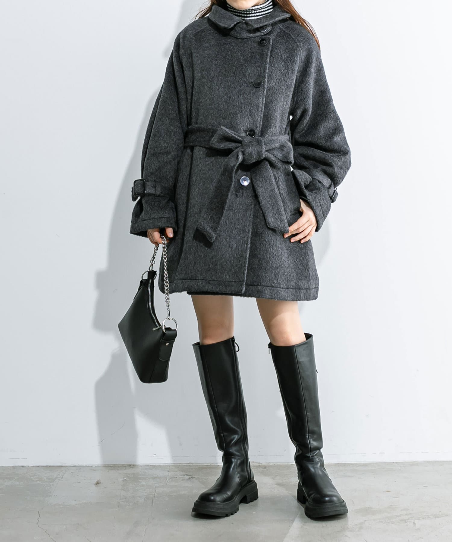 ・生地は今年トレンドの少し毛足のあるシャギー生地で女性らしさアップ。