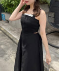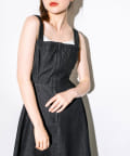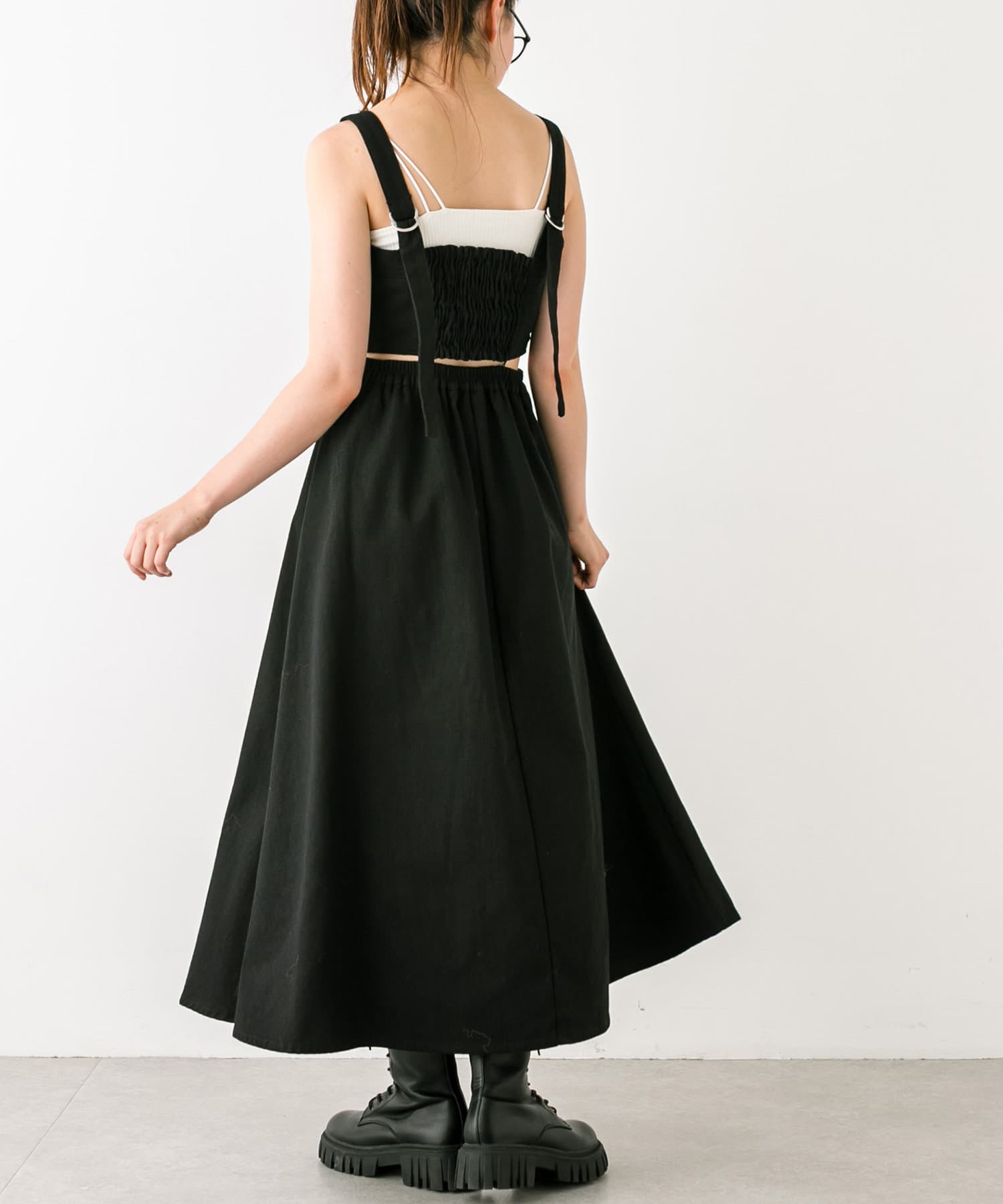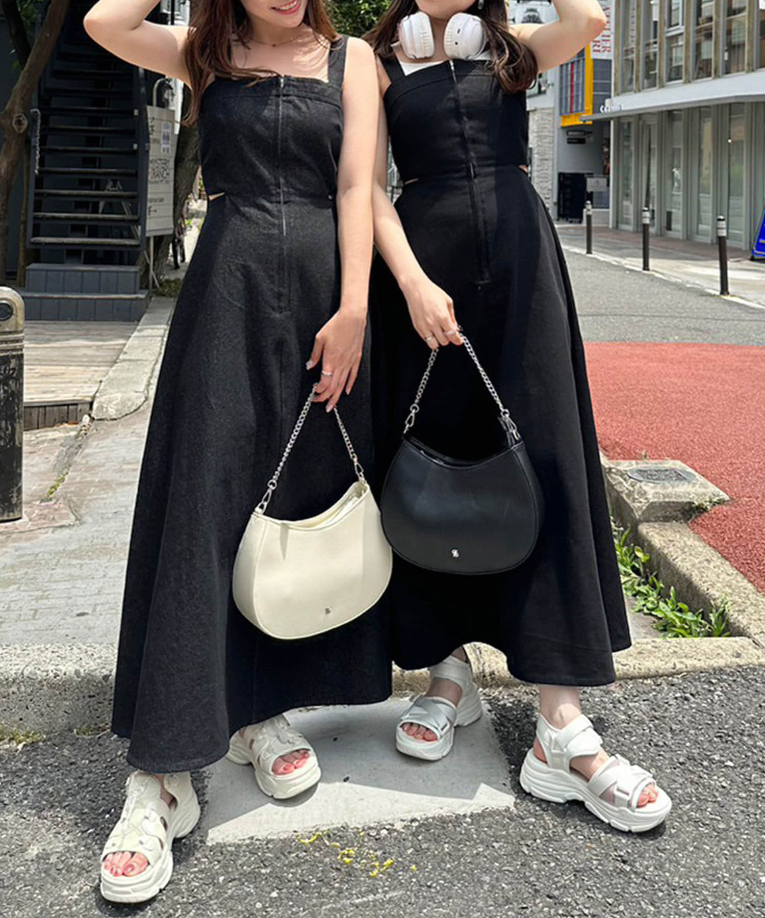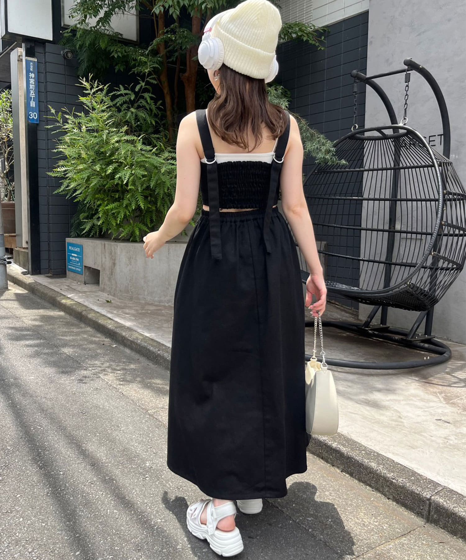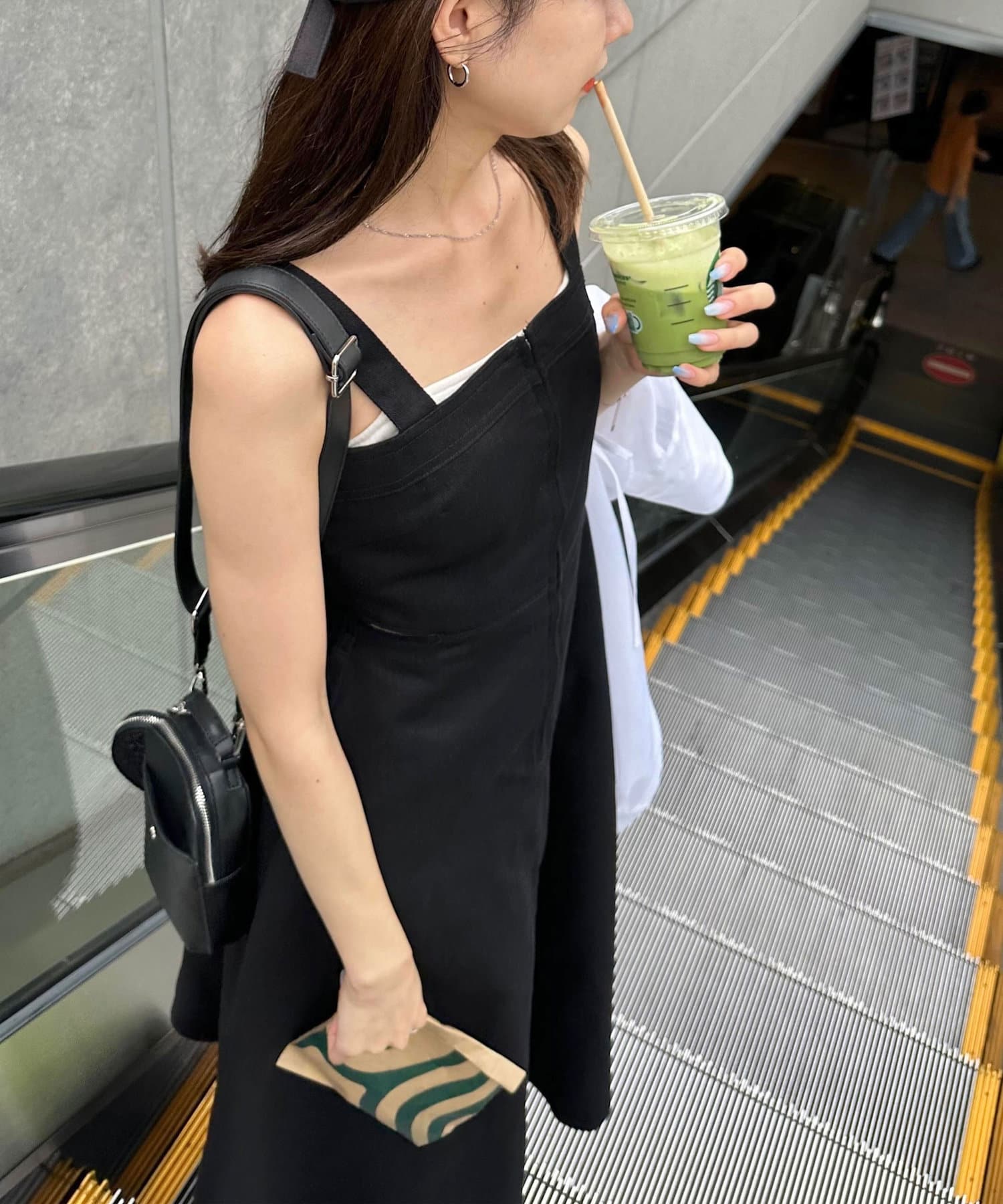 ・中にカップ付きインナーやベアトップを着れば1枚で主役に。