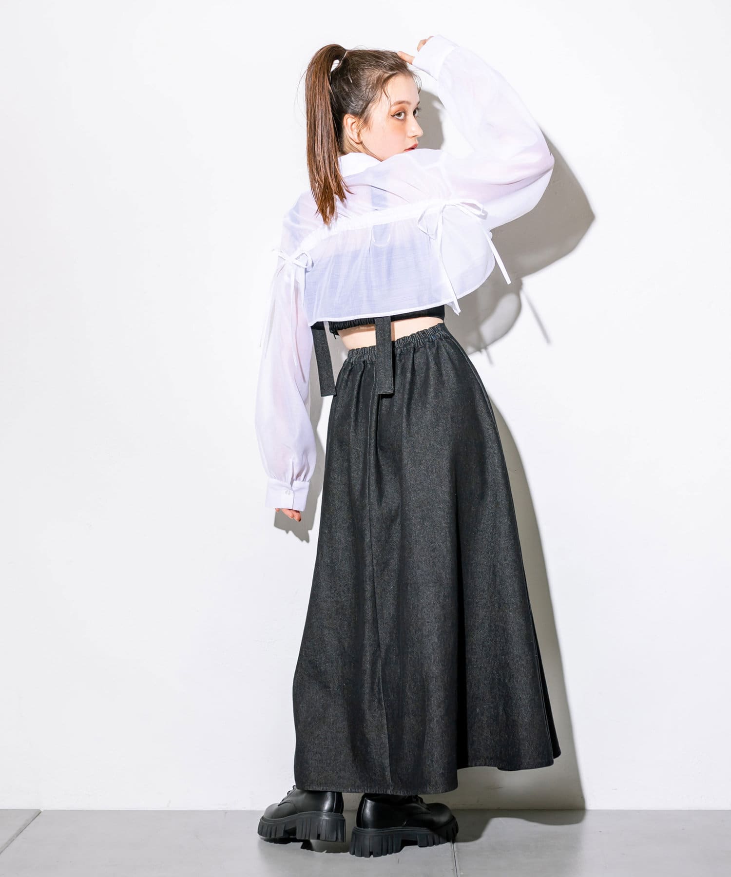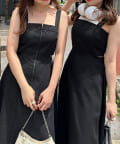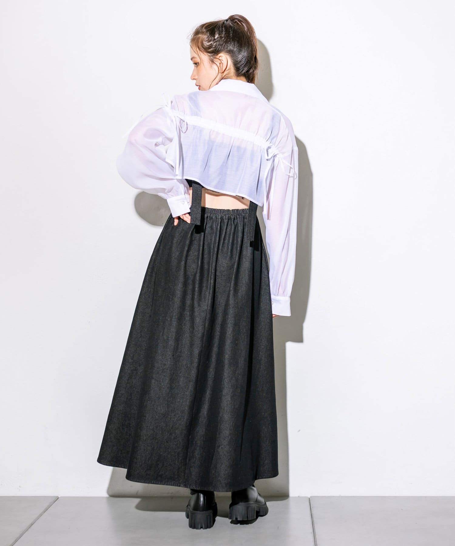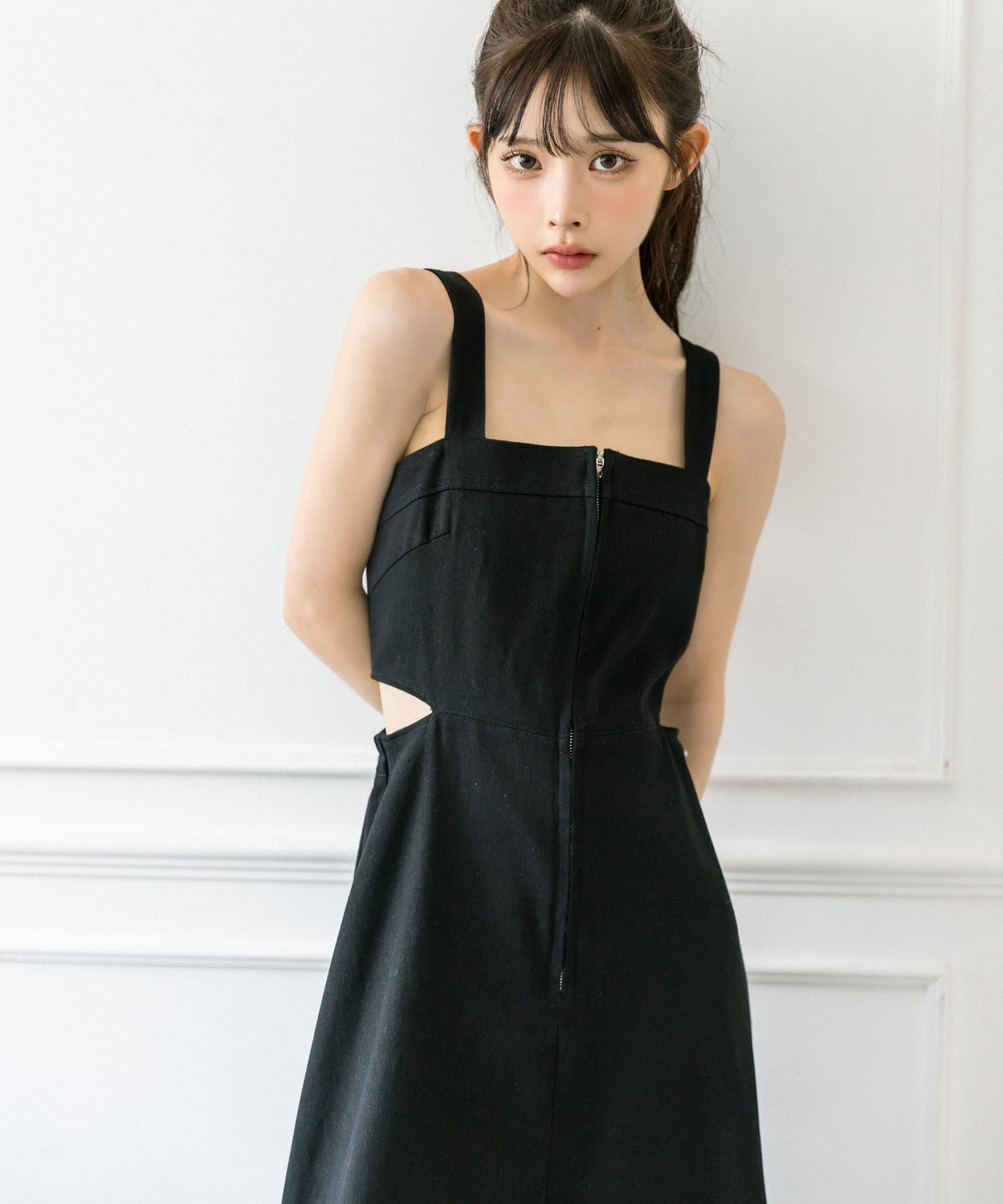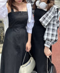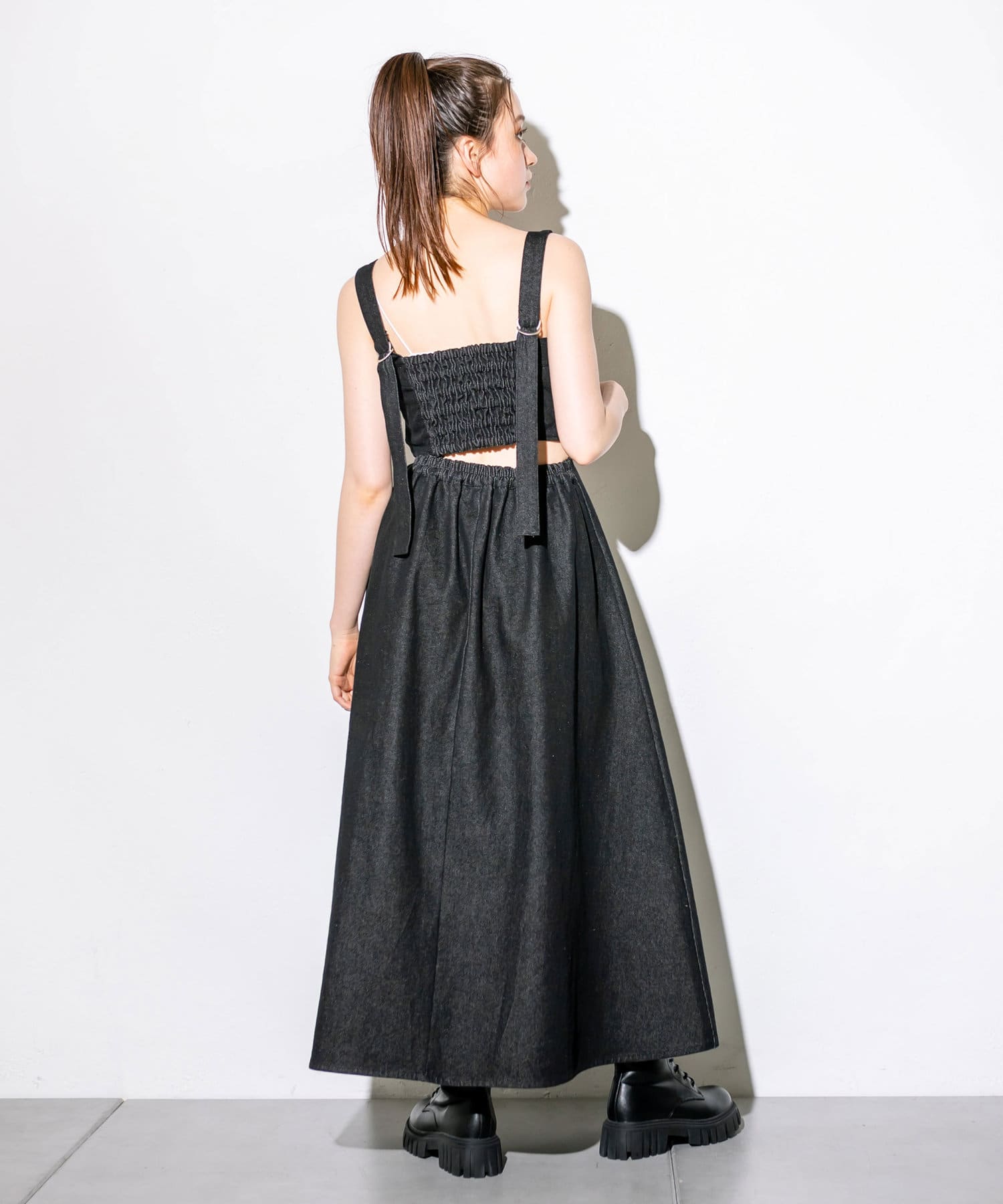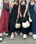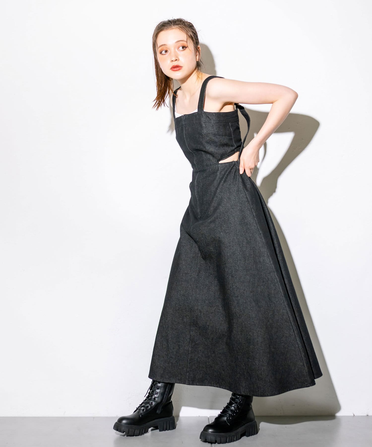 ・中にカップ付きインナーやベアトップを着れば1枚で主役に。